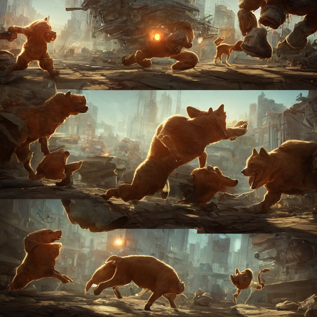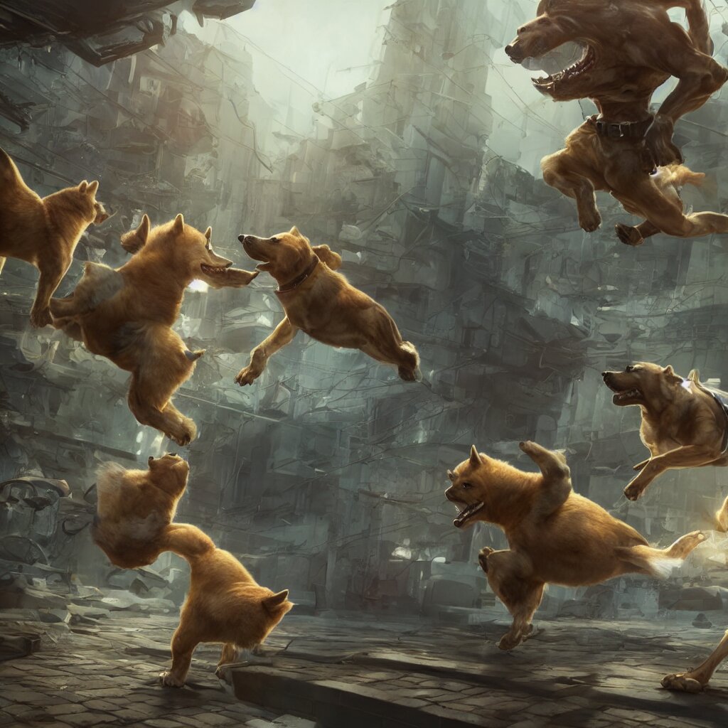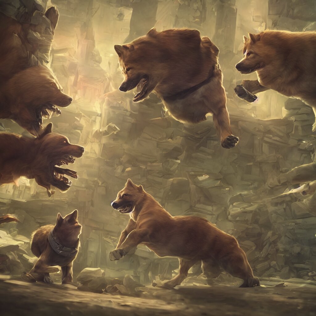 3 d realistic render of swole doge vs cheems meme, digital art, hyper detailed, cinematic lighting, studio quality, unreal engine 5 renderered, octane rendered, ultrarealistic, concept art, artstation, ihigh definition, 4 k, greg rutkowski