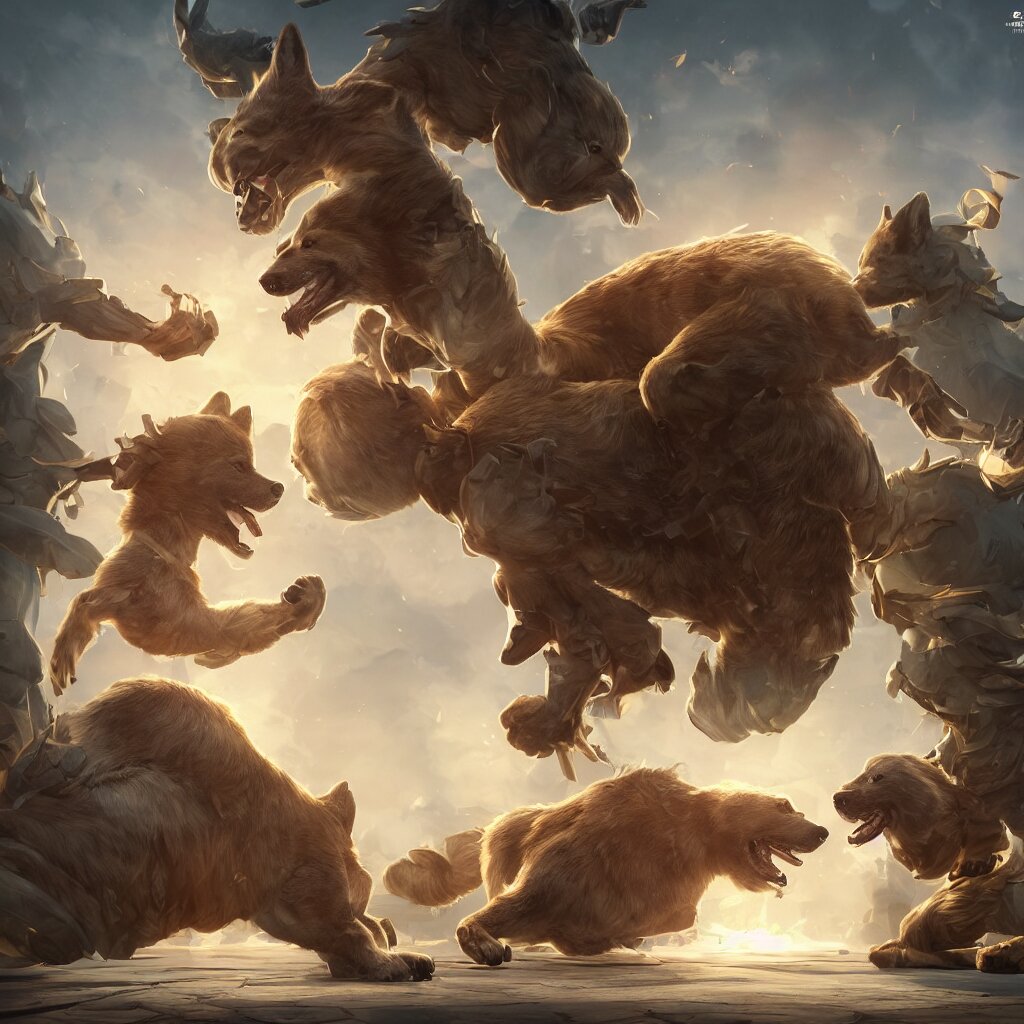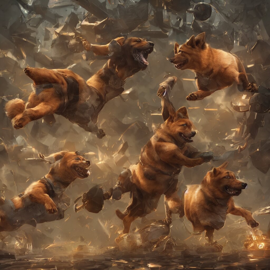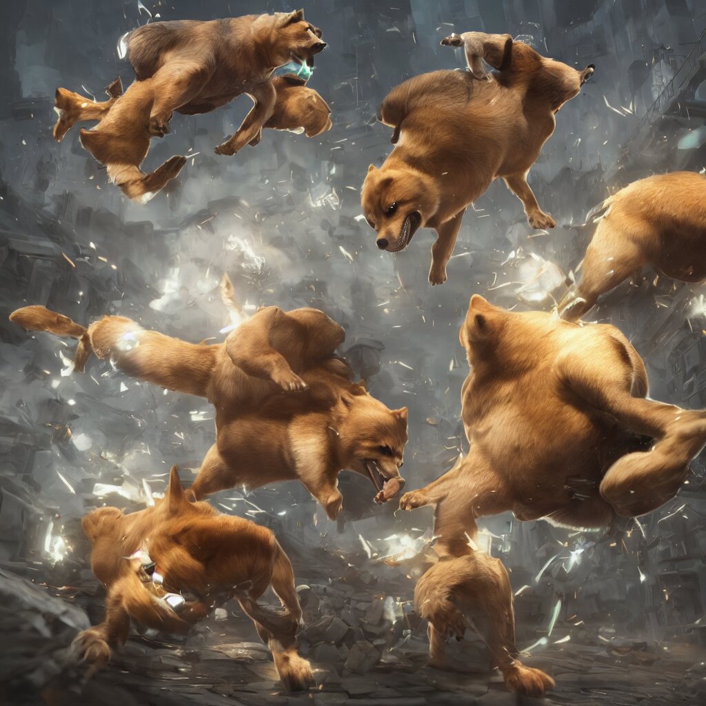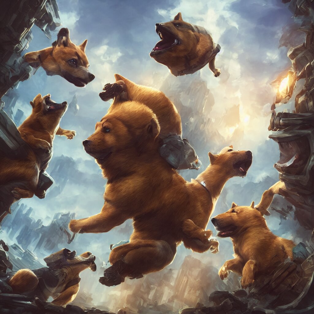 3 d realistic render of swole doge vs cheems meme, digital art, hyper detailed, cinematic lighting, studio quality, unreal engine 5 renderered, octane rendered, ultrarealistic, concept art, artstation, ihigh definition, 4 k, greg rutkowski