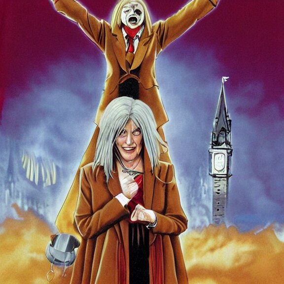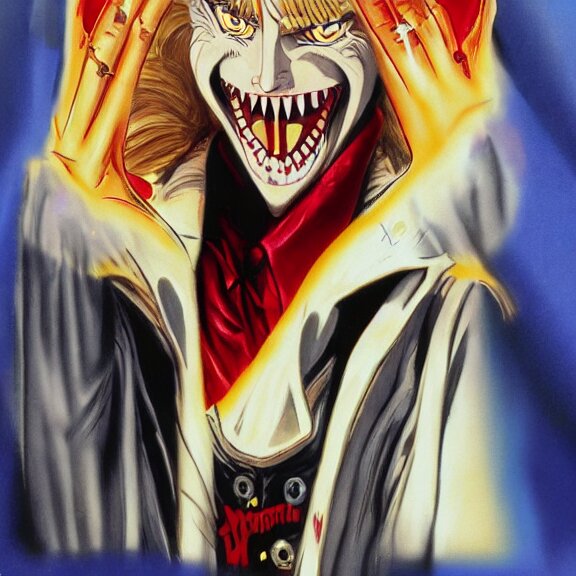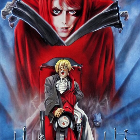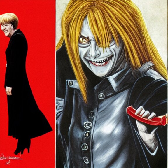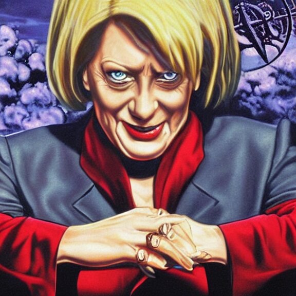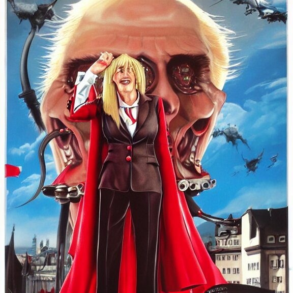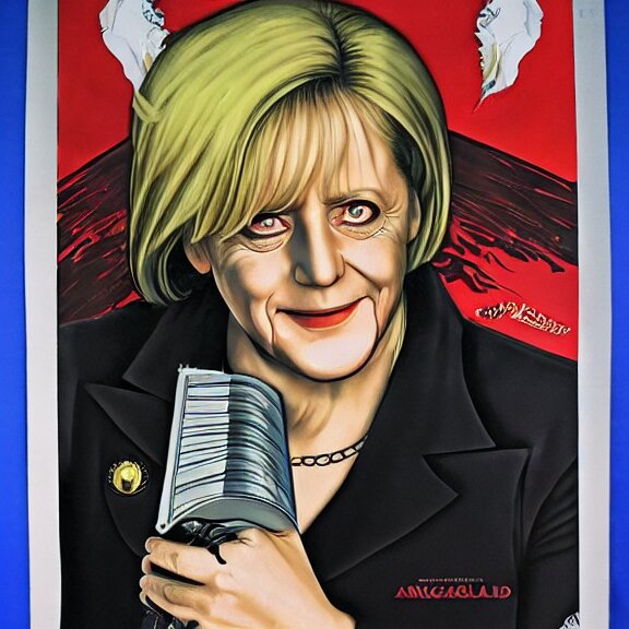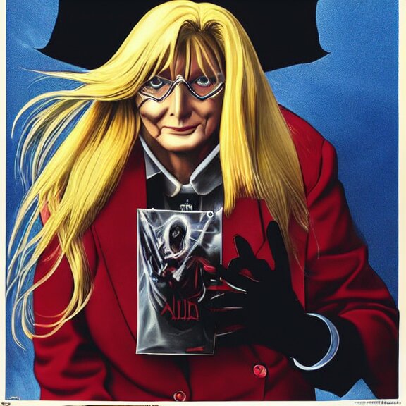 Angela merkel is alucard in hellsing, airbrush art, drew struzan illustration art, key art, movie poster