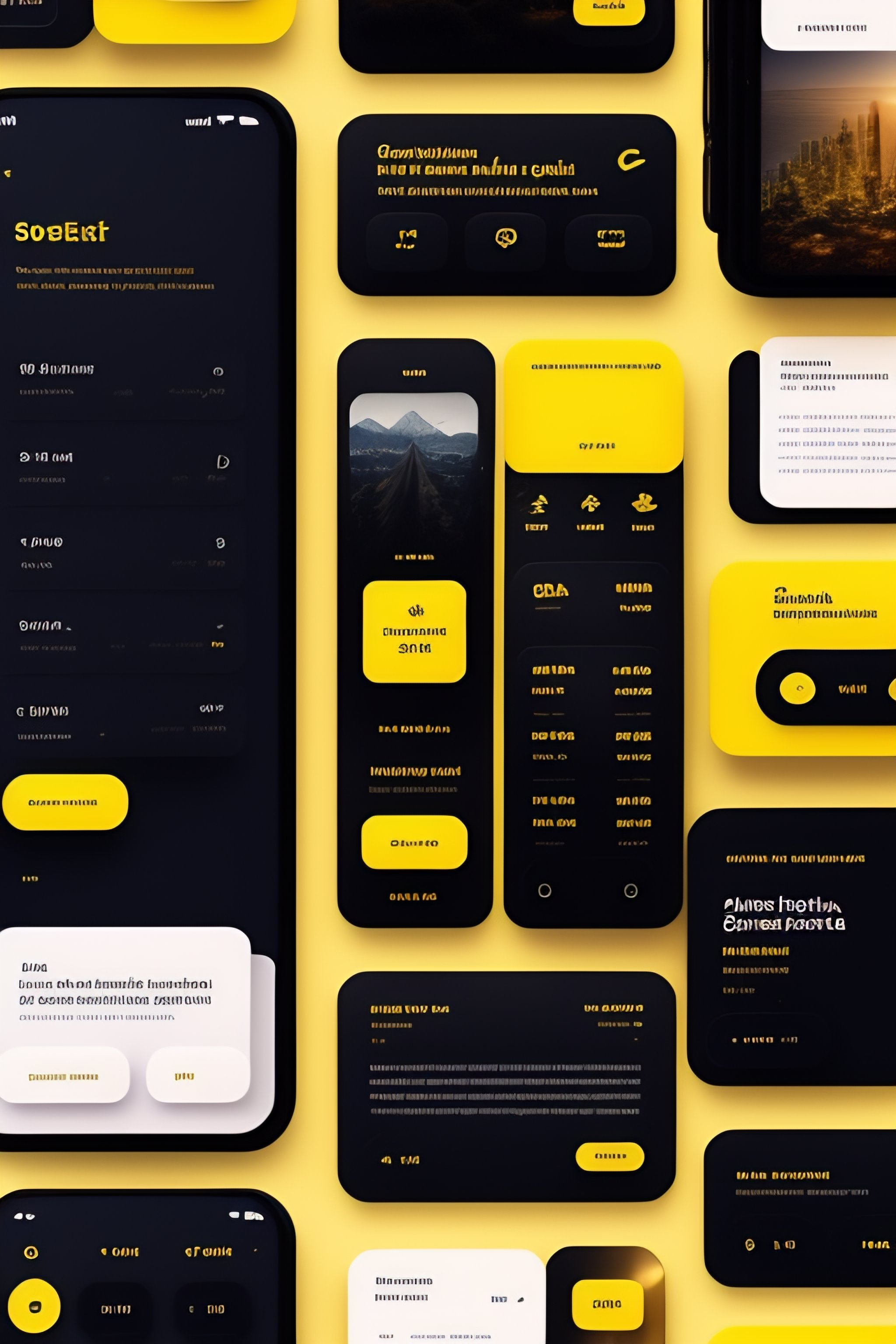 News ui design, ux research, mobile ui ux, wireframe background black, yellow accent, sfpro display font bold --stylish 700