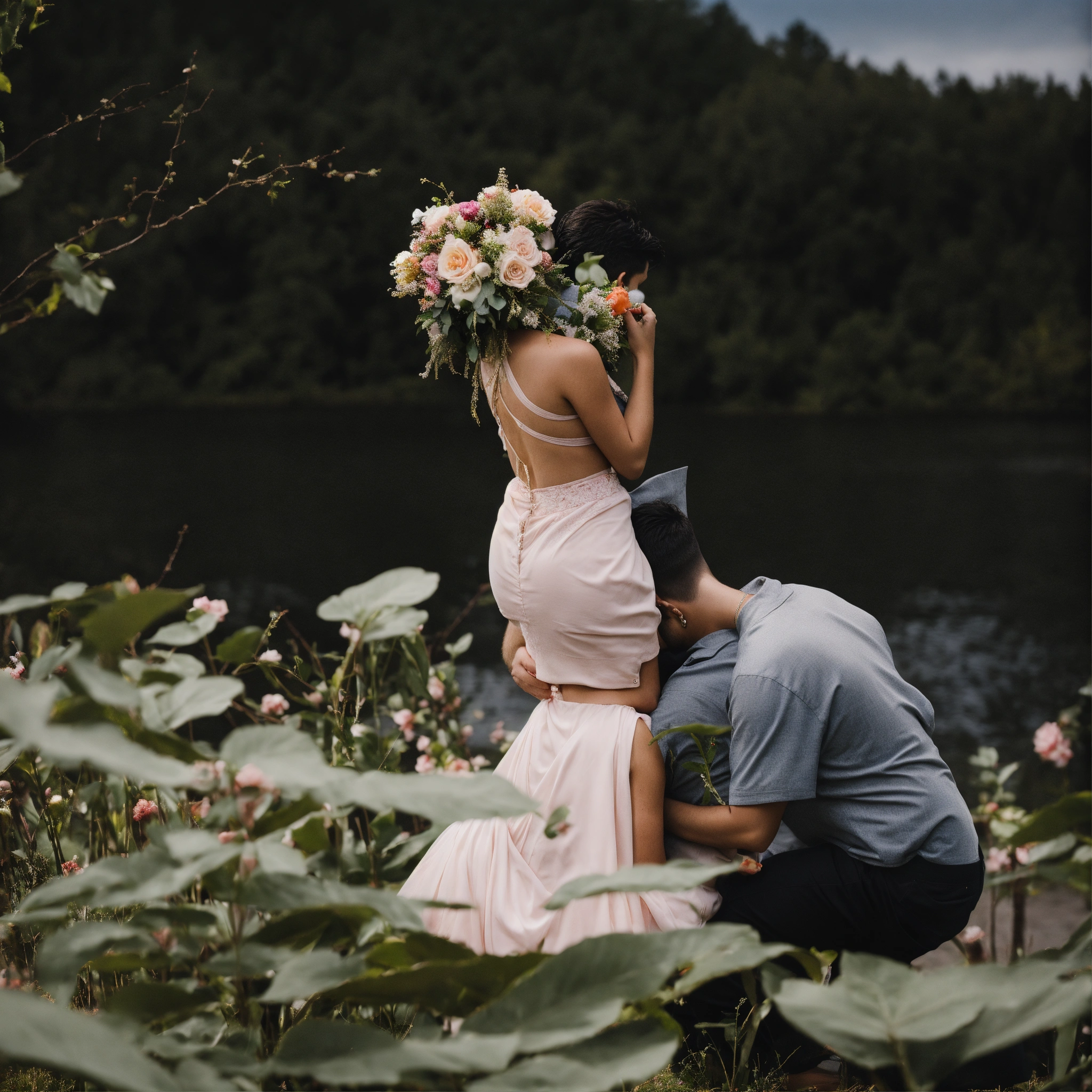 Couple holding one another