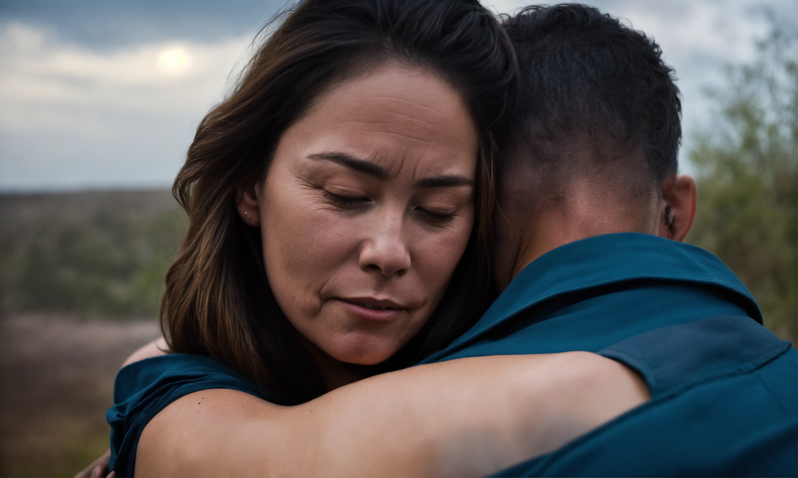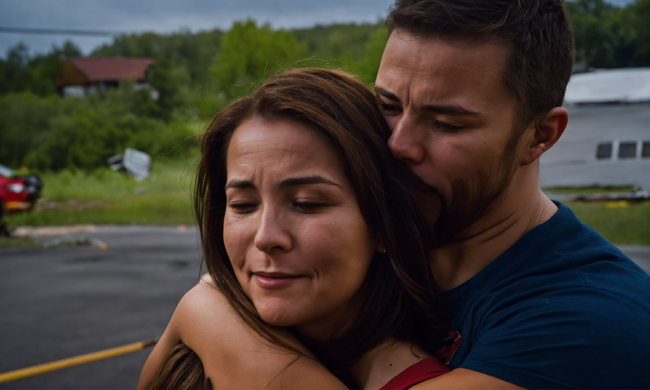 A powerful photo captures the moment when the woman, her face filled with gratitude, embraces david, her rescuer. their eyes reflect the intensity of the car accident scene, showing the profound connection forged through his heroic actions. it's an image of gratitude and the bond formed in the face of adversity.