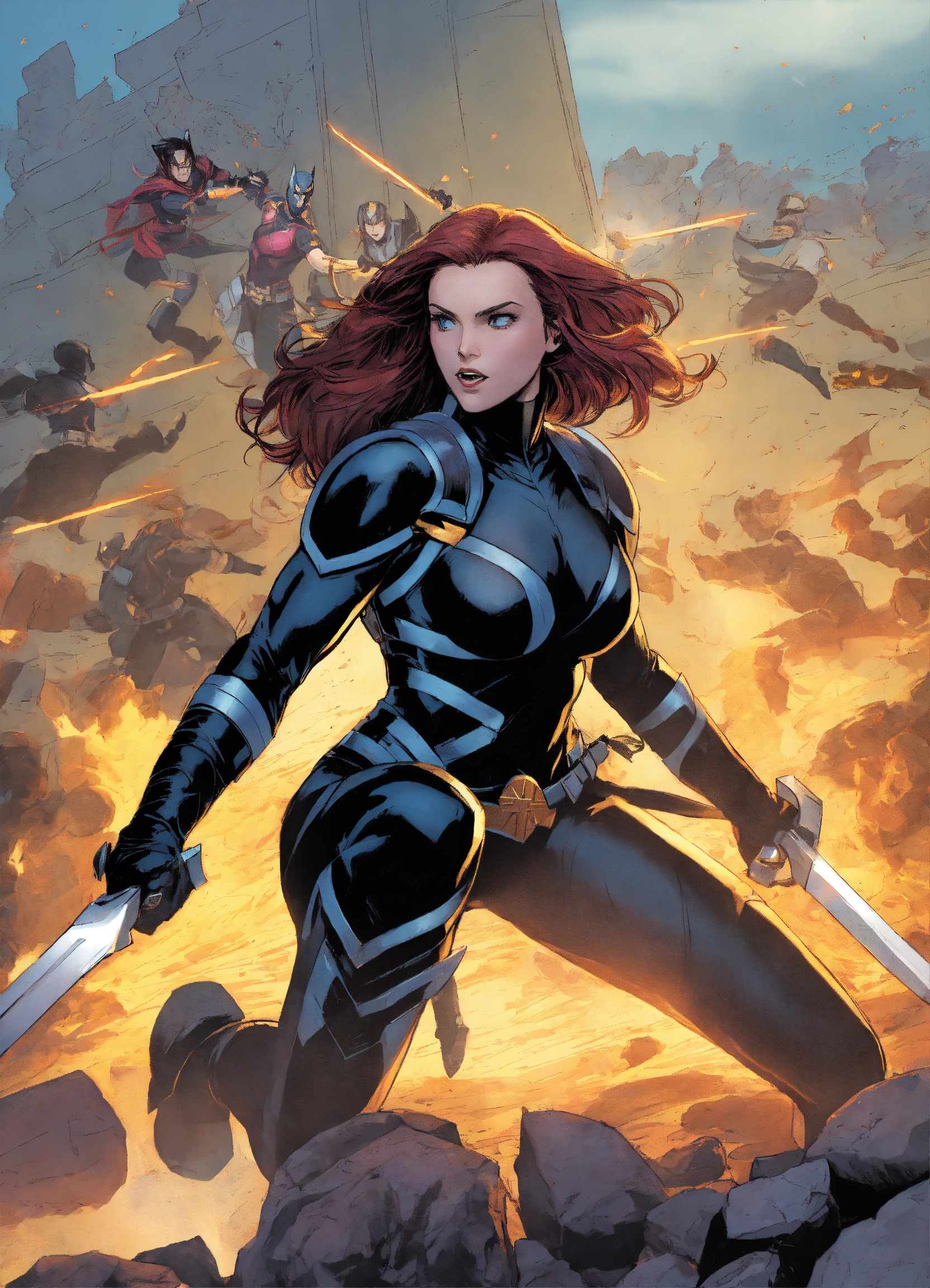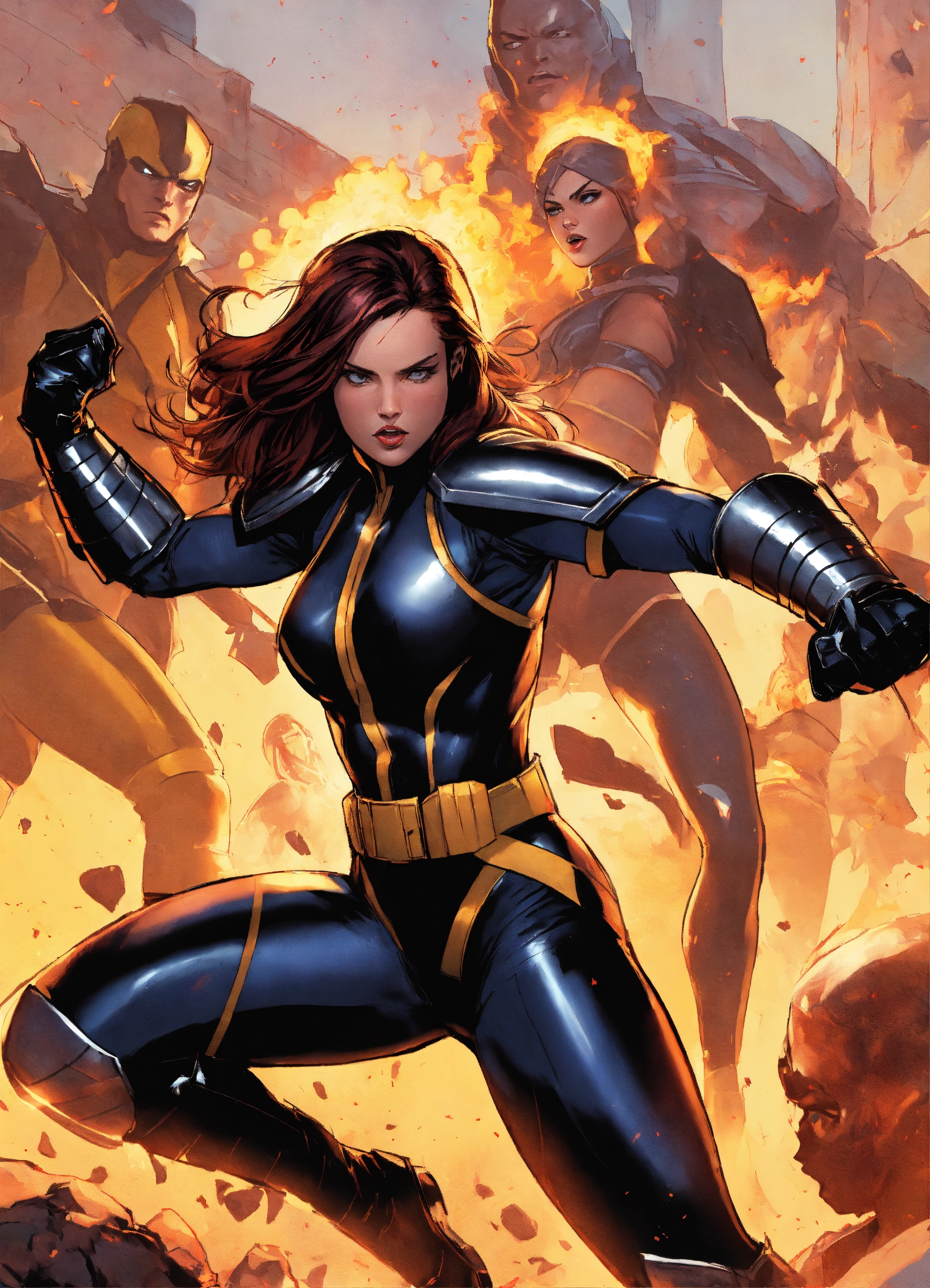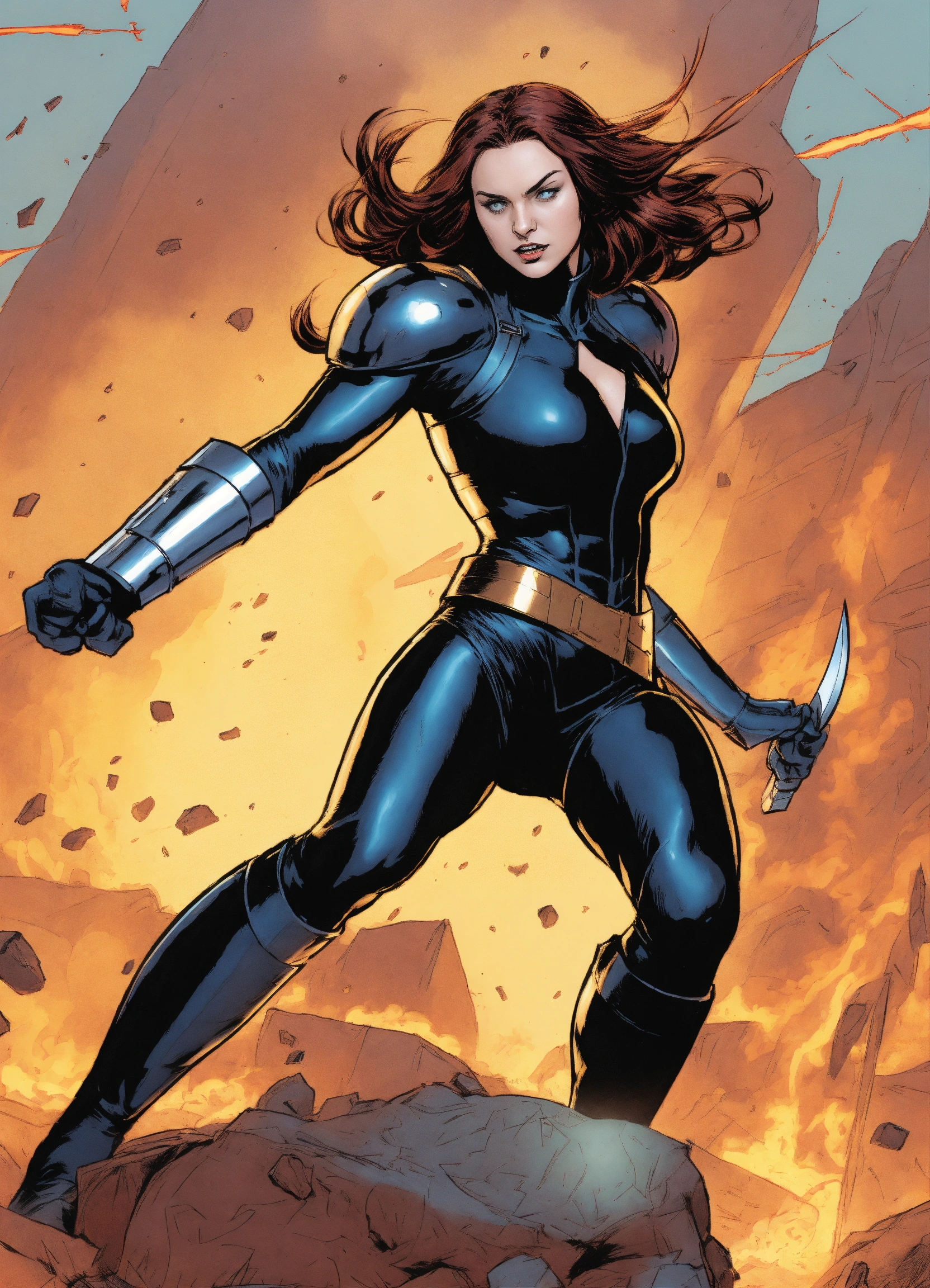 Female x-men shadowcat wearing black metal combat armor fighting in hand-to-hand combat