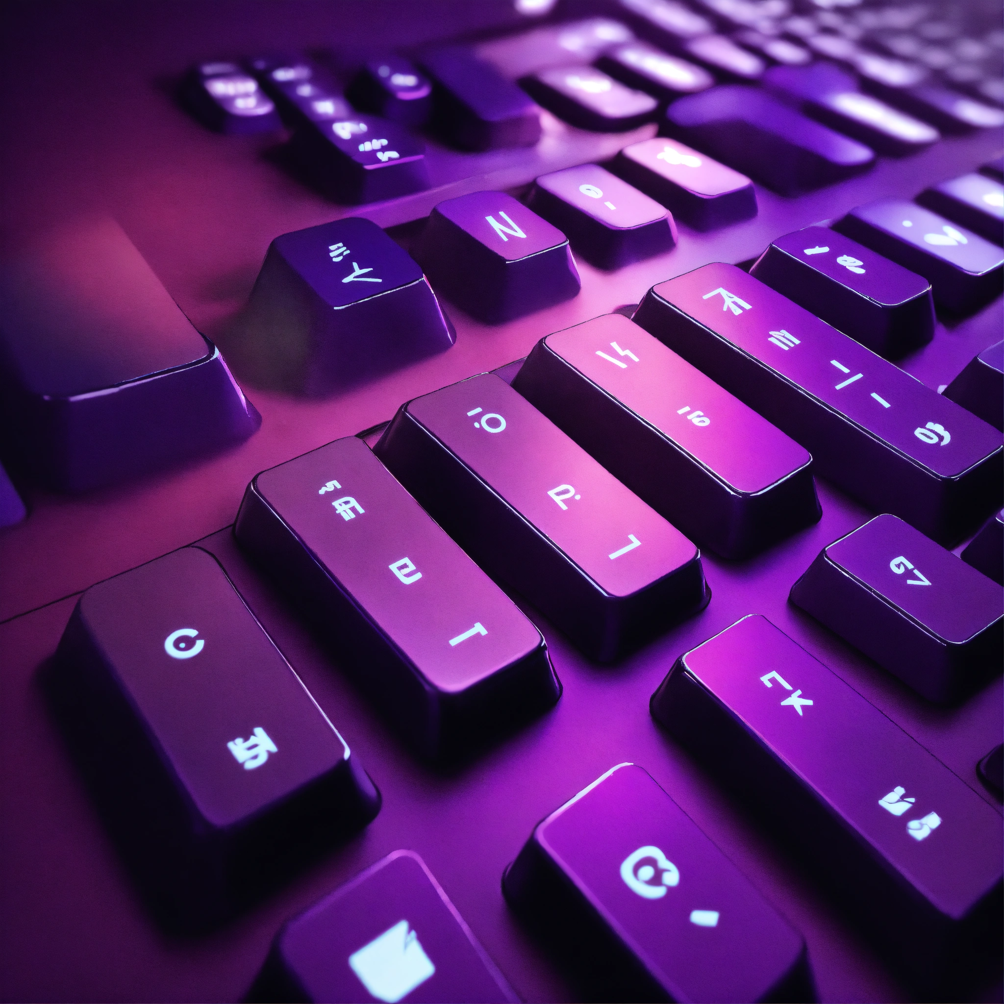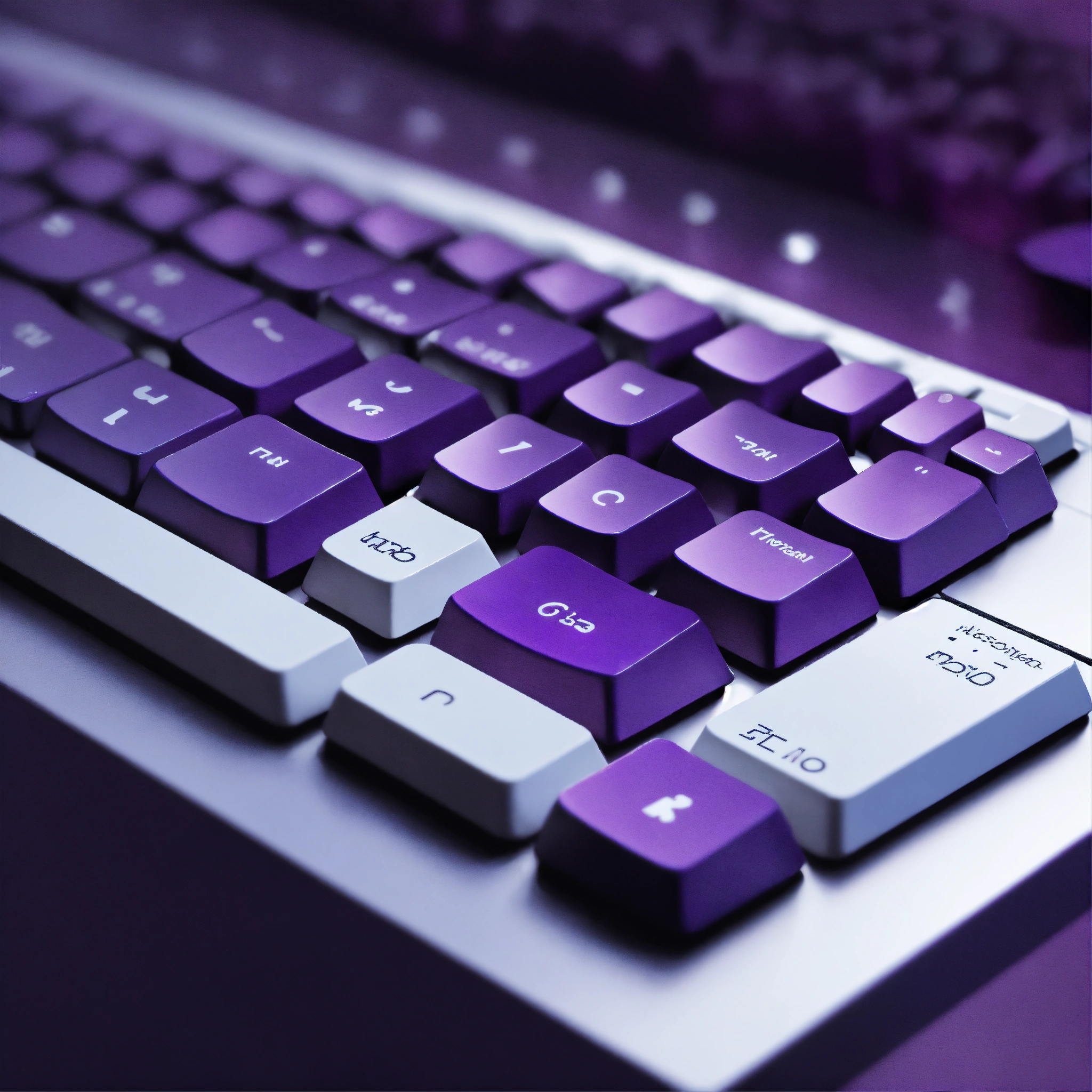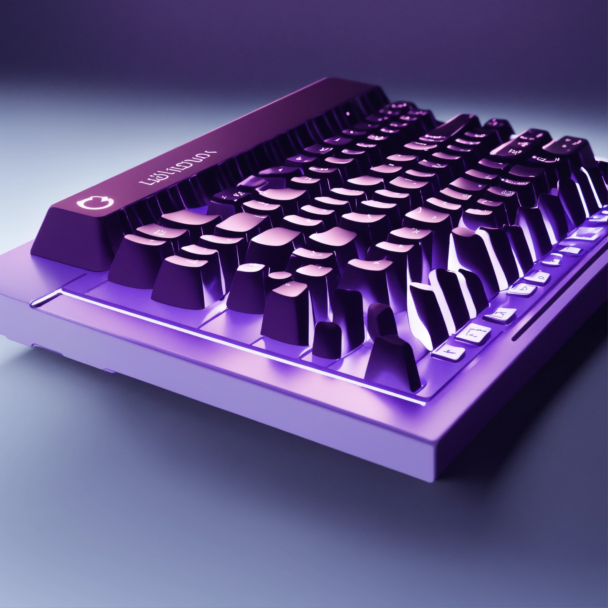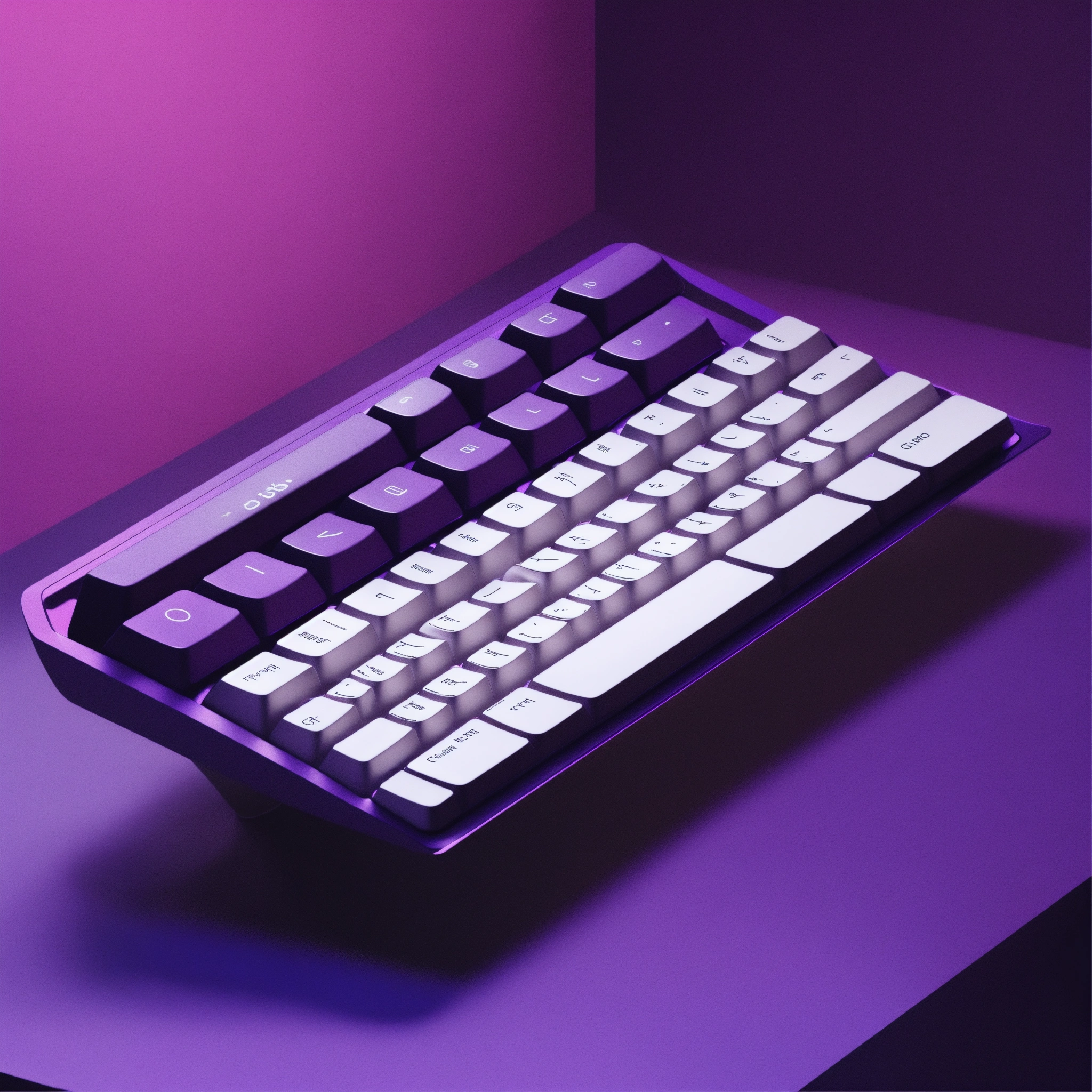 Mysterious magic 3d minimalist illustration of a keyboard, simple, elegant, deep dark purple and white tones