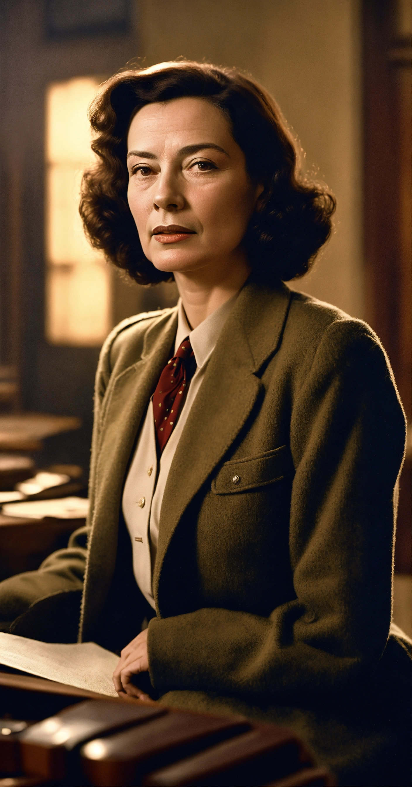 Create a hyper-realistic, cinematographic and captivating portrayal of violette szabo as an intelligence agent, collaborating with the french resistance during 1944-1945, highlighting her bravery and strategic acumen in a visually stunning and realistic setting.