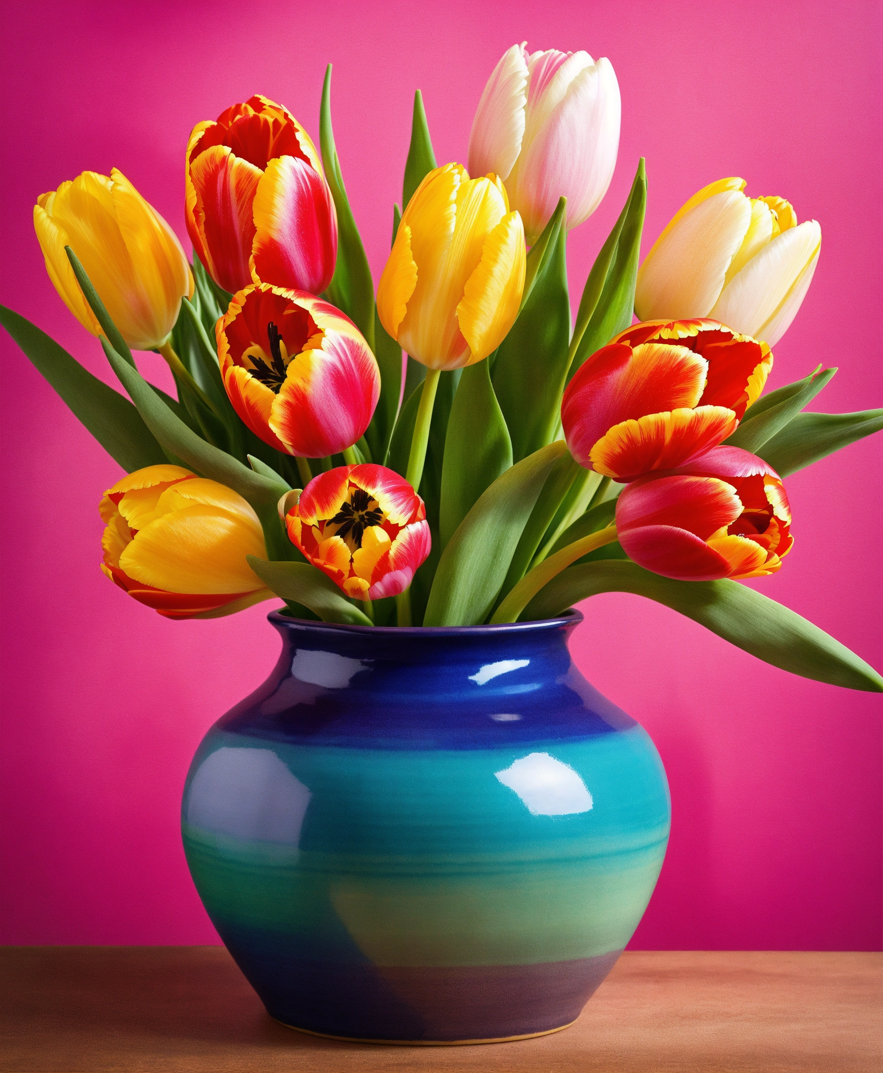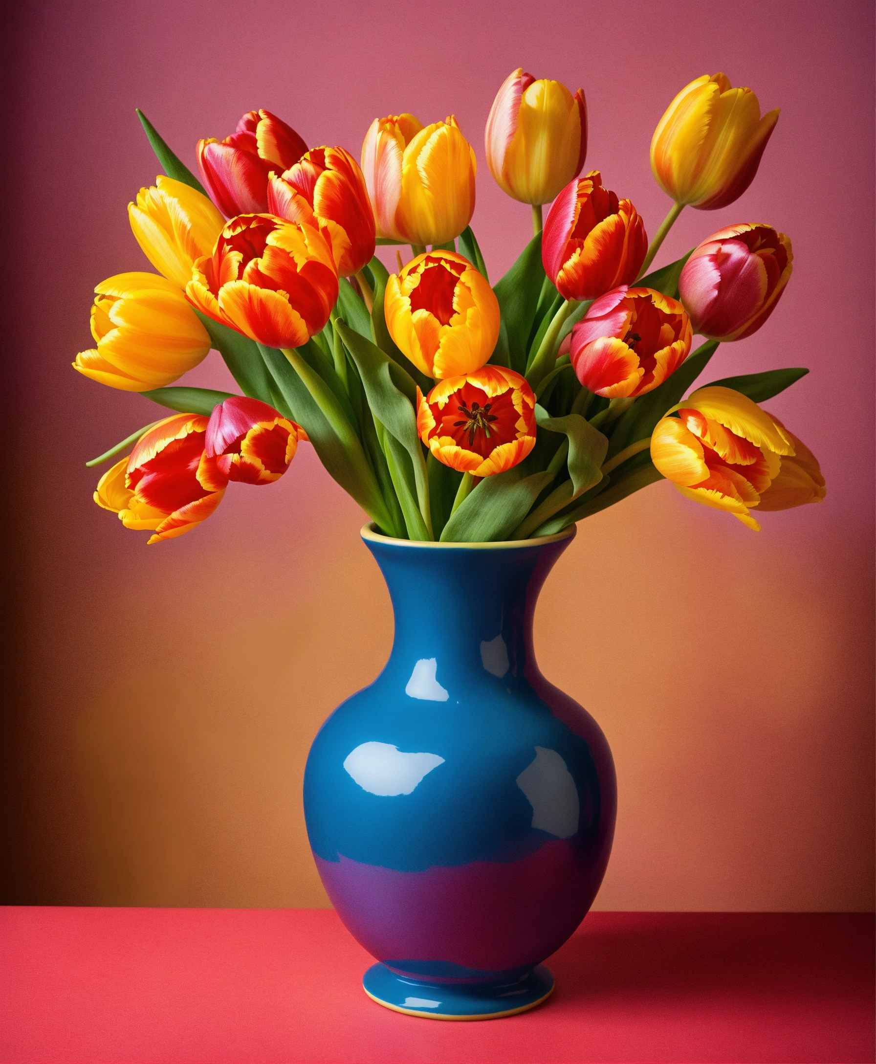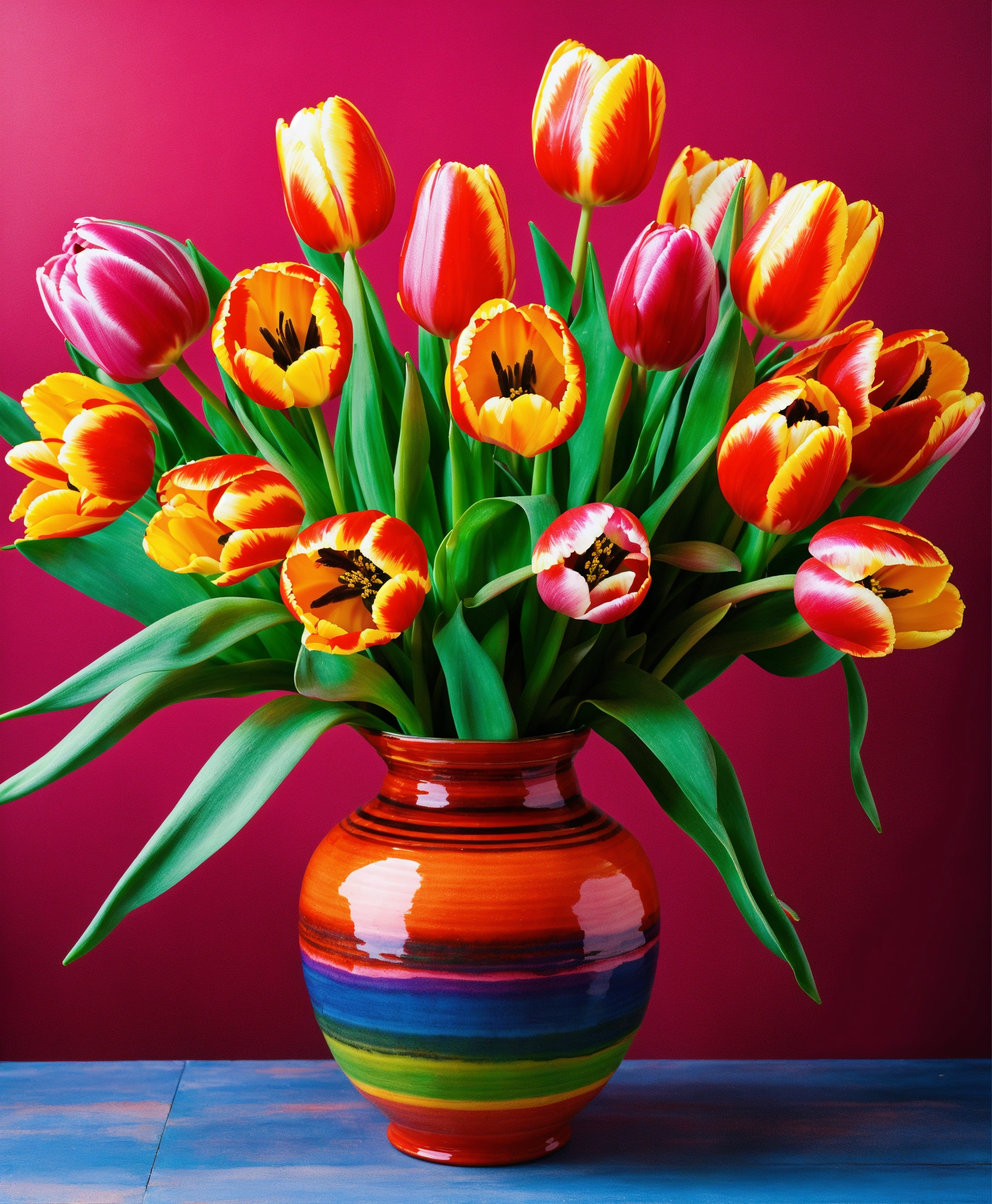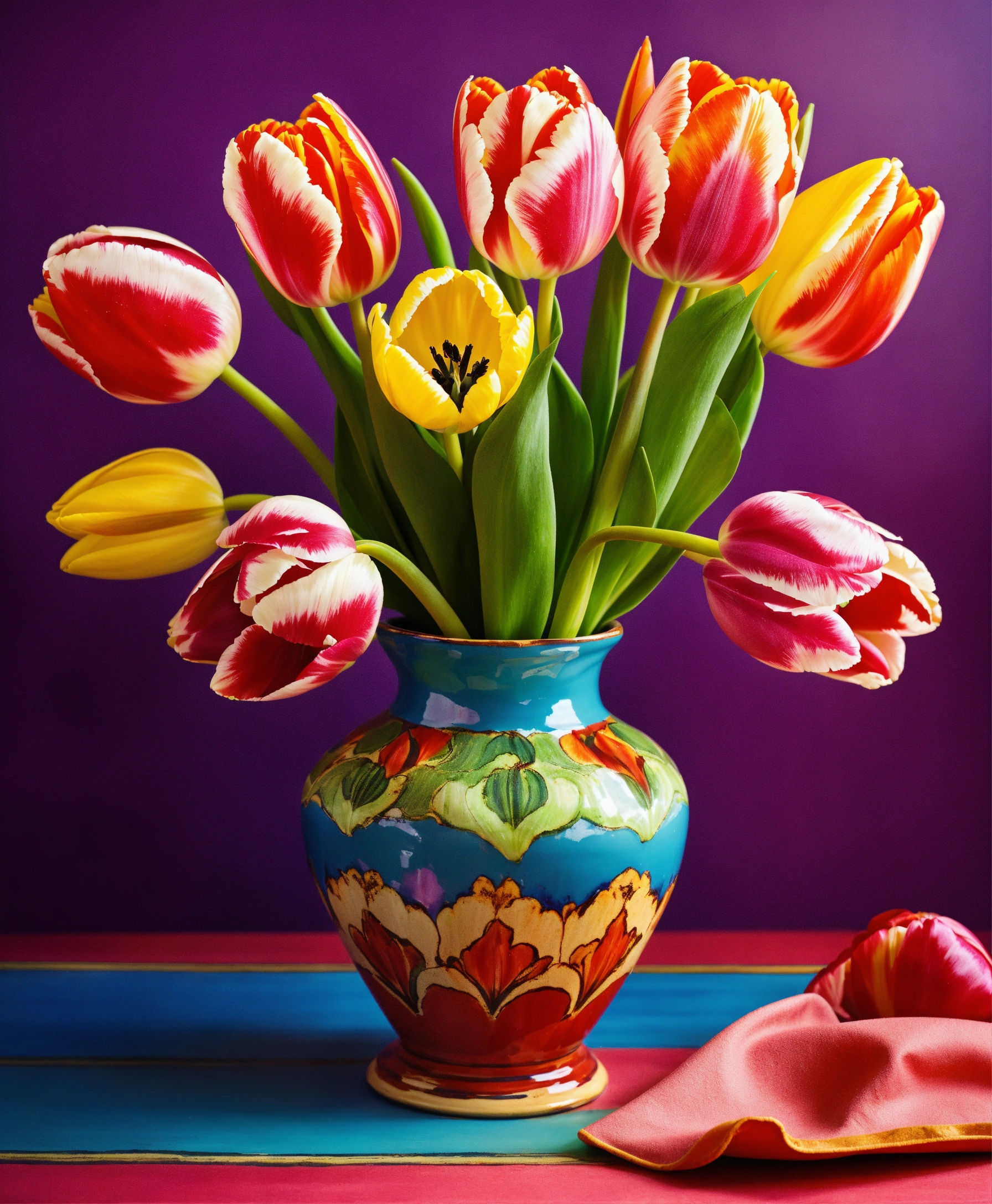 Vibrant tulips in a colorful