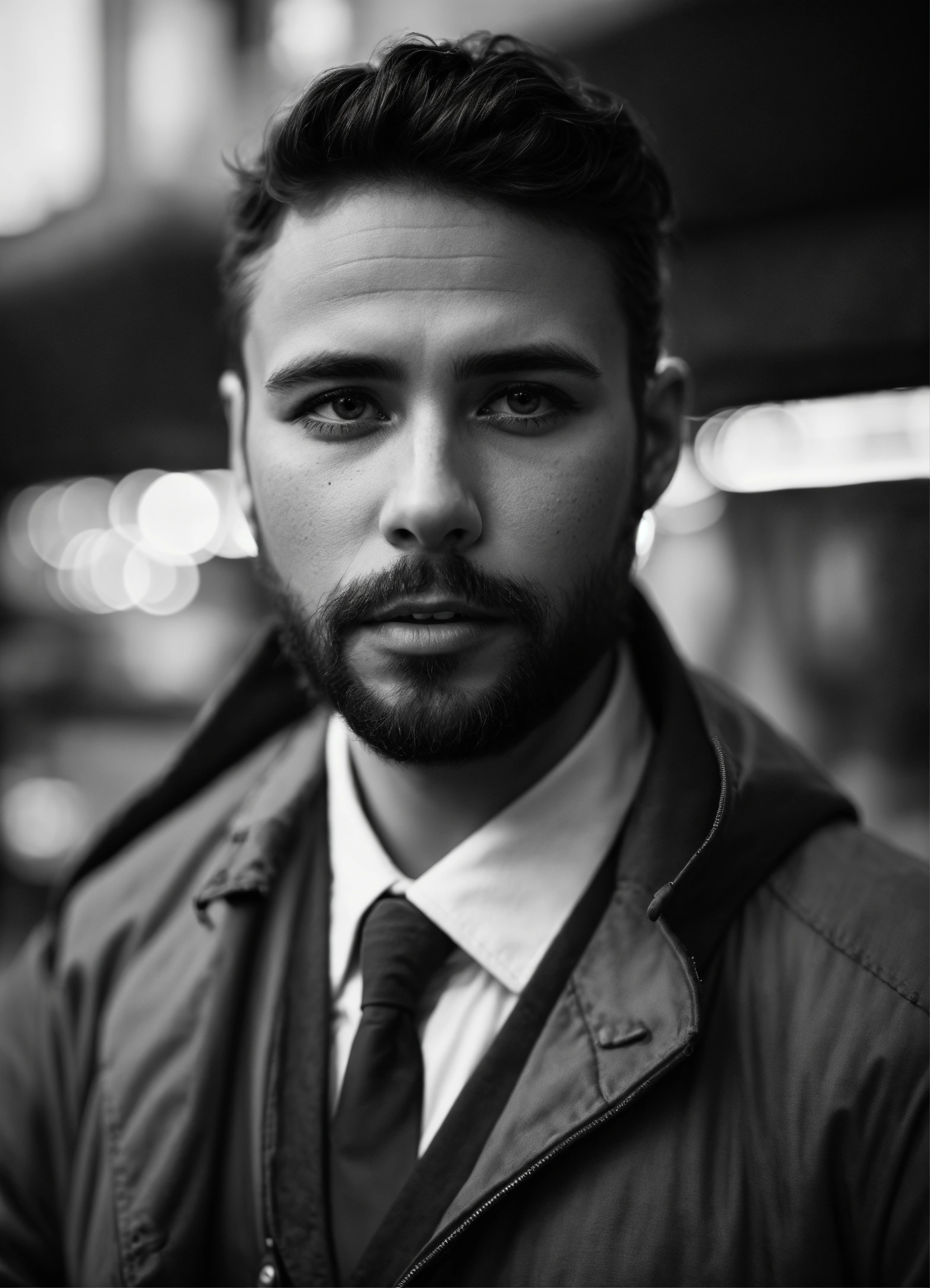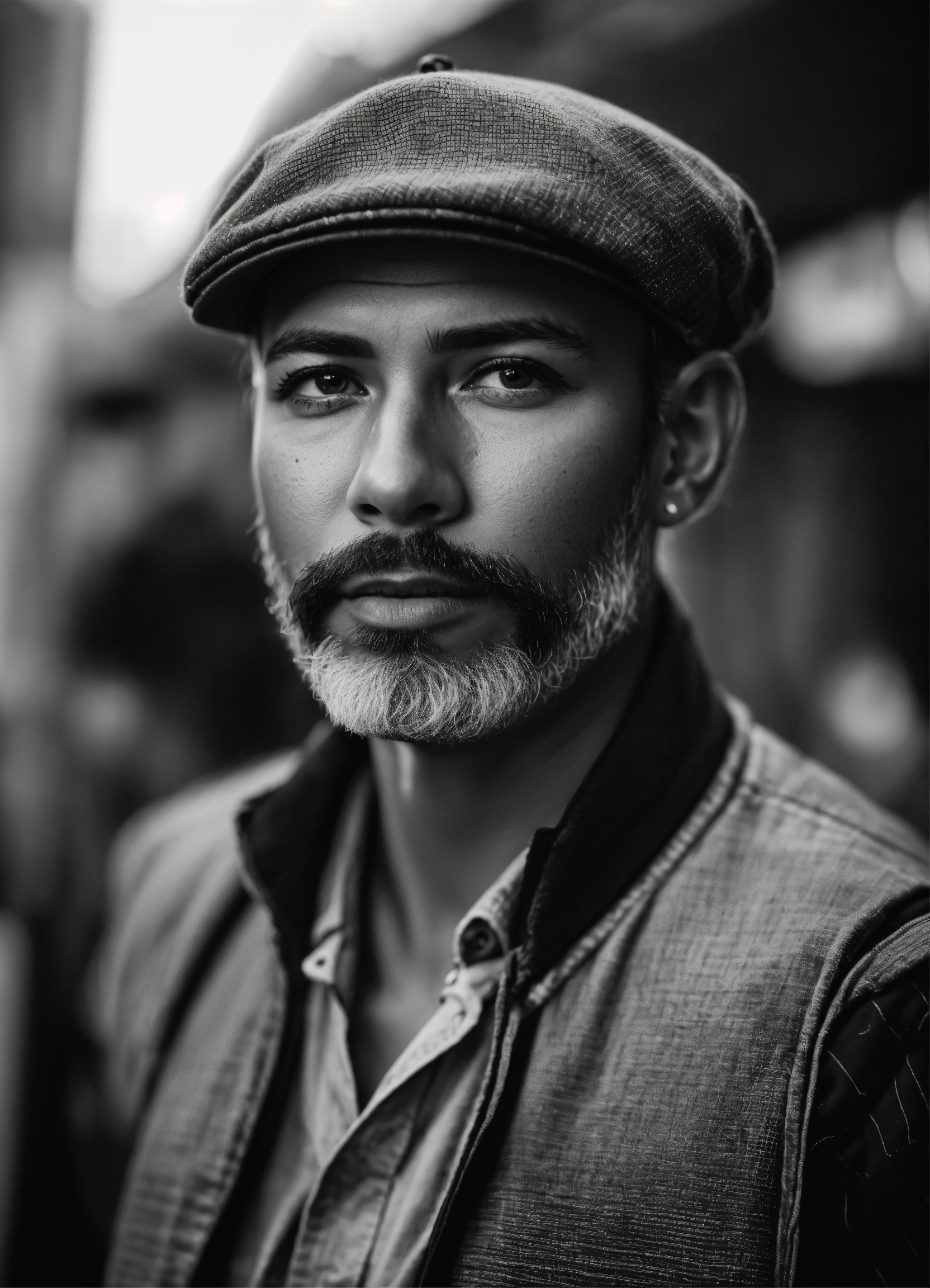 A striking black and white portrait of a charismatic entrepreneur, their gaze unwavering and self-assured. the image is expertly shot with a leica m10 monochrom camera and a summilux-m 50mm f/1.4 asph lens, highlighting the strong lines of the subject’s face and their captivating presence. using an aperture of f/1.8, iso 400, and a shutter speed of 1/250 sec, the portrait conveys a sense of determination and success, inspiring viewers with its powerful composition