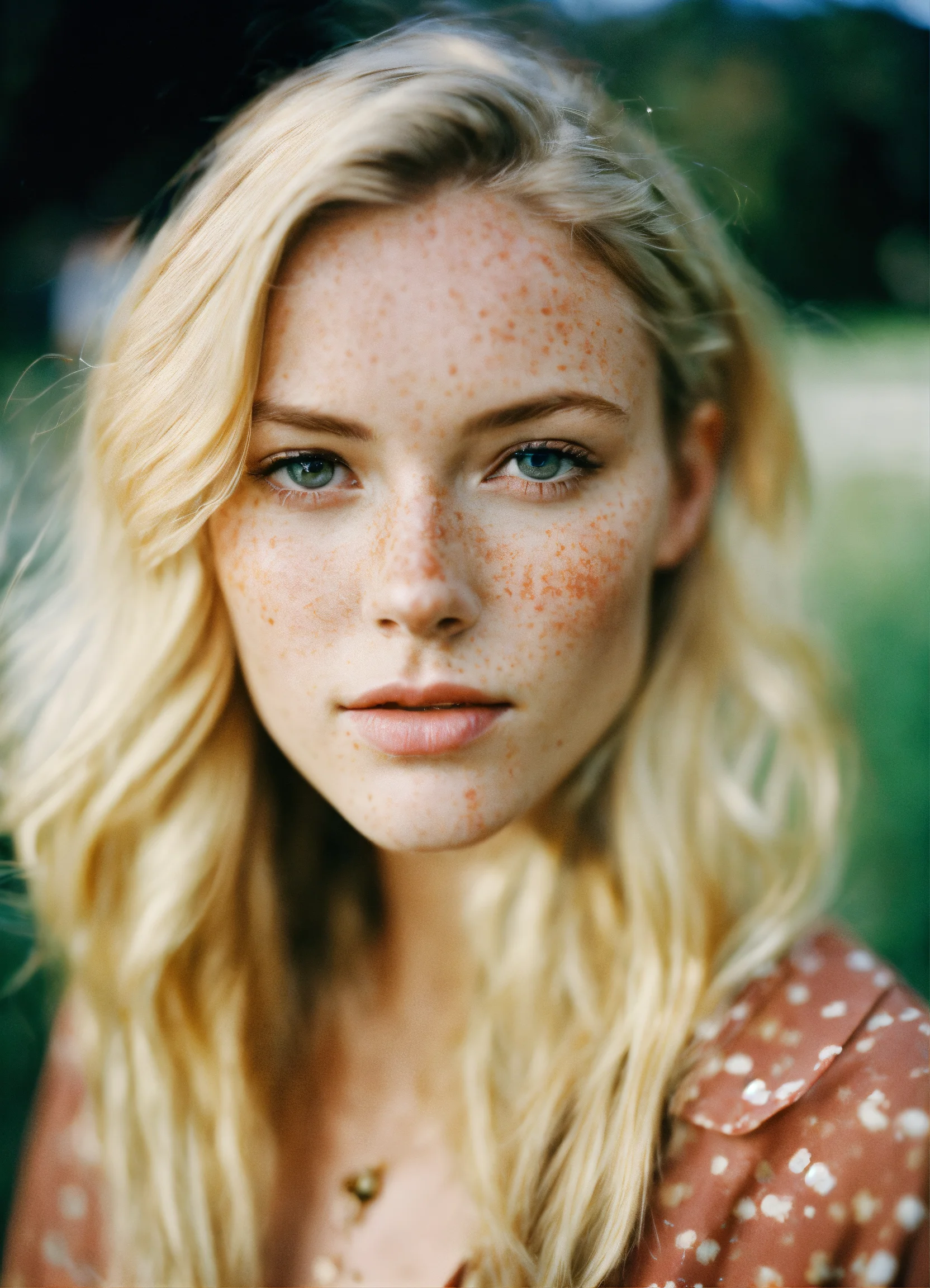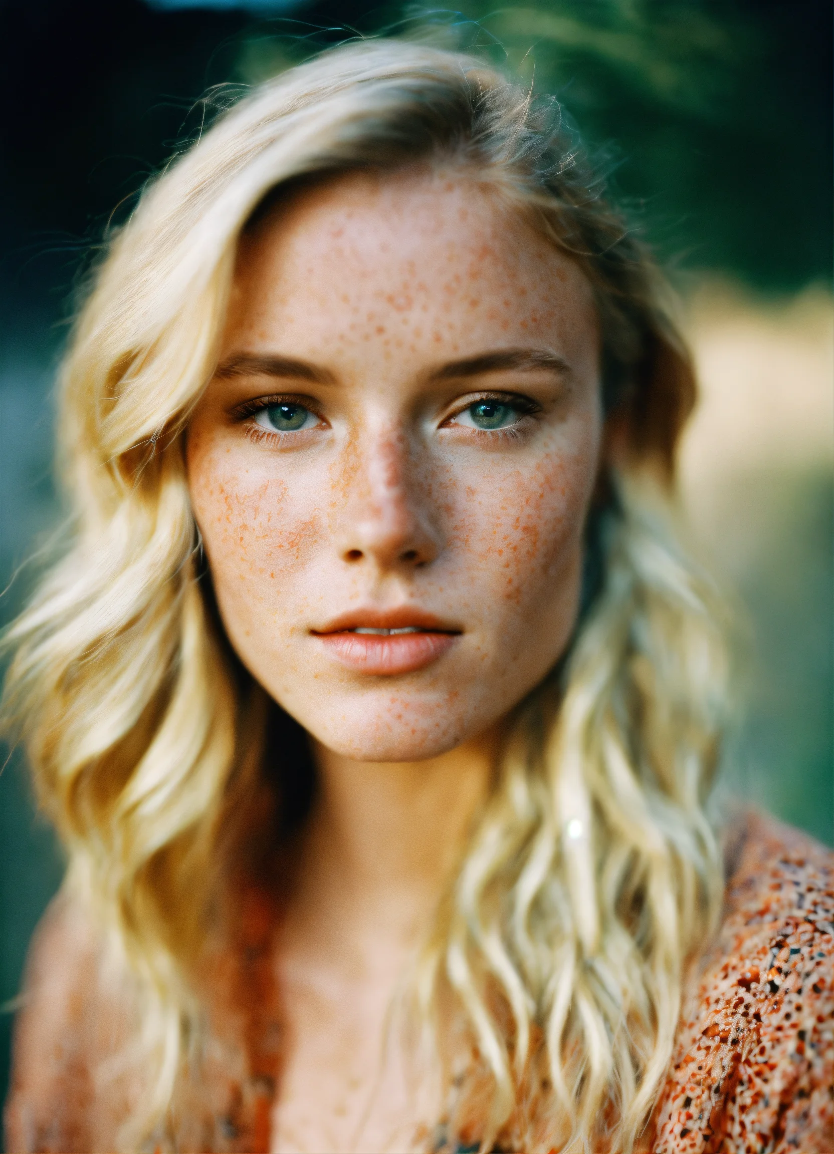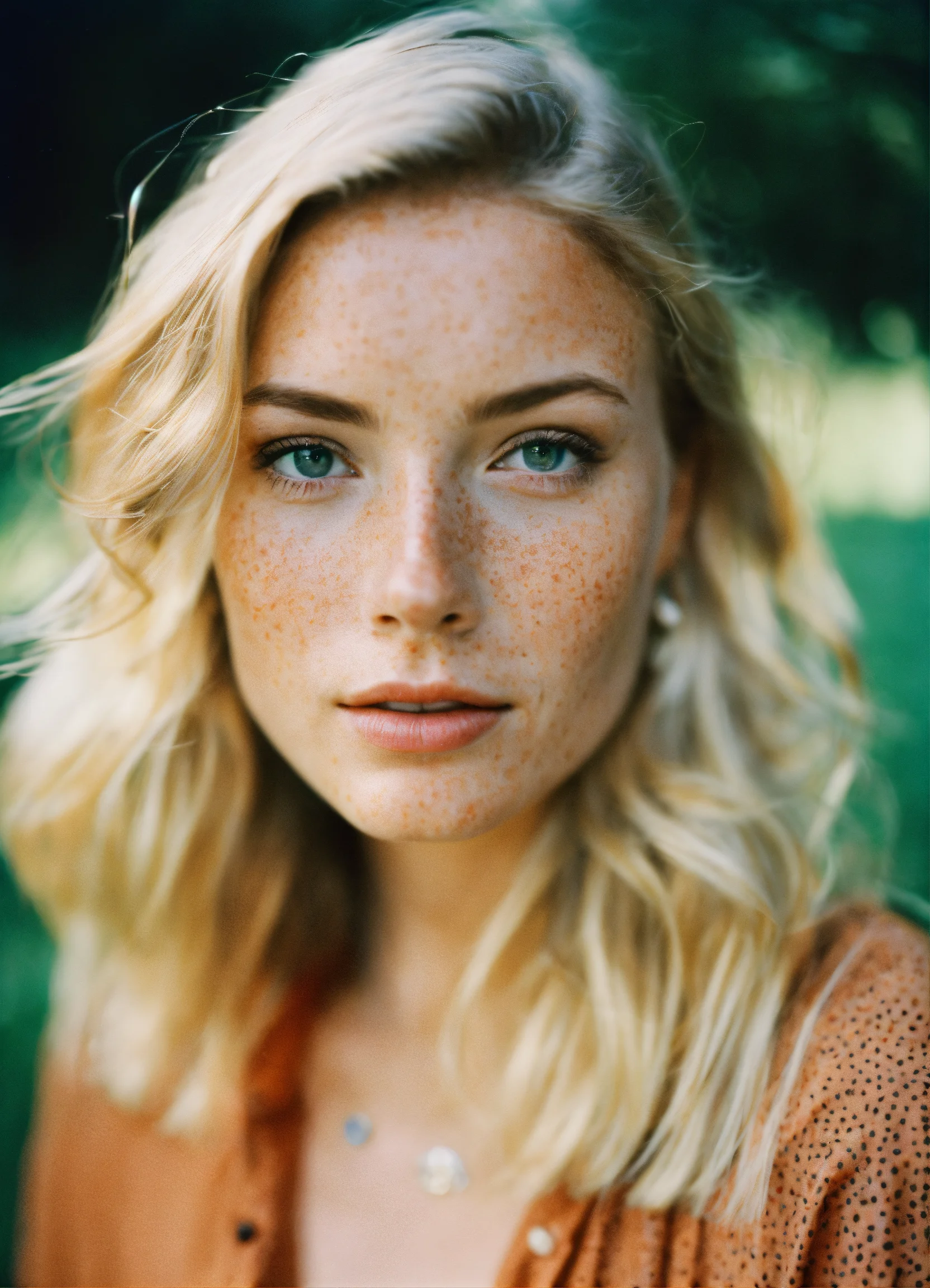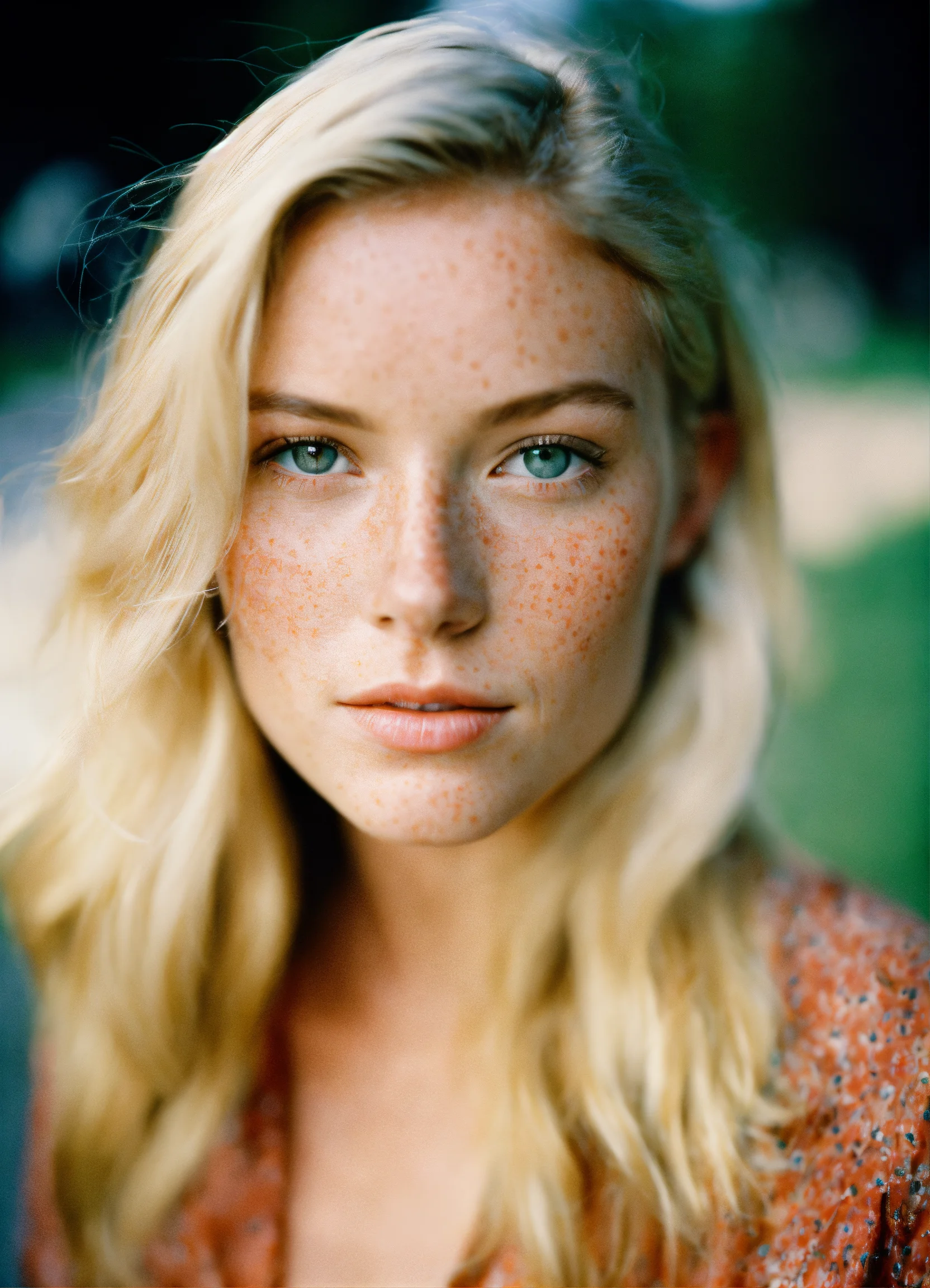 Beautiful blonde woman with freckles