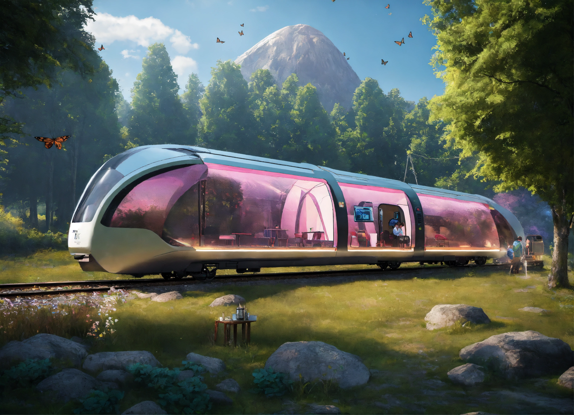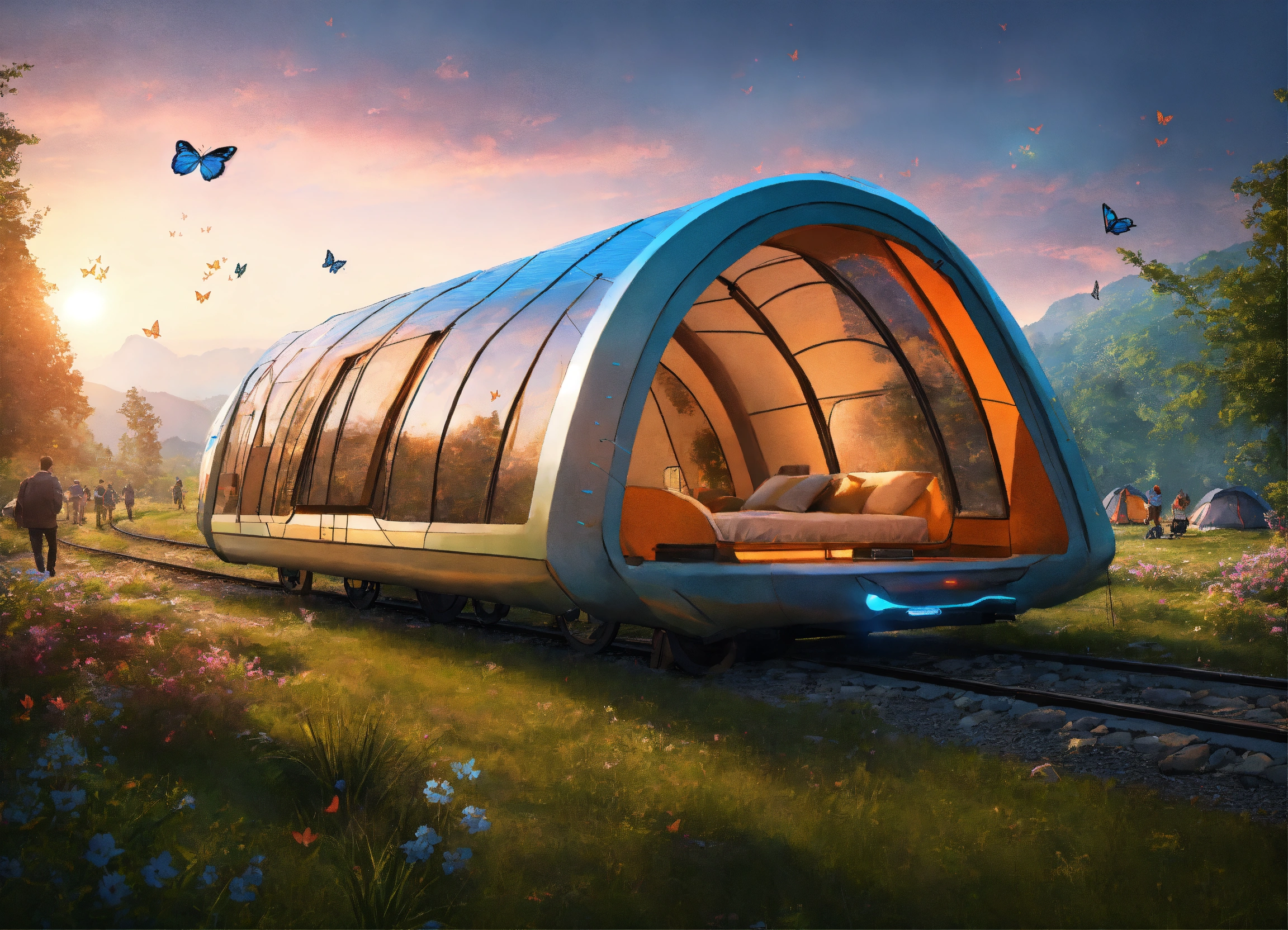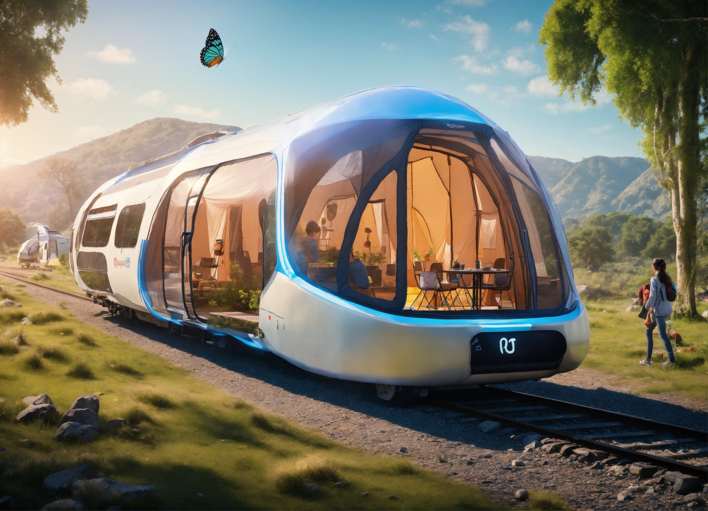 Train of the future running on the camping-ground