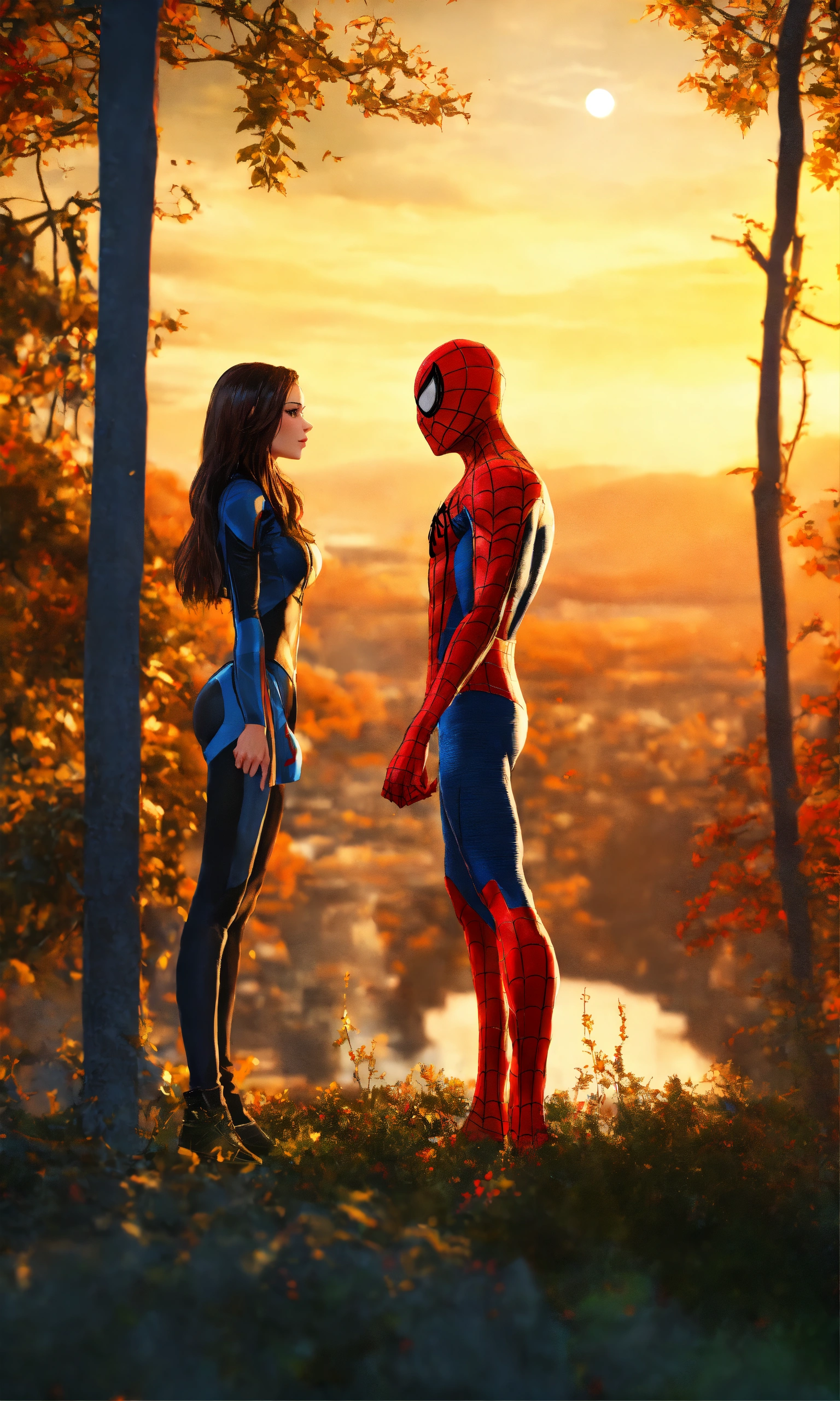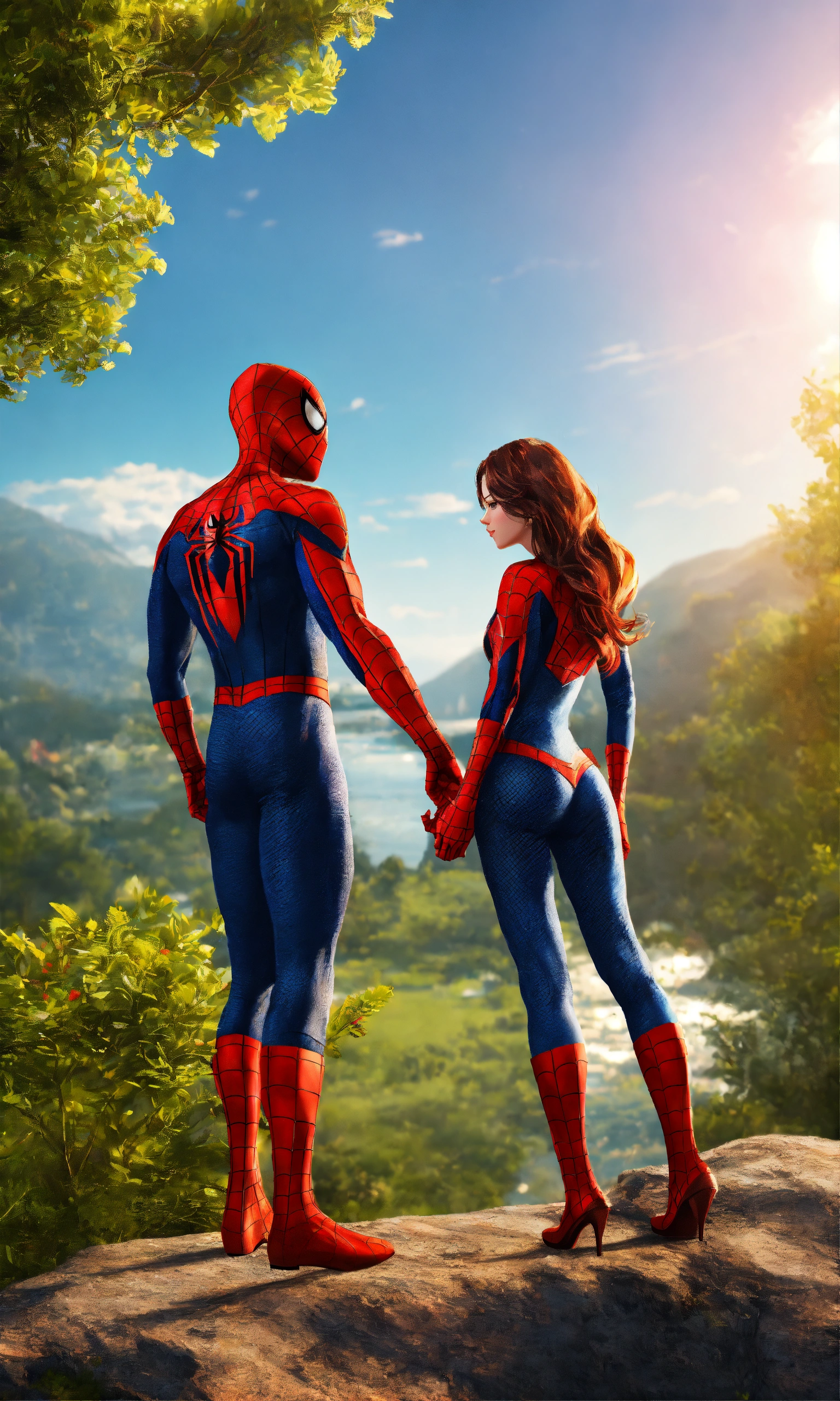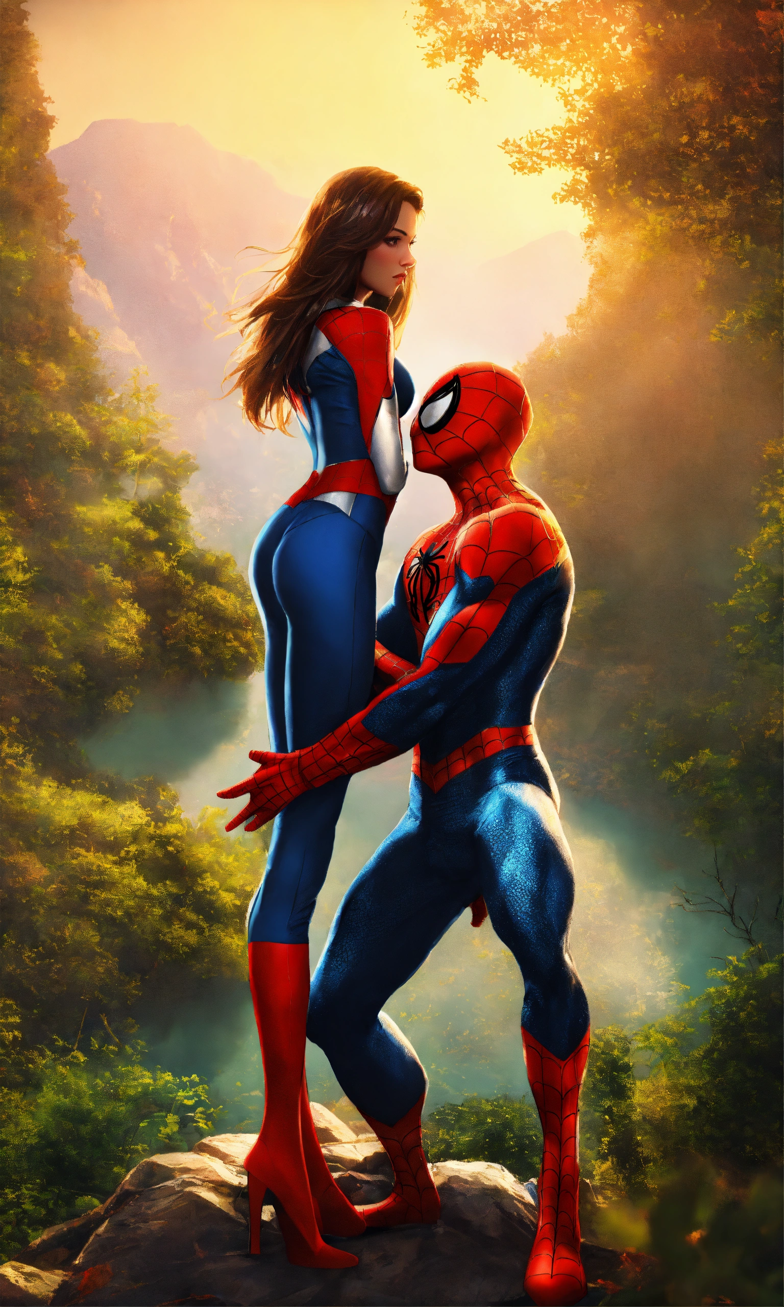 Spiderman with his hot girlfriend with long hair