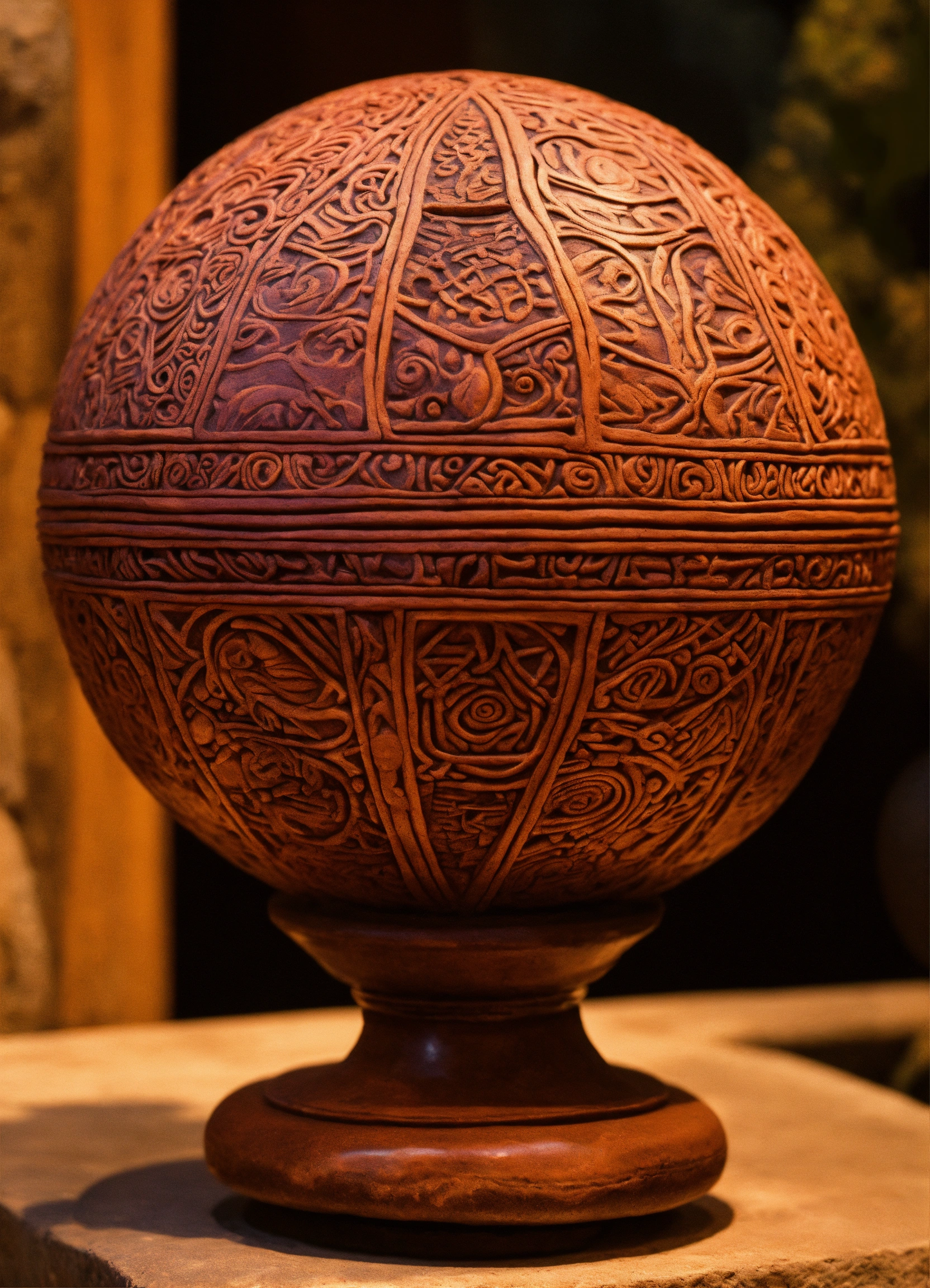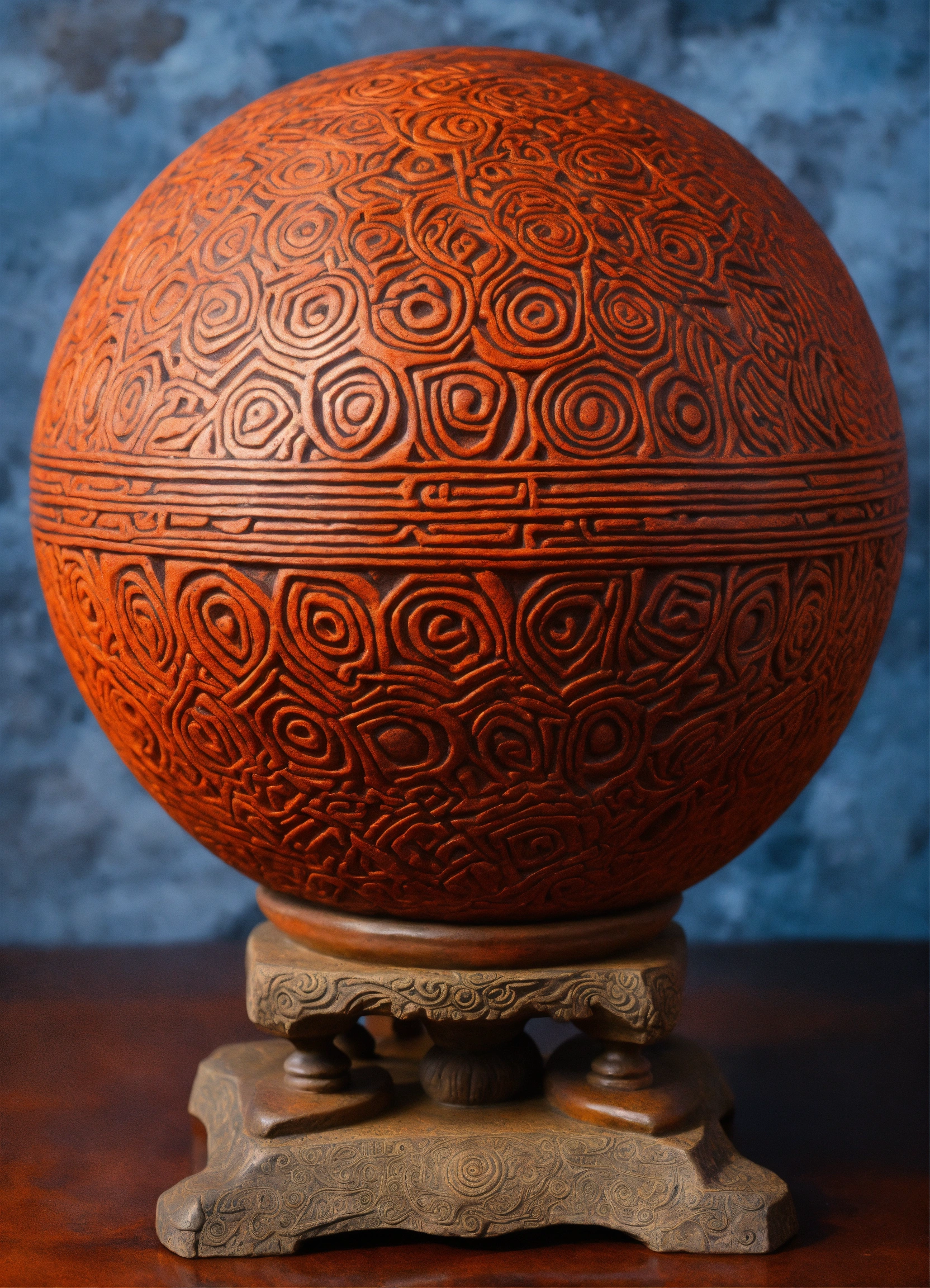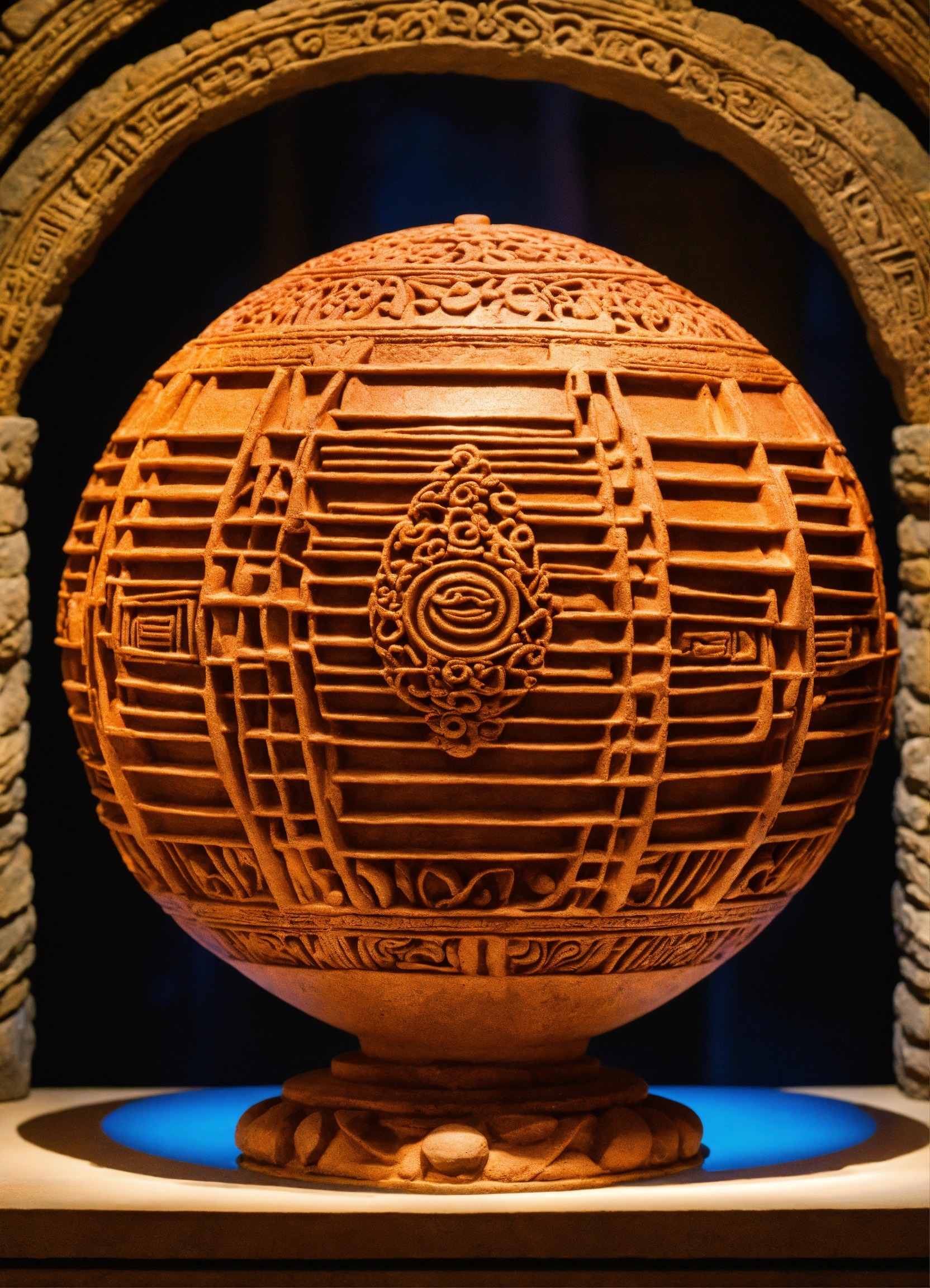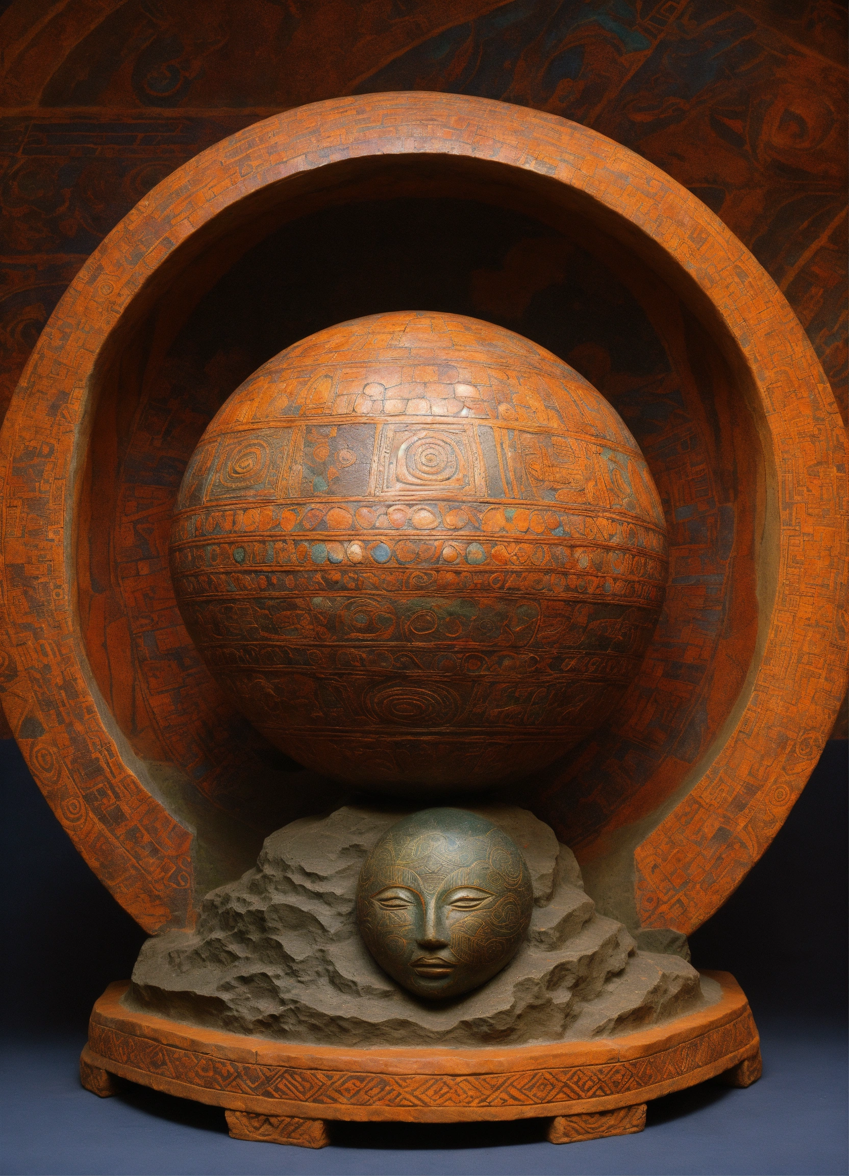 An ancient stone sphere hand made meditative sculptured in the style of alex grey