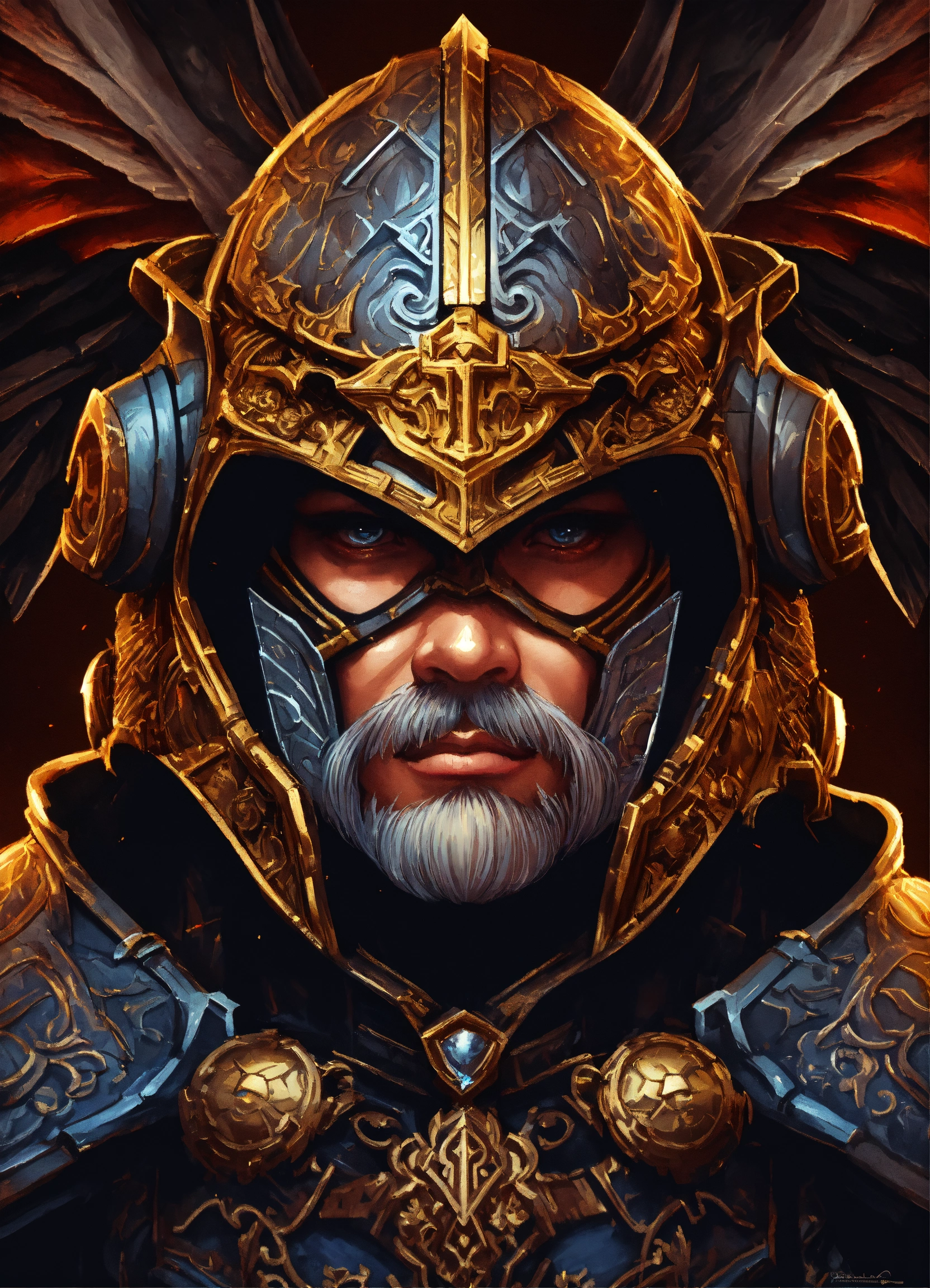 A close up of a dwarf wearing a helmet, symmetrical epic fantasy art, fantasy rpg symmetrical portrait, in style of dark fantasy art, highly detailed dark art, ornate dramatic bat wing helmet, detailed digital 2d fantasy art, dan mumford and alex grey style, intricate armor, in the style dan mumford artwork, symmetric concept art, face of an armored villian