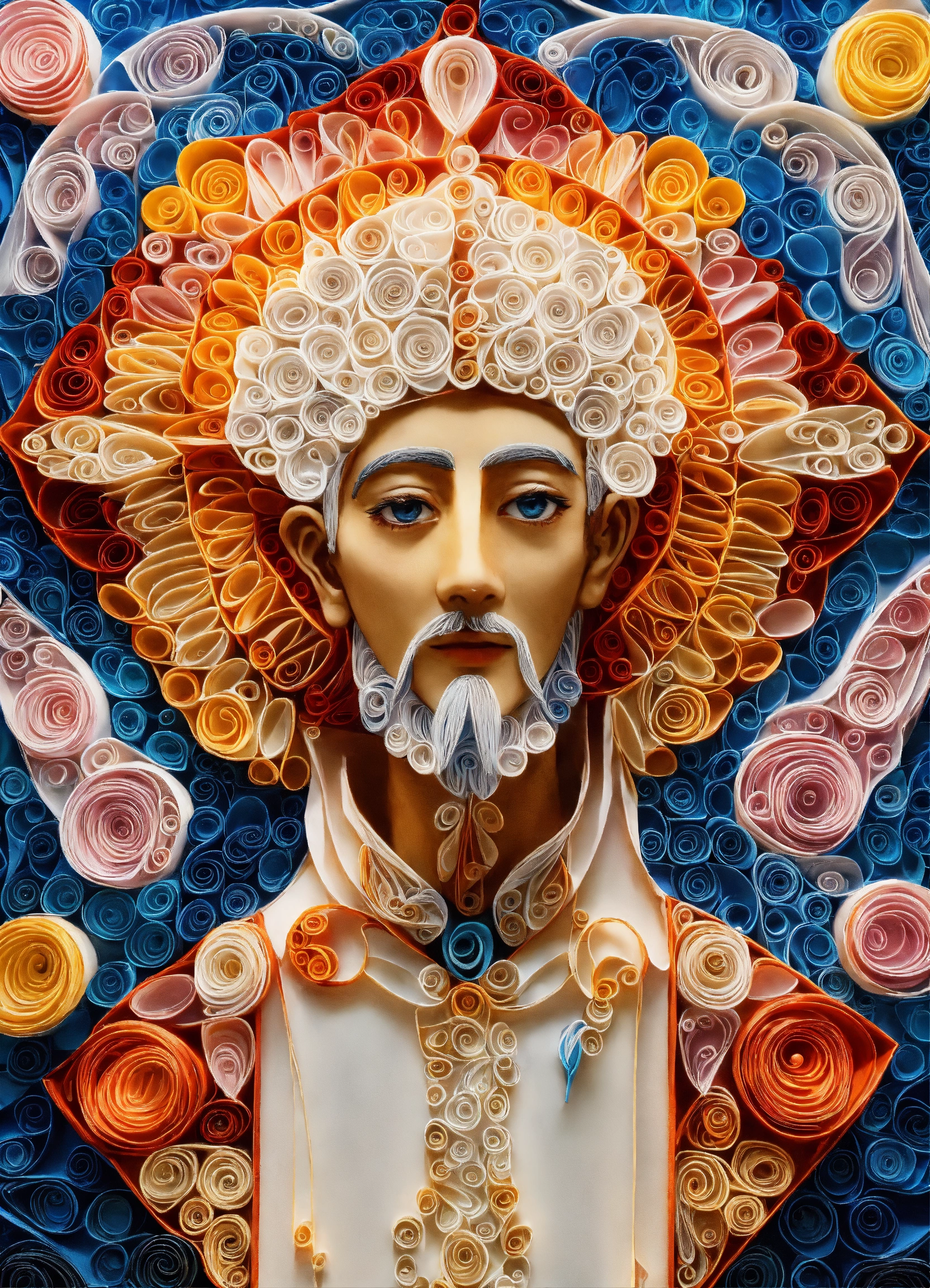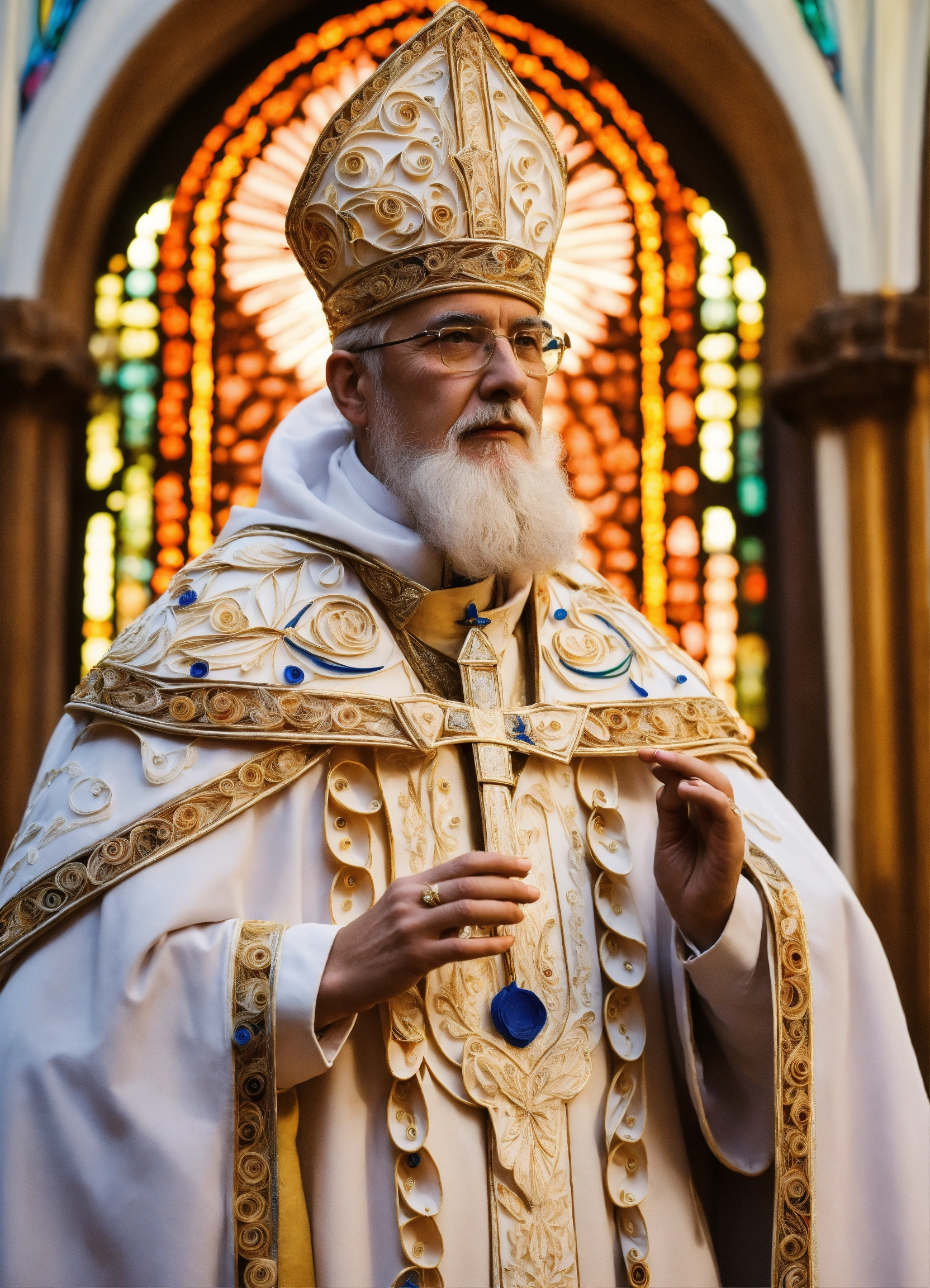 Beautiful man bishop quilling more quilling white profound fancy uplit