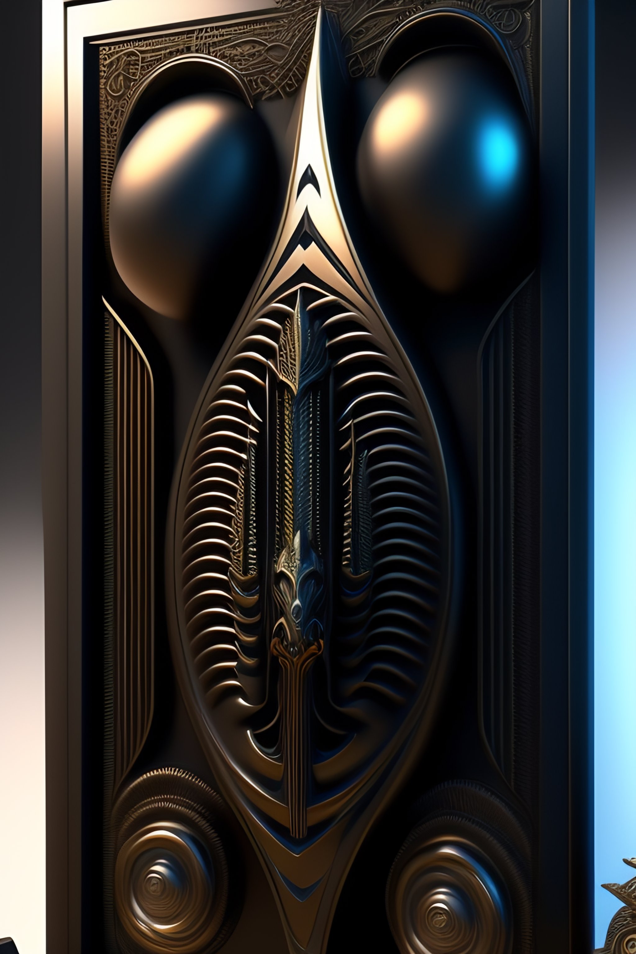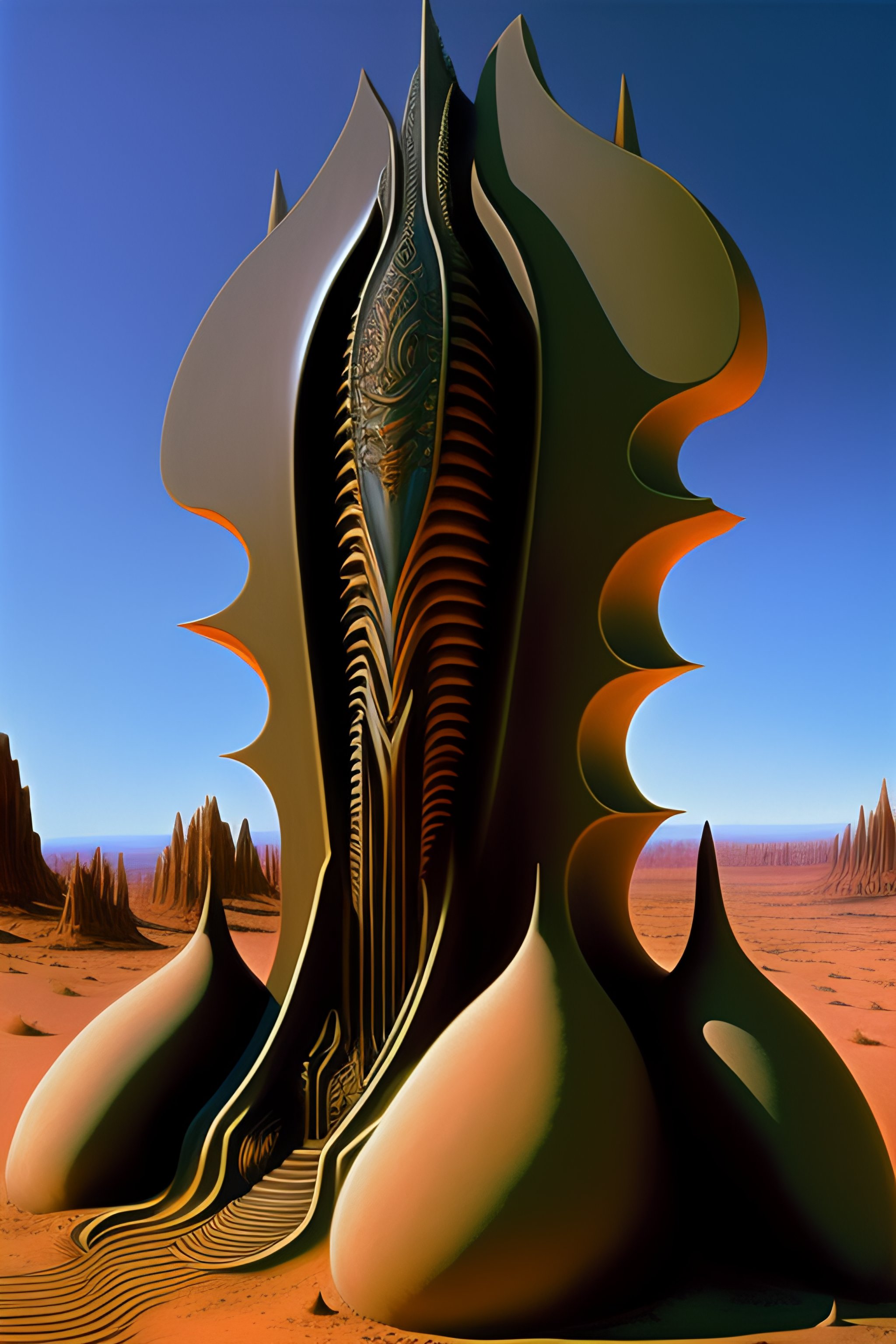 Alien tombstone, artwork by hr giger, by roger dean, by julie bell, biomechanical, 4 k, hyper detailed
