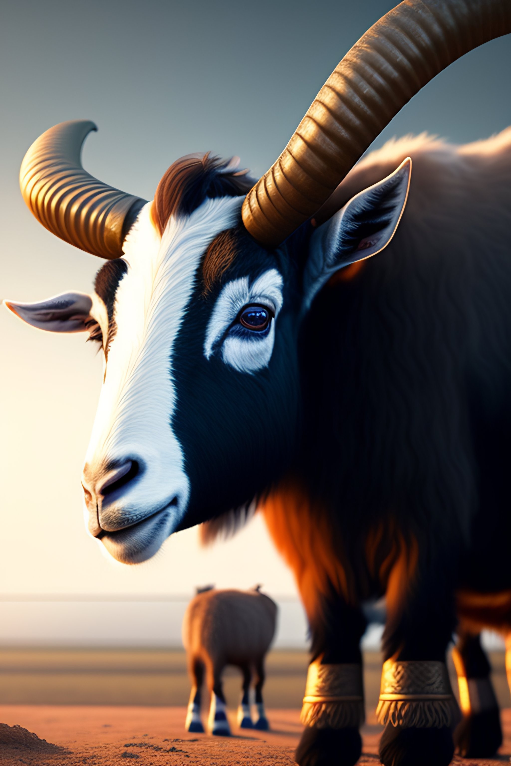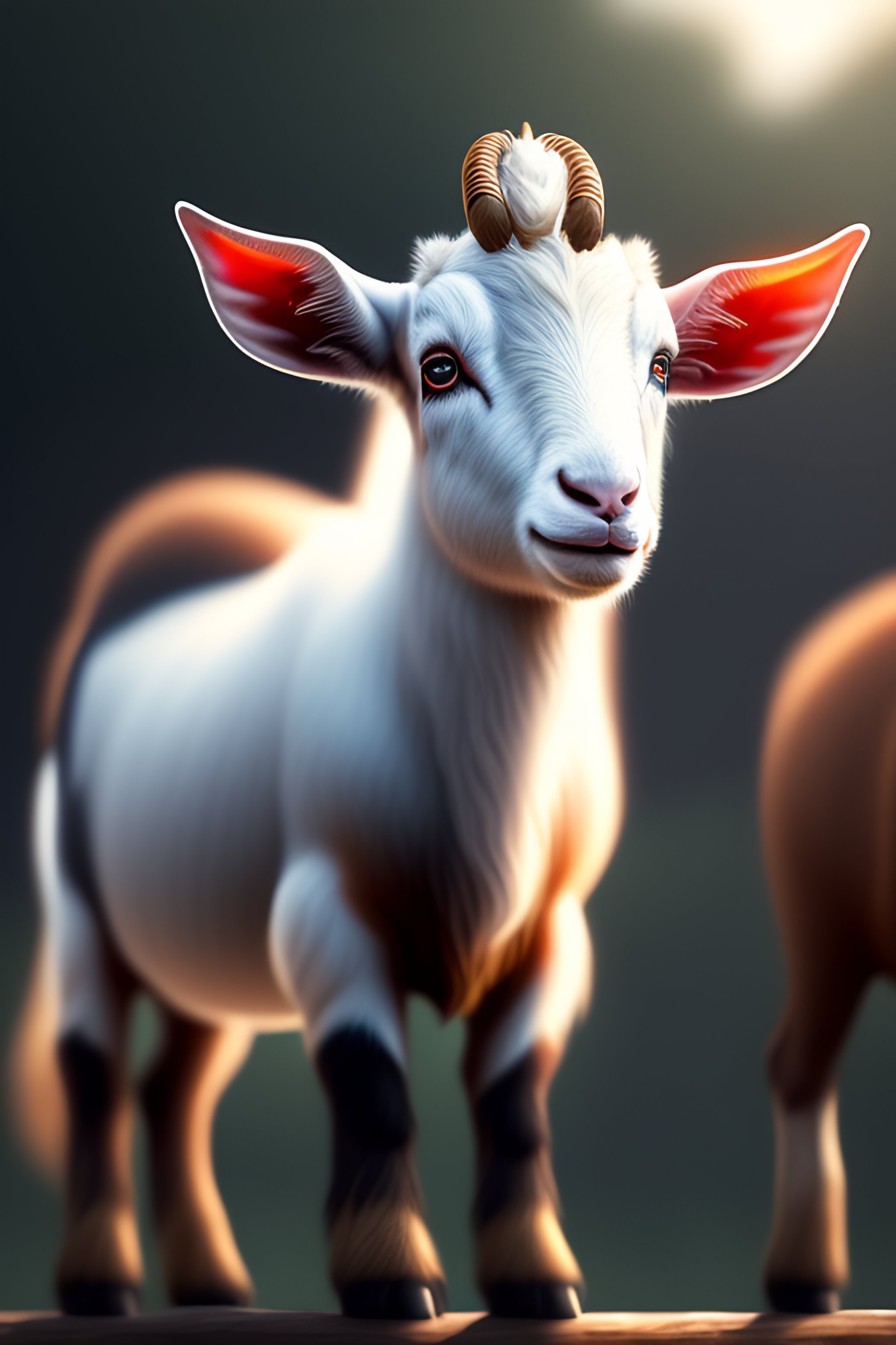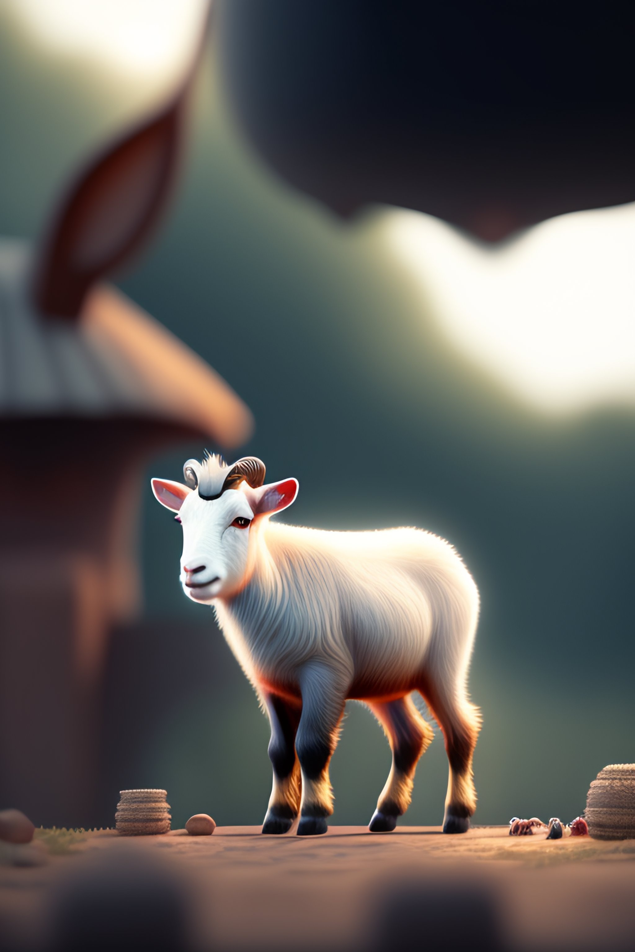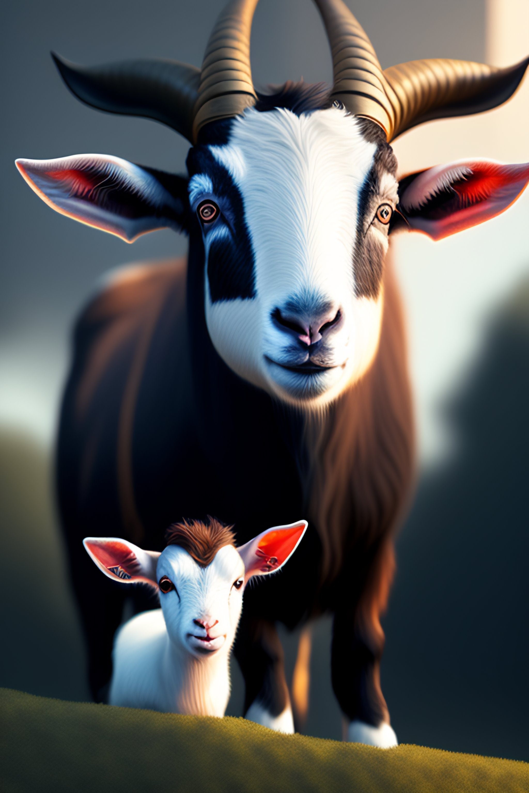 A very cute very little goat facing watching a satanic and scary huge giant goat, hyper detailed, ultra-sharp, octane render, 8 k, illustration, highly detailed, simple, smooth and clean vector, no jagged lines, vector art, smooth, by greg rutkowski
