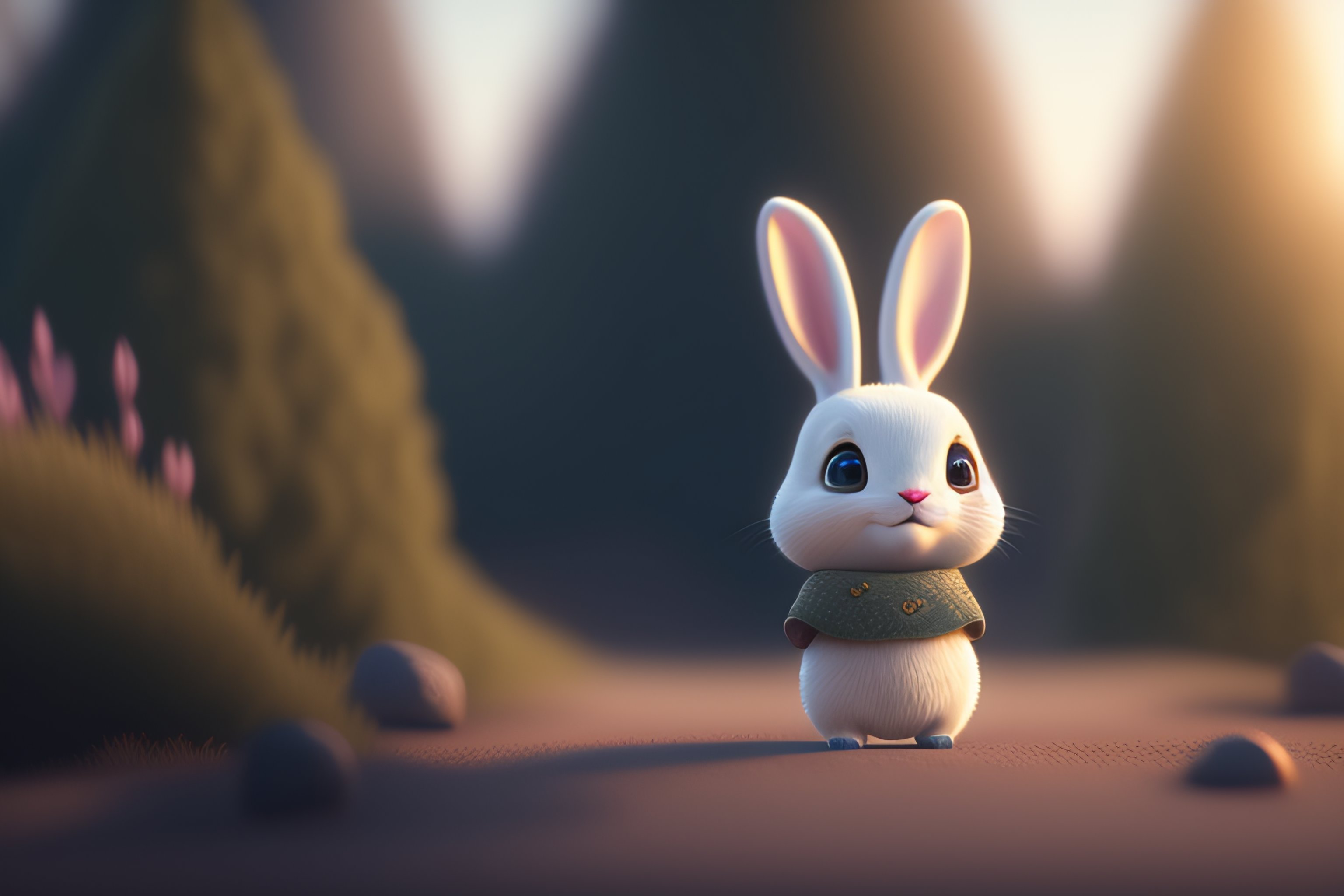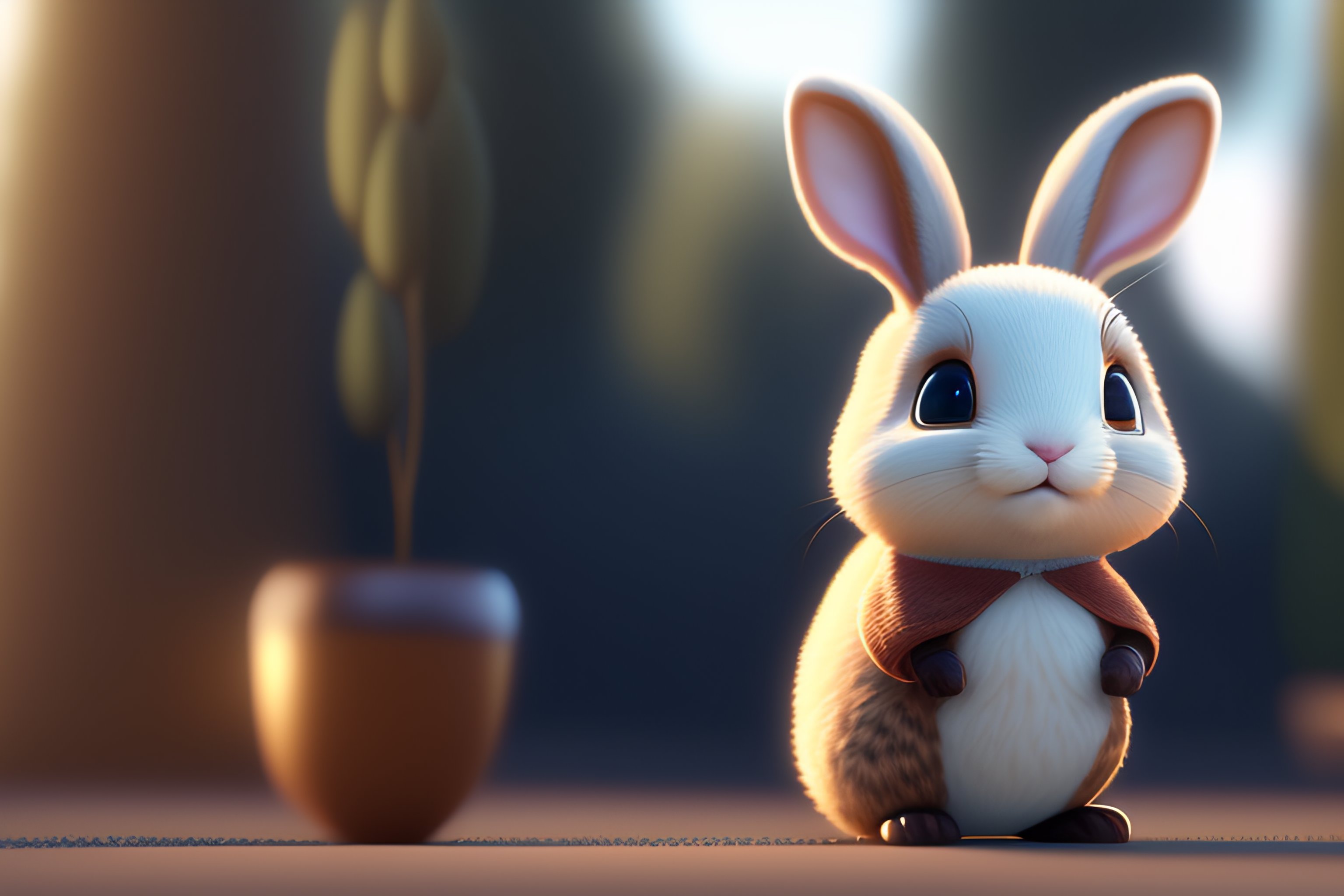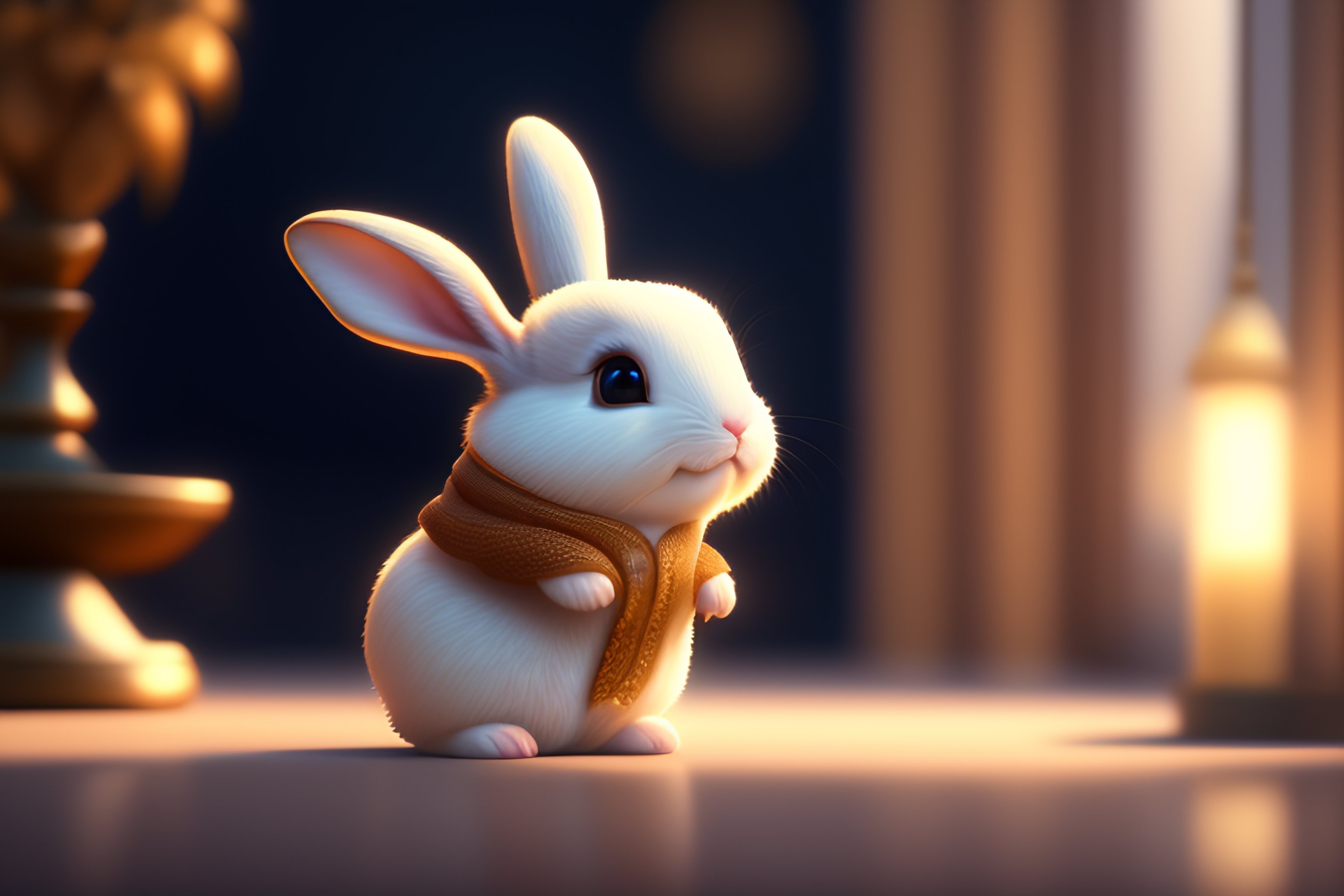 Cute adorable little bunny waving and smiling greeting me, unreal engine, cozy interior lighting, art station, detailed digital painting, cinematic, character design by mark ryden and pixar and hayao miyazaki, unreal 5, daz, hyper realistic, octane render