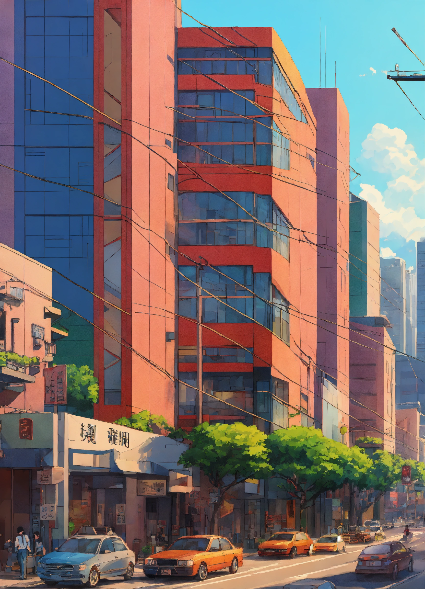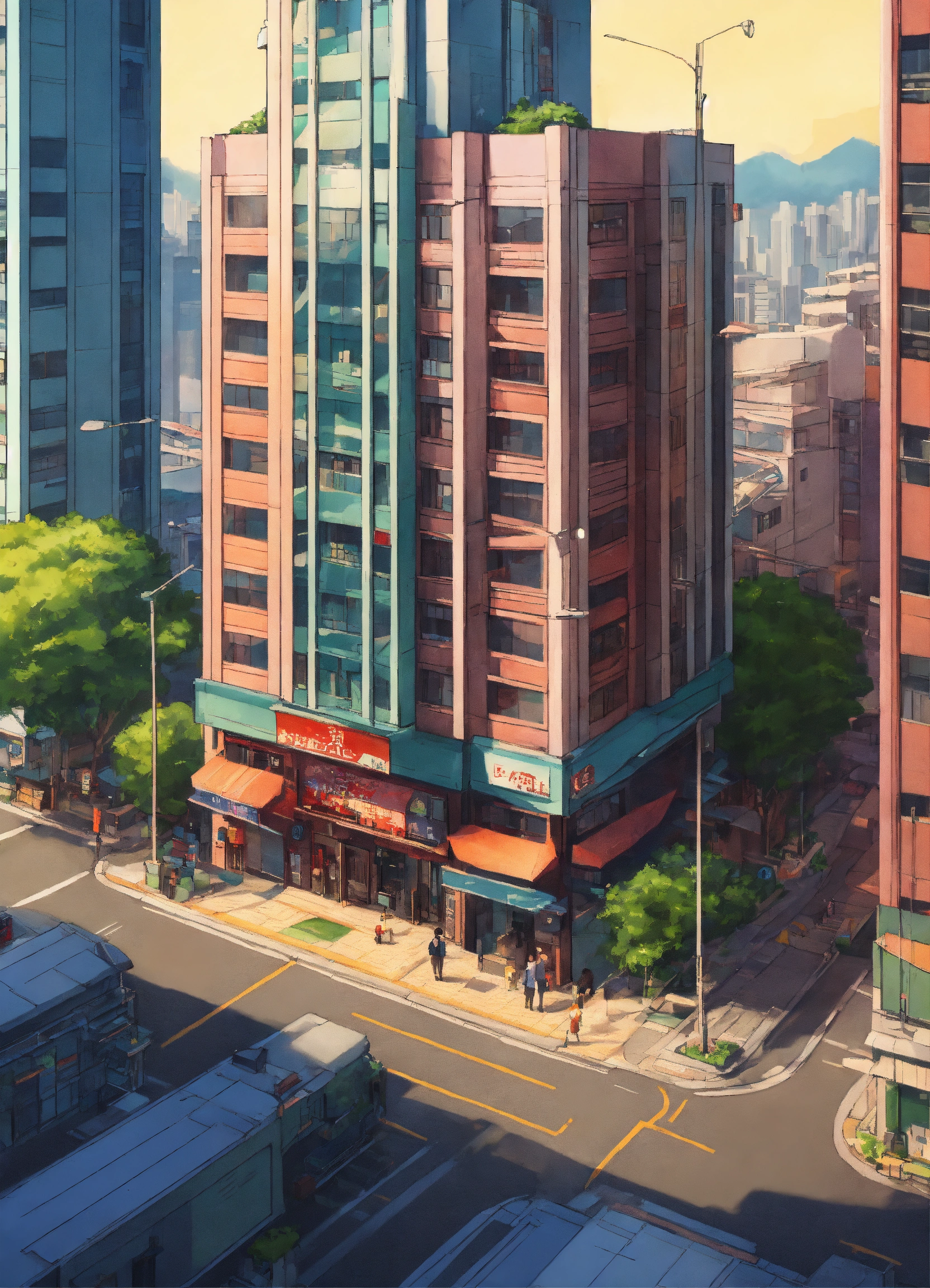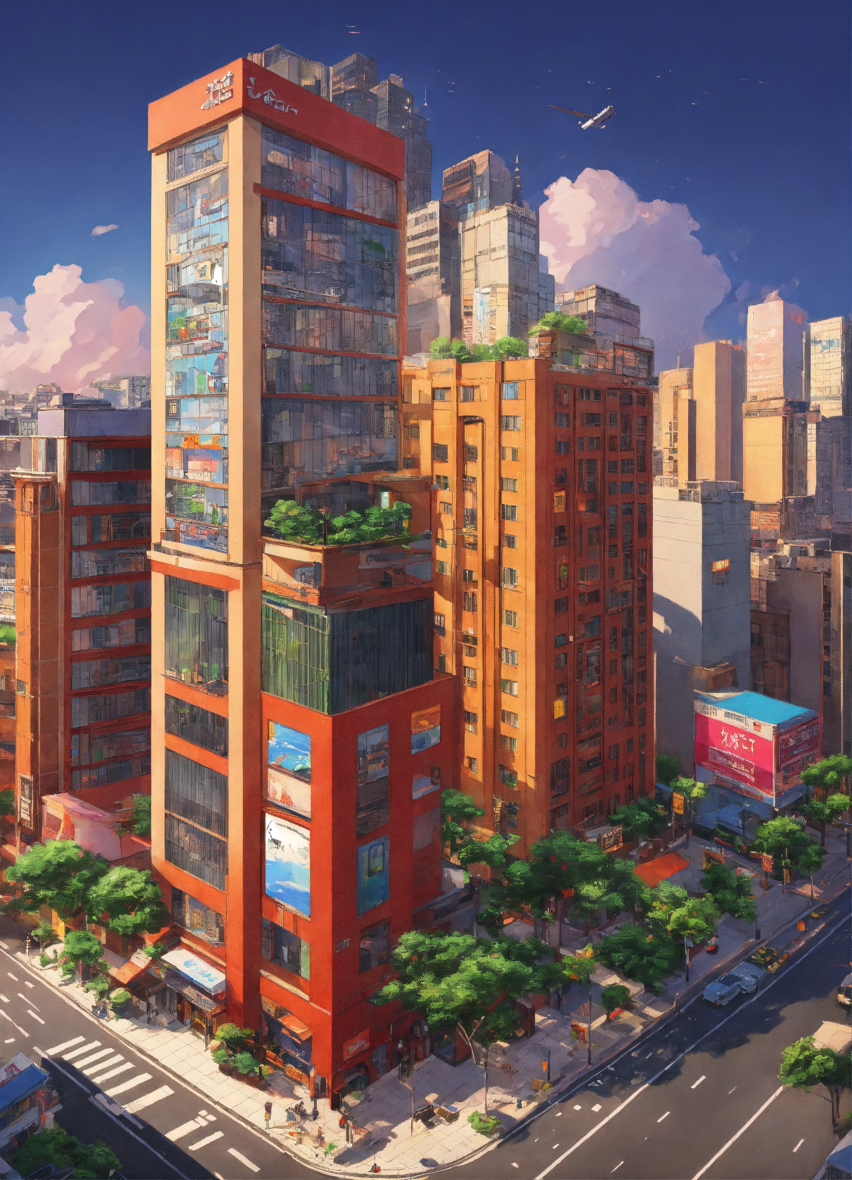 Superrealist style, bold hues, isometric view, photorealistic, like a logo, office buildings in taipei cbd, ghibli anime style