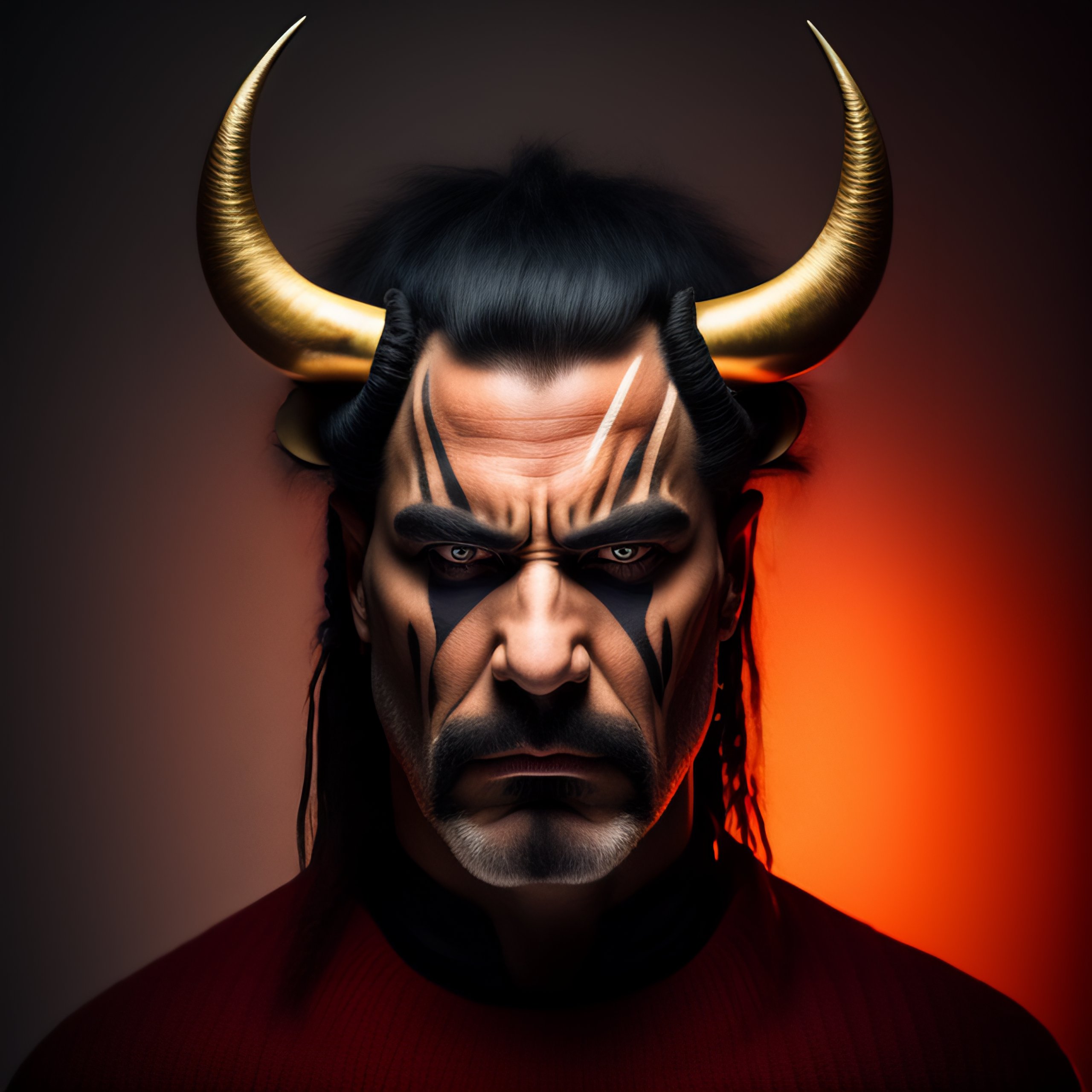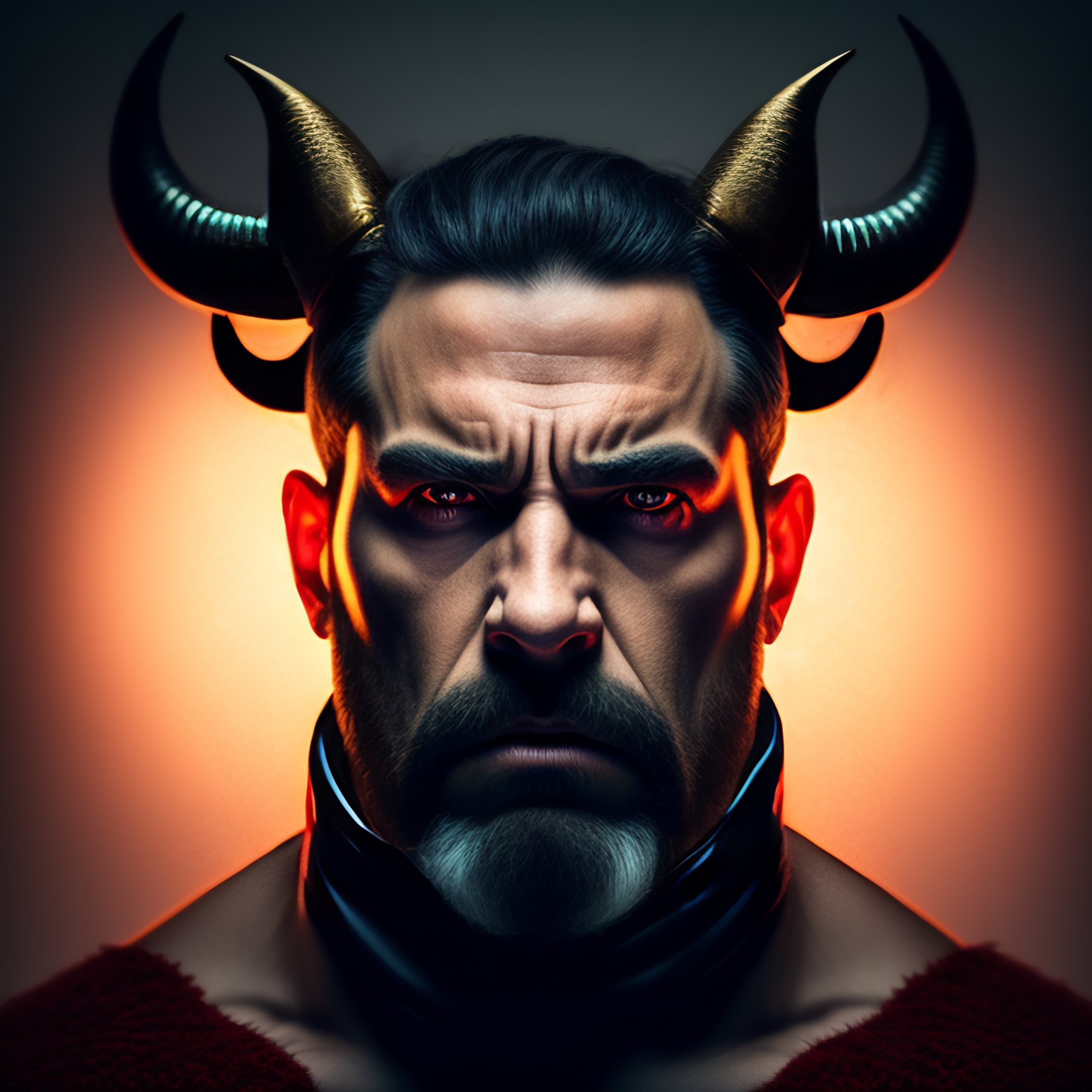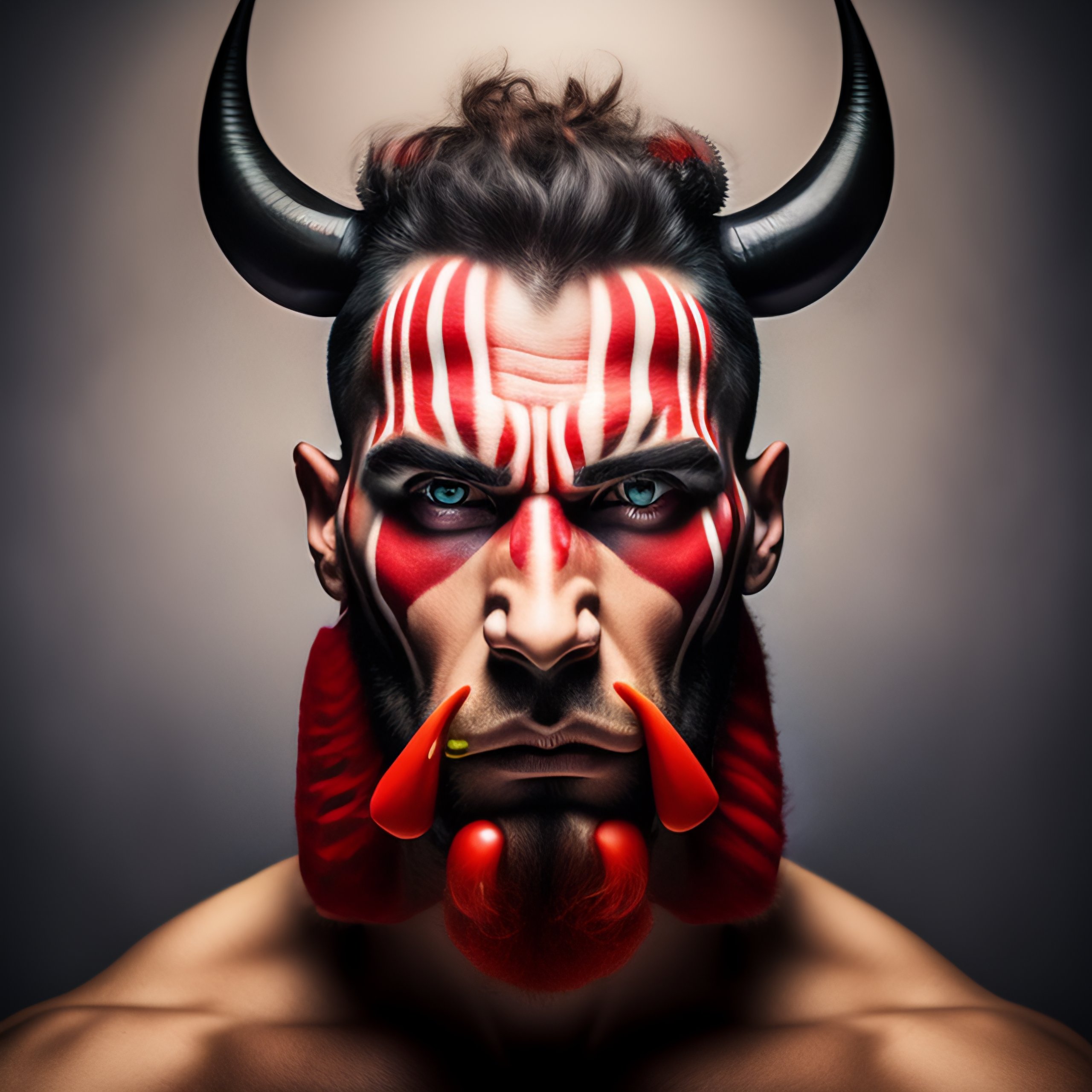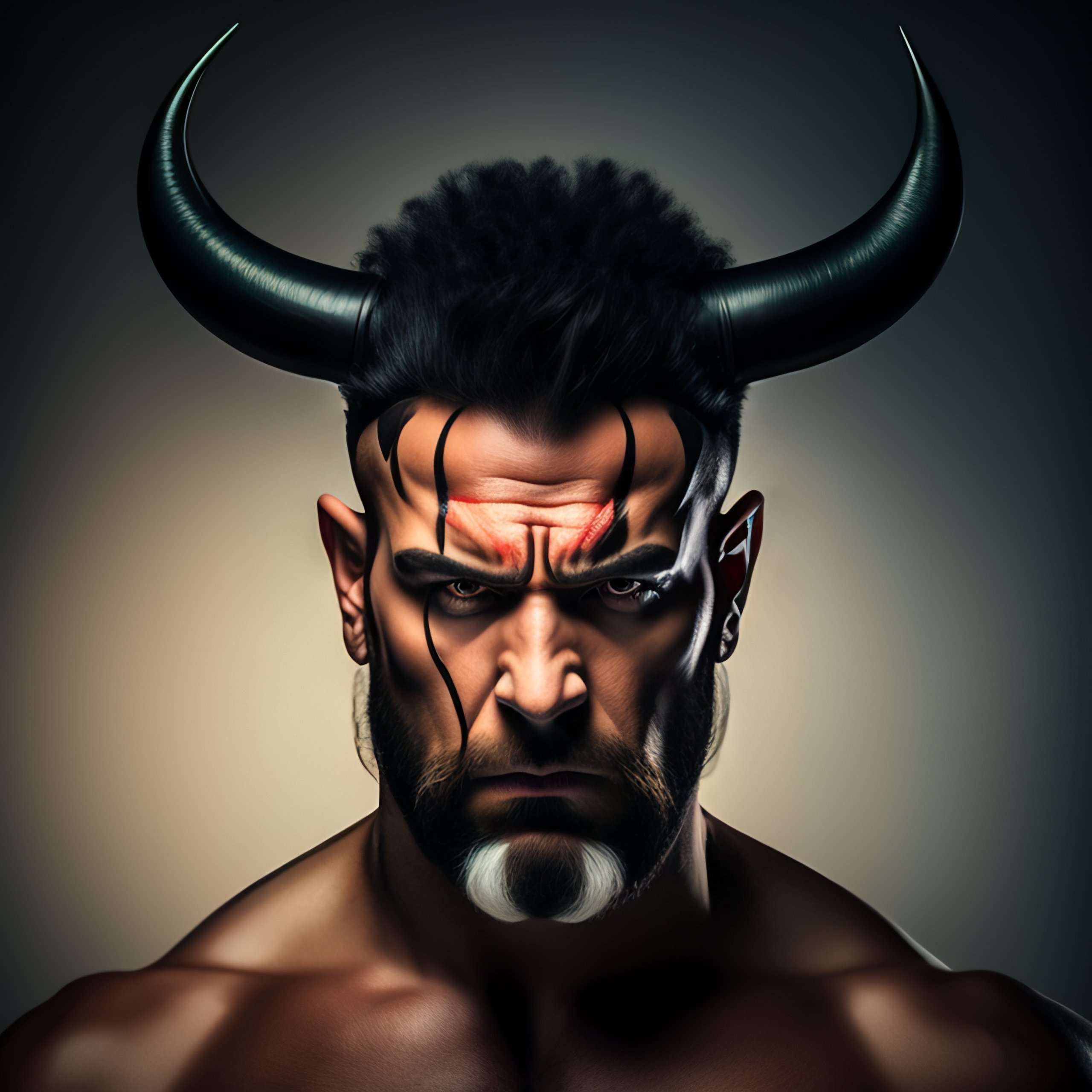 A man with horns growing from his head. red eyes and sharp teeth. there is ugliness in beauty, but there is also beauty in ugliness. surrealism, portrait photography, studio lighting, cinematic, chilling 4 k