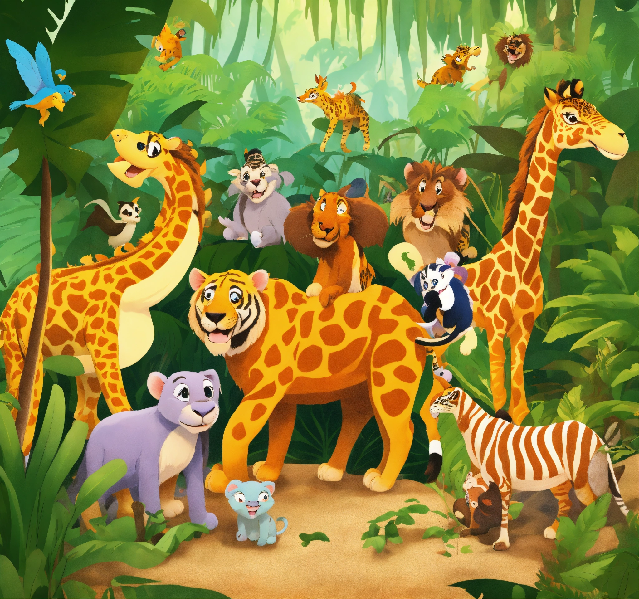 "the jungle jumble jamboree" once upon a time, in a deep and mysterious jungle, there lived a bunch of animals who loved to have fun. they called themselves "the jungle jumble jamboree crew, " and they were the goofiest animals you could ever imagine.