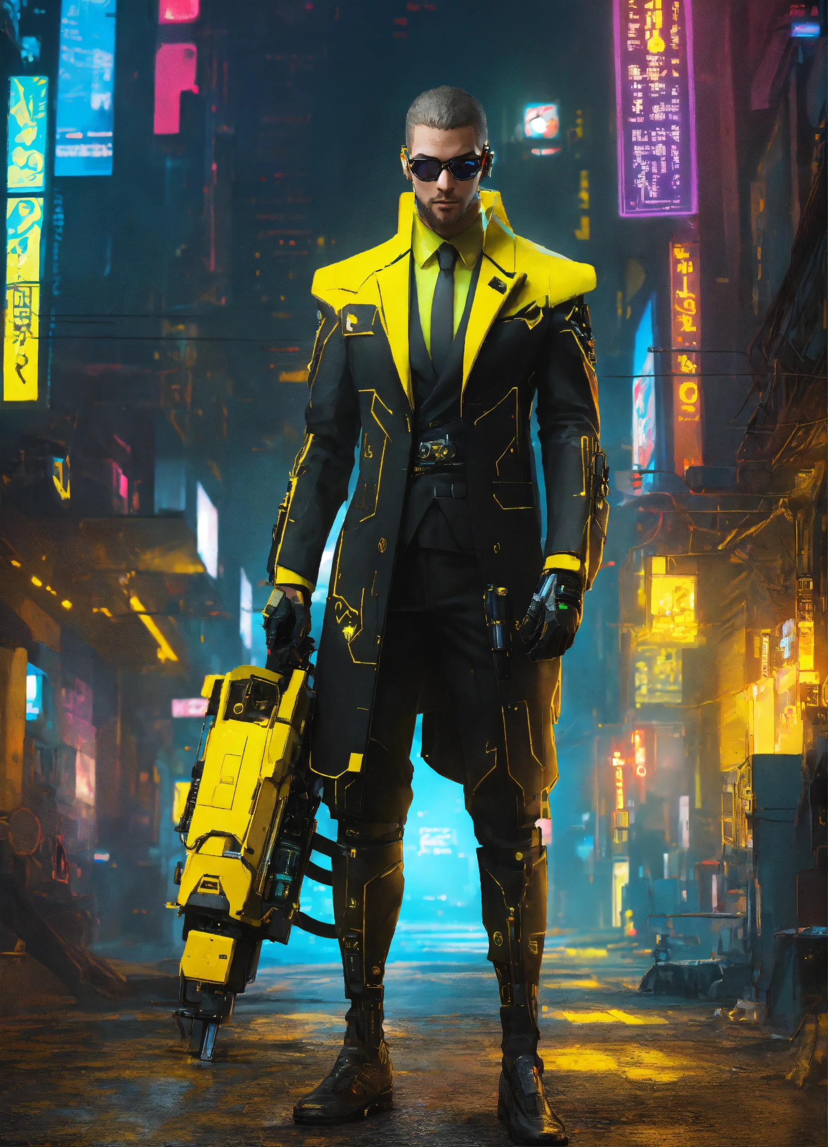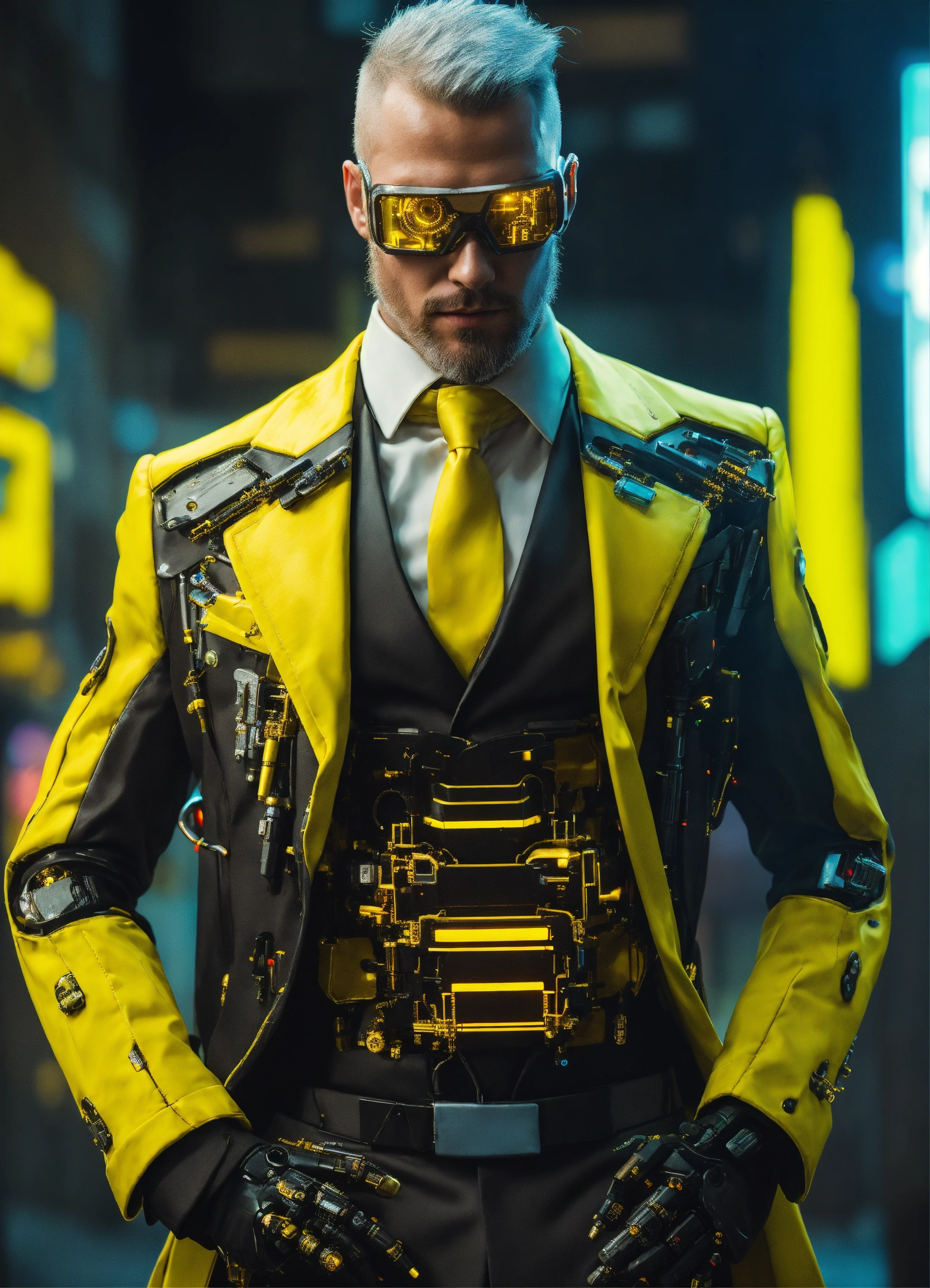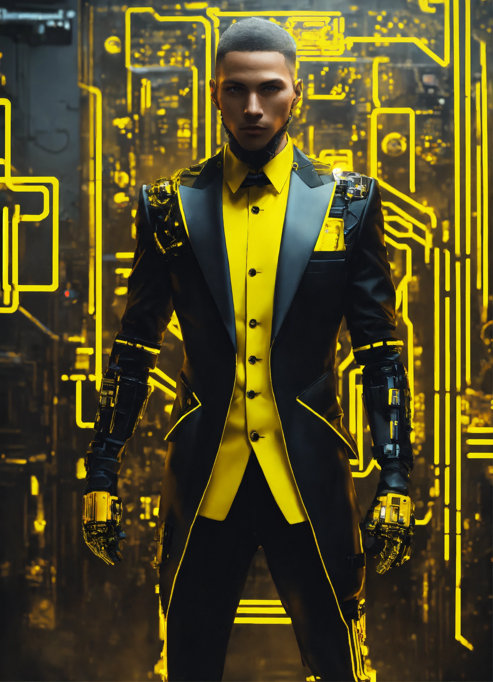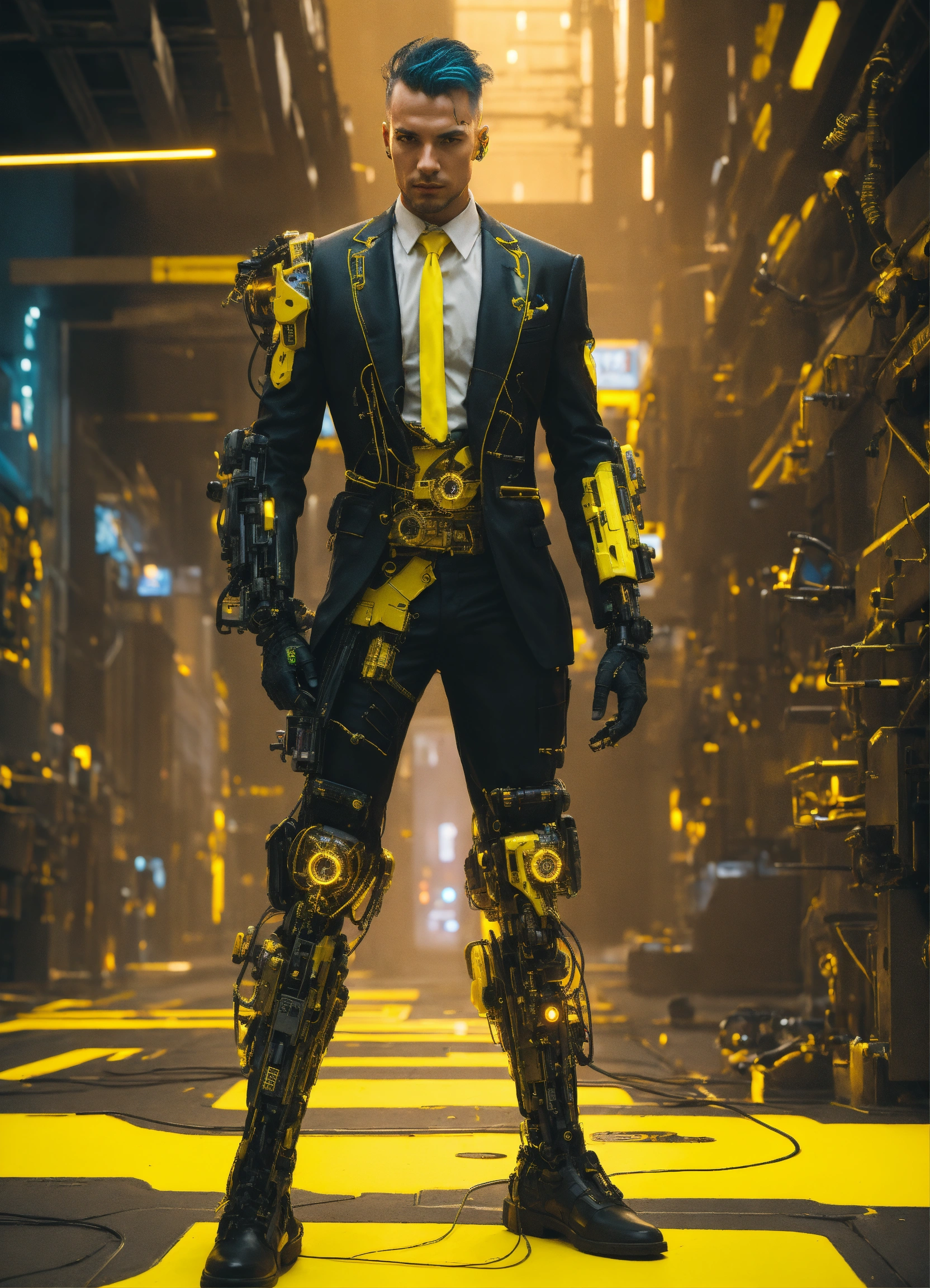 Cyberpunk cyborg with yellow cybernetic parts