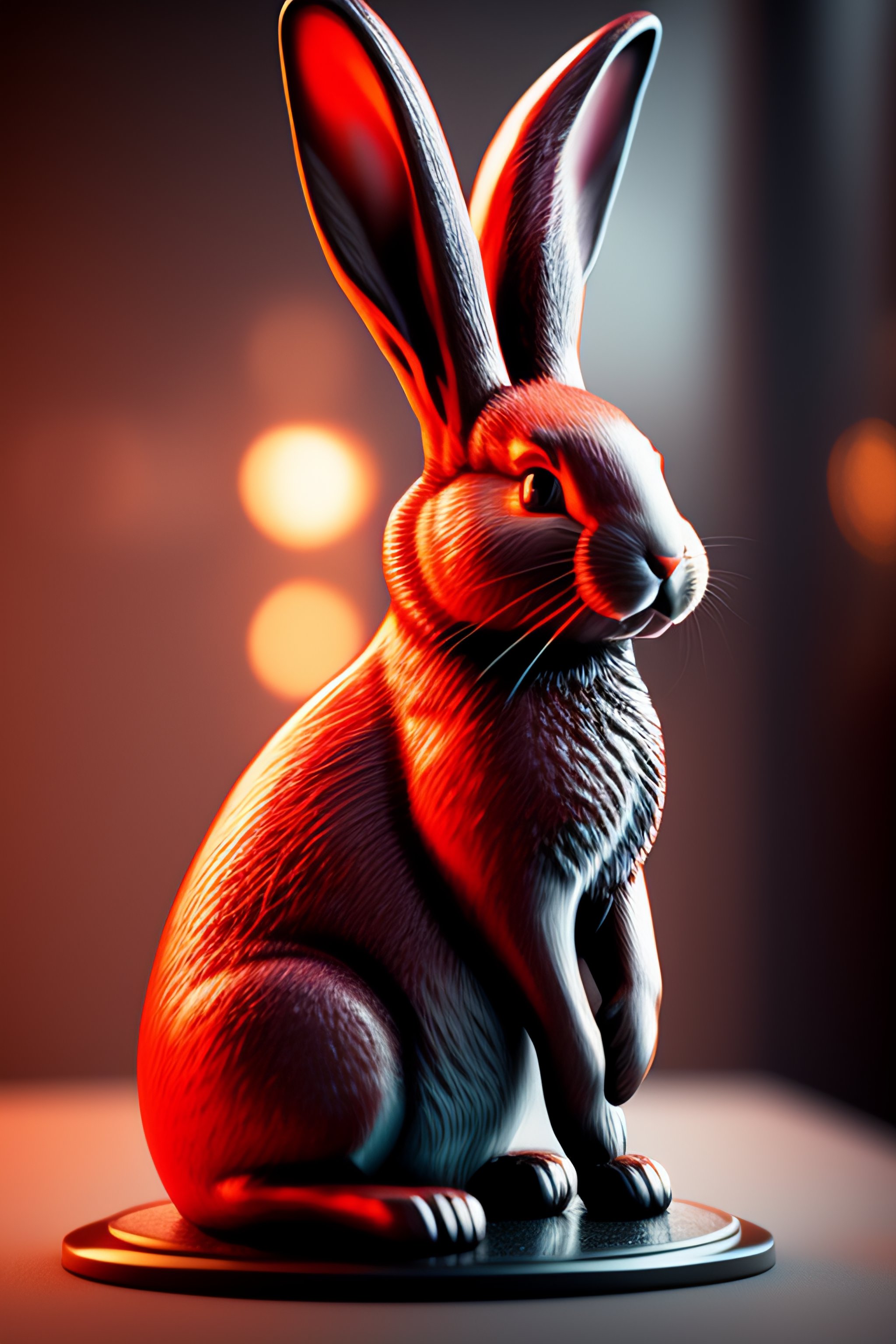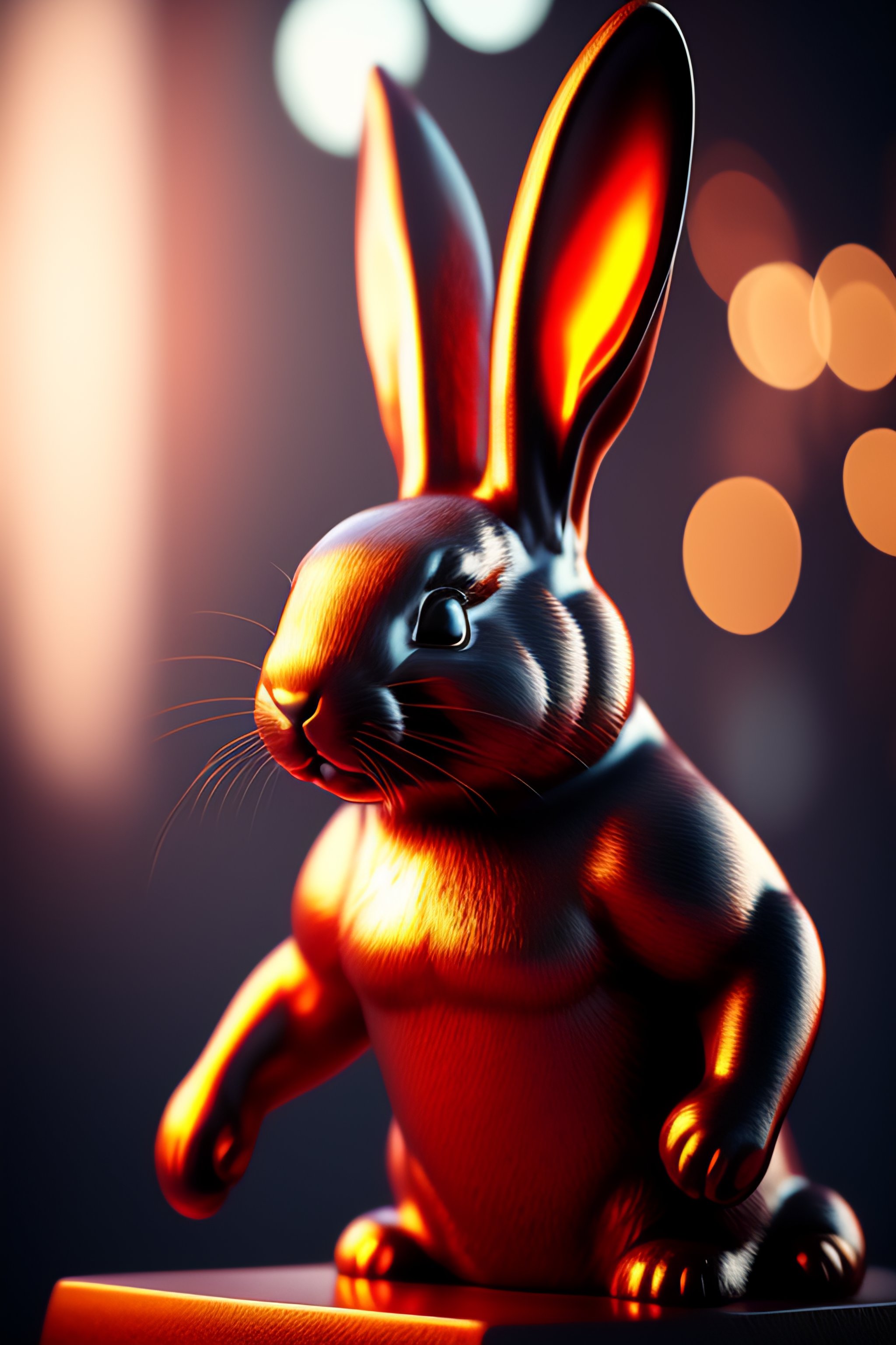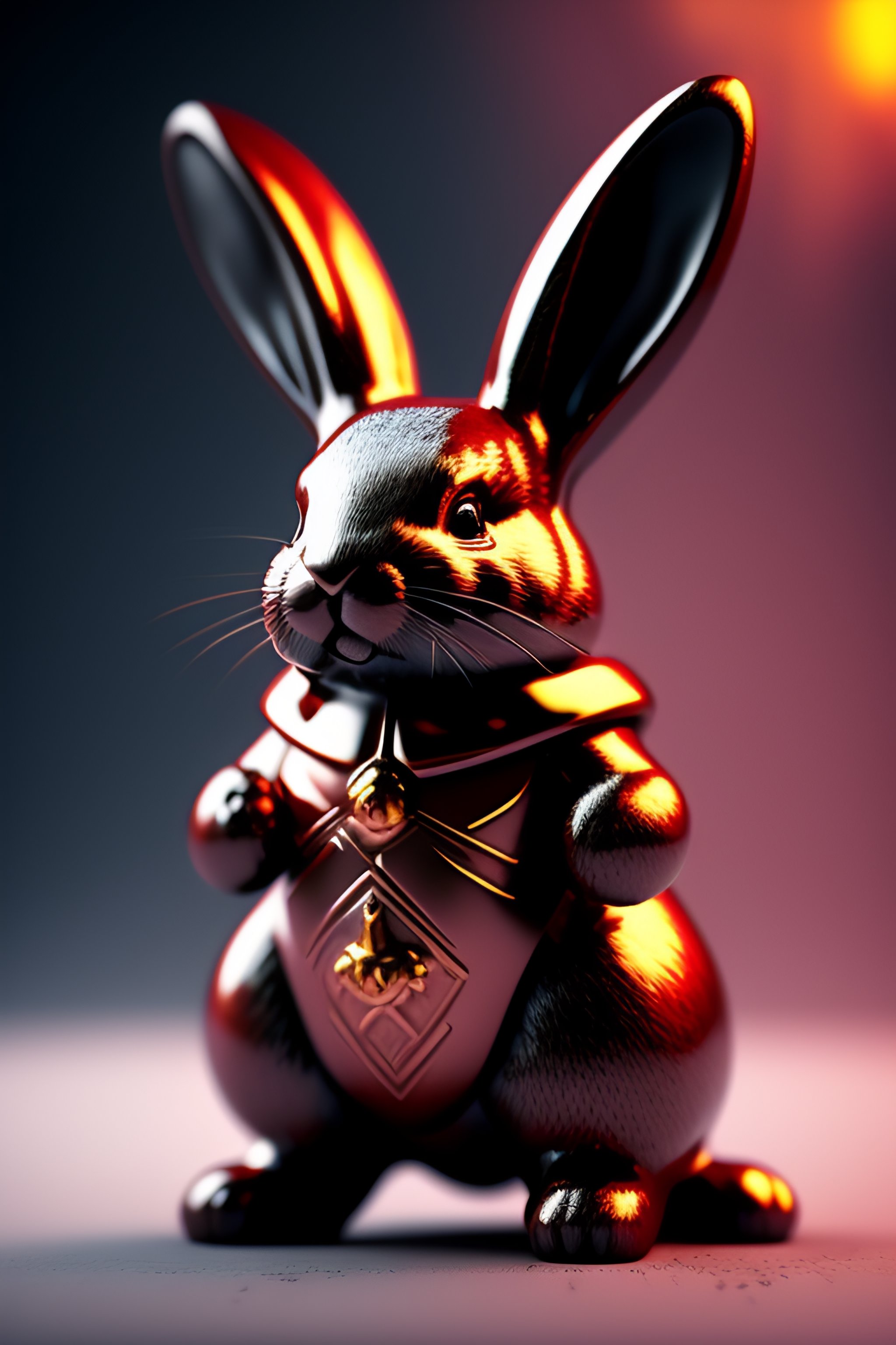 Film still of a metal sculpture of killer angry vicious bloody bunny made in a marvel movie, science fiction industrial hard science concept art, 8k render octane high definition cgsociety, photorealistic, unreal engine 5