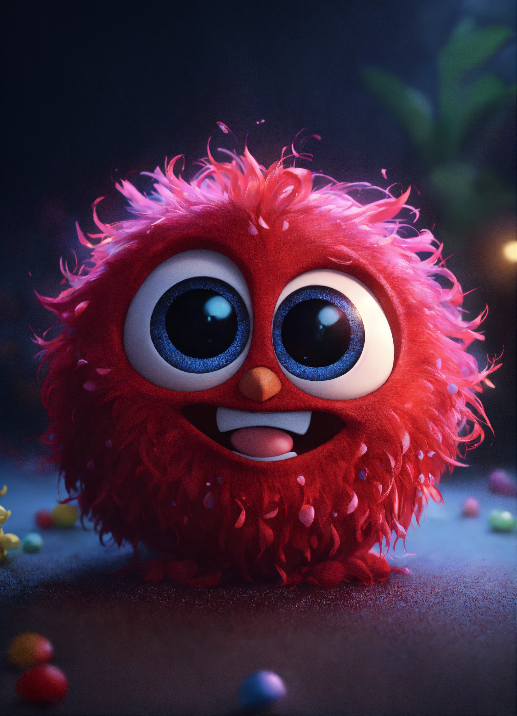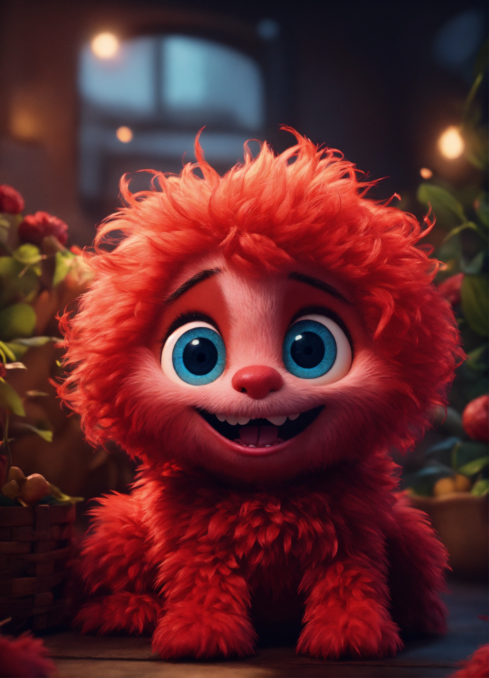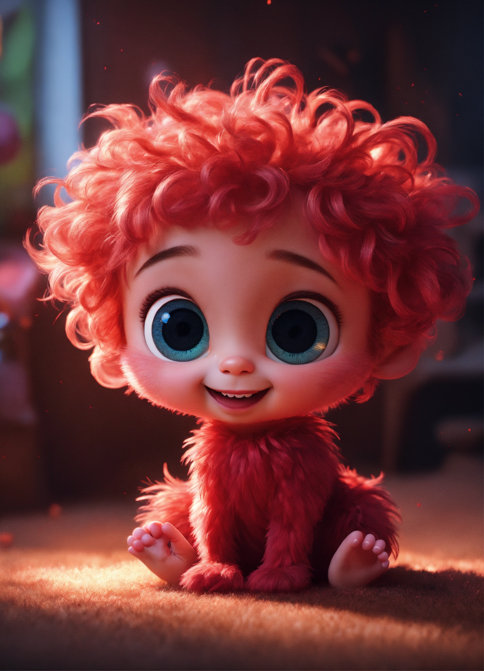 Super cute, baby, pixar, portrait of carnage, dark background, big bright eyes, fluffy, smile, delicate and fine, fairy tales, incredibly high detailed, pixar style, bright color palette, natural light, simple background with pure color, octane render, trending on artstation, gorgeous, ultra wide angle, 8k, hd, realistic