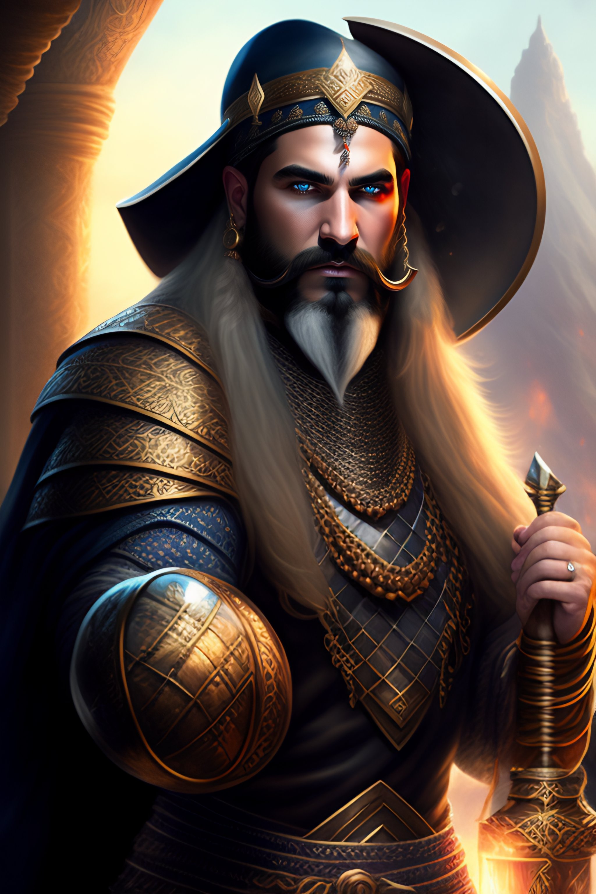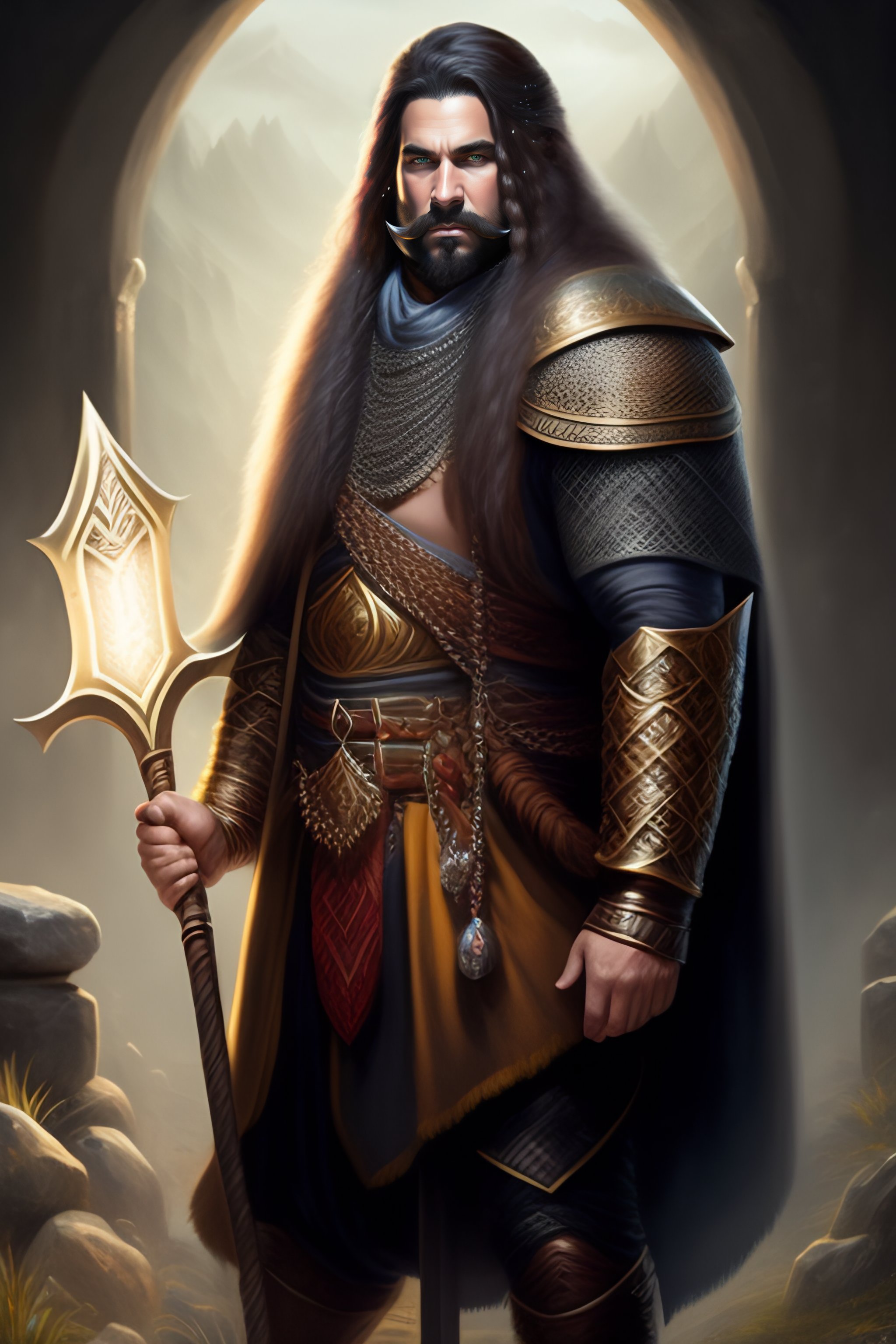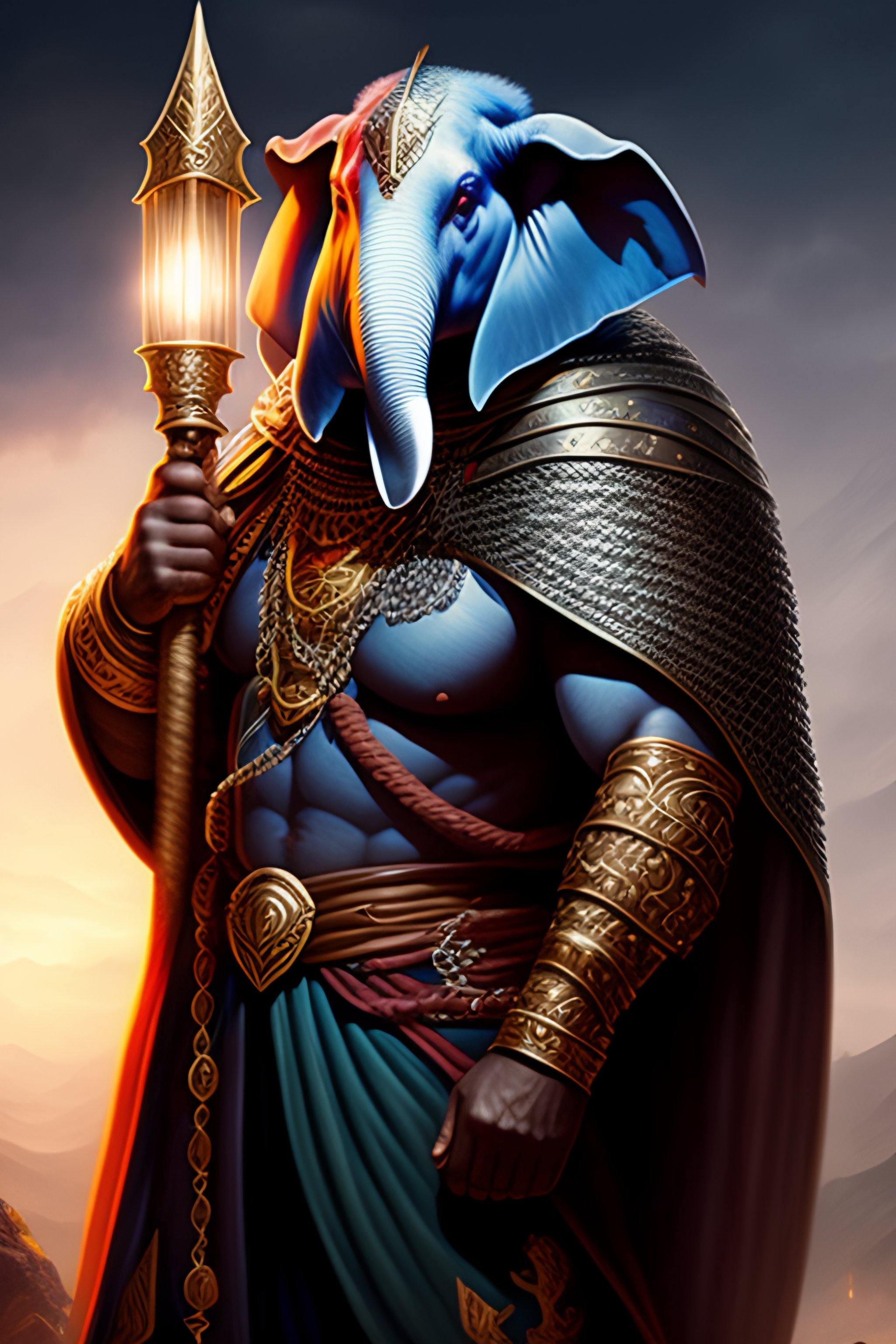Portrait of a loxodon cleric wearing chainmail in the underdark holding a hammer