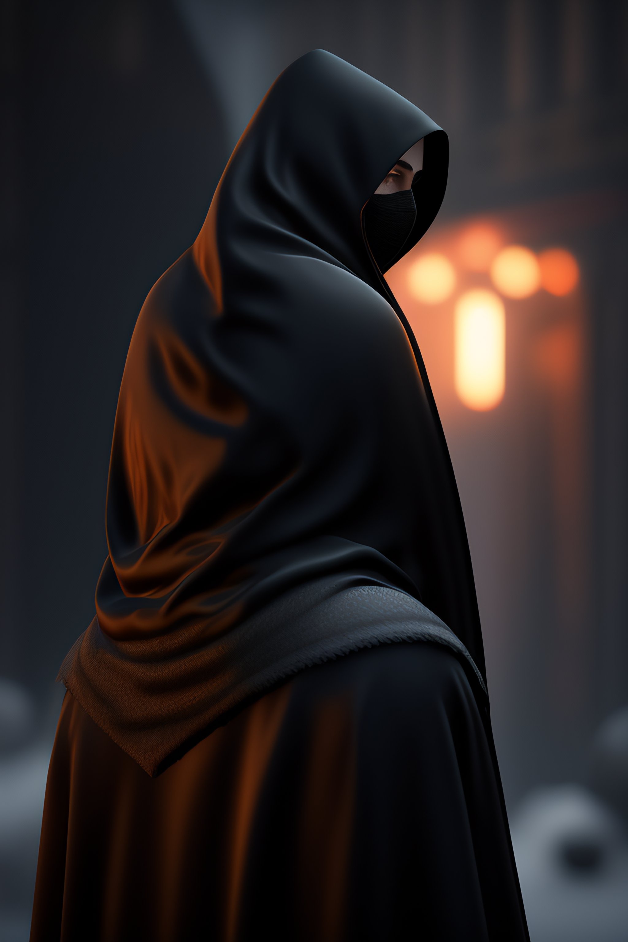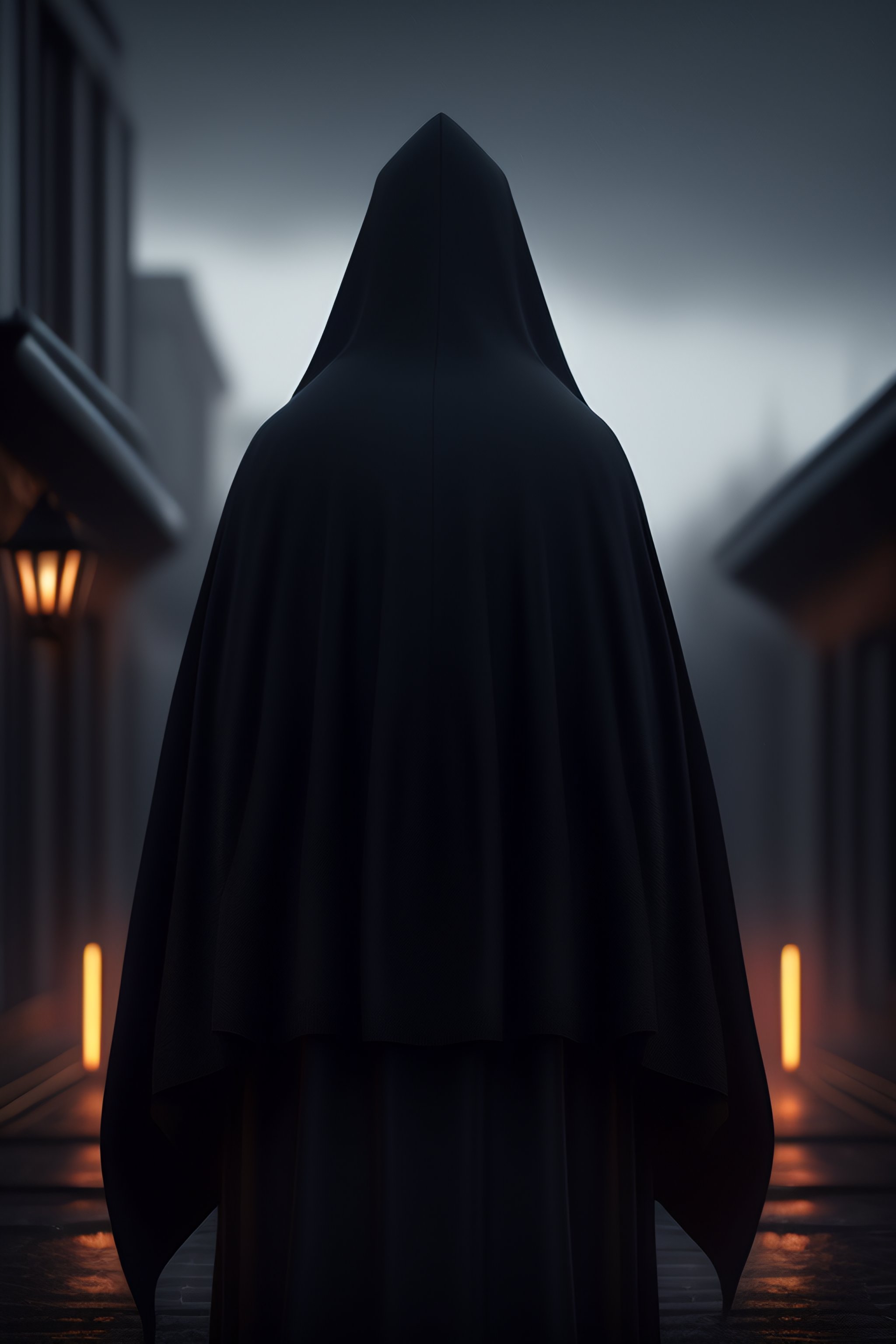 Pixel art, black hooded figure, dark, creepy, ominous, hyper-realistic, 4k, 8k, unreal engine, high resolution