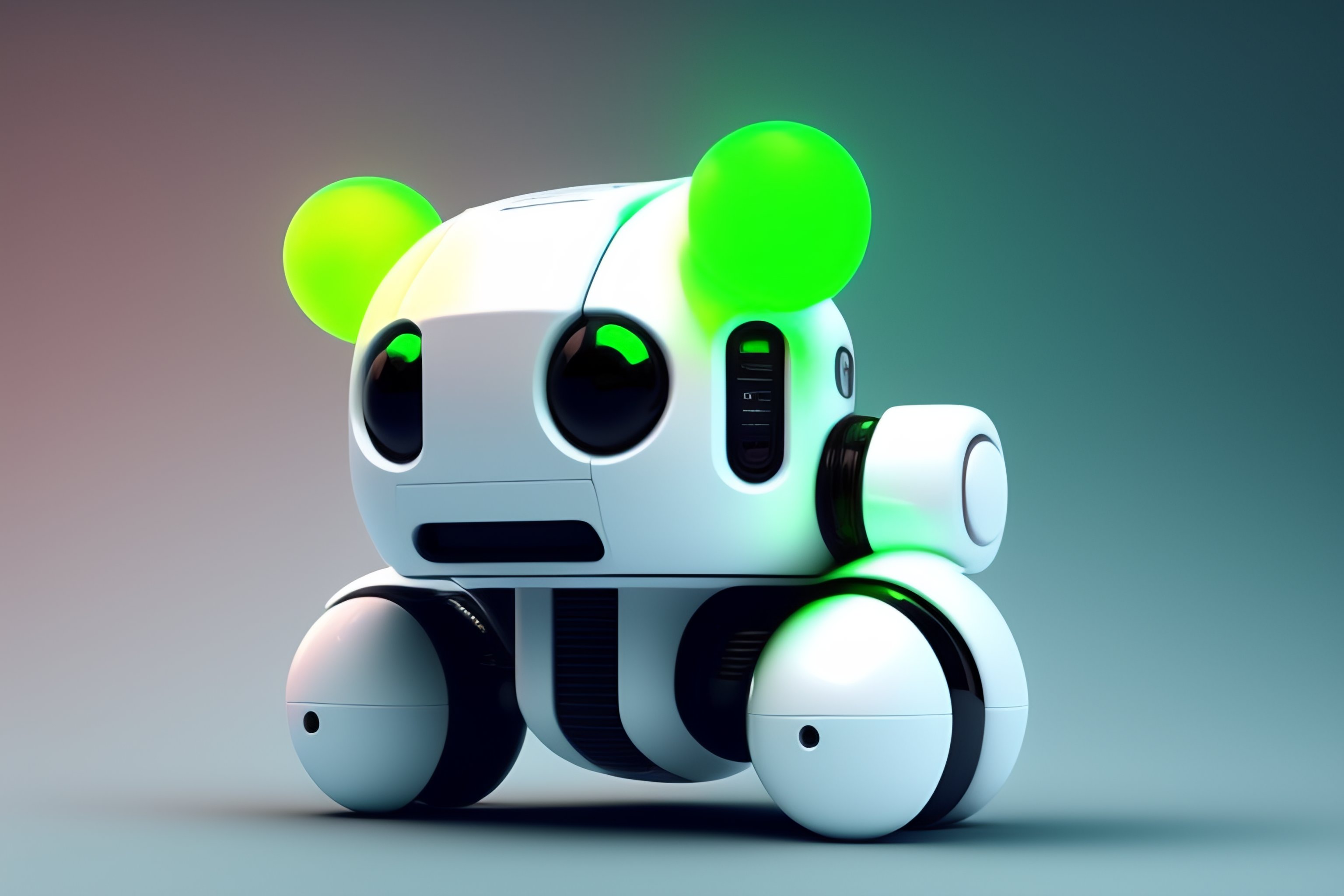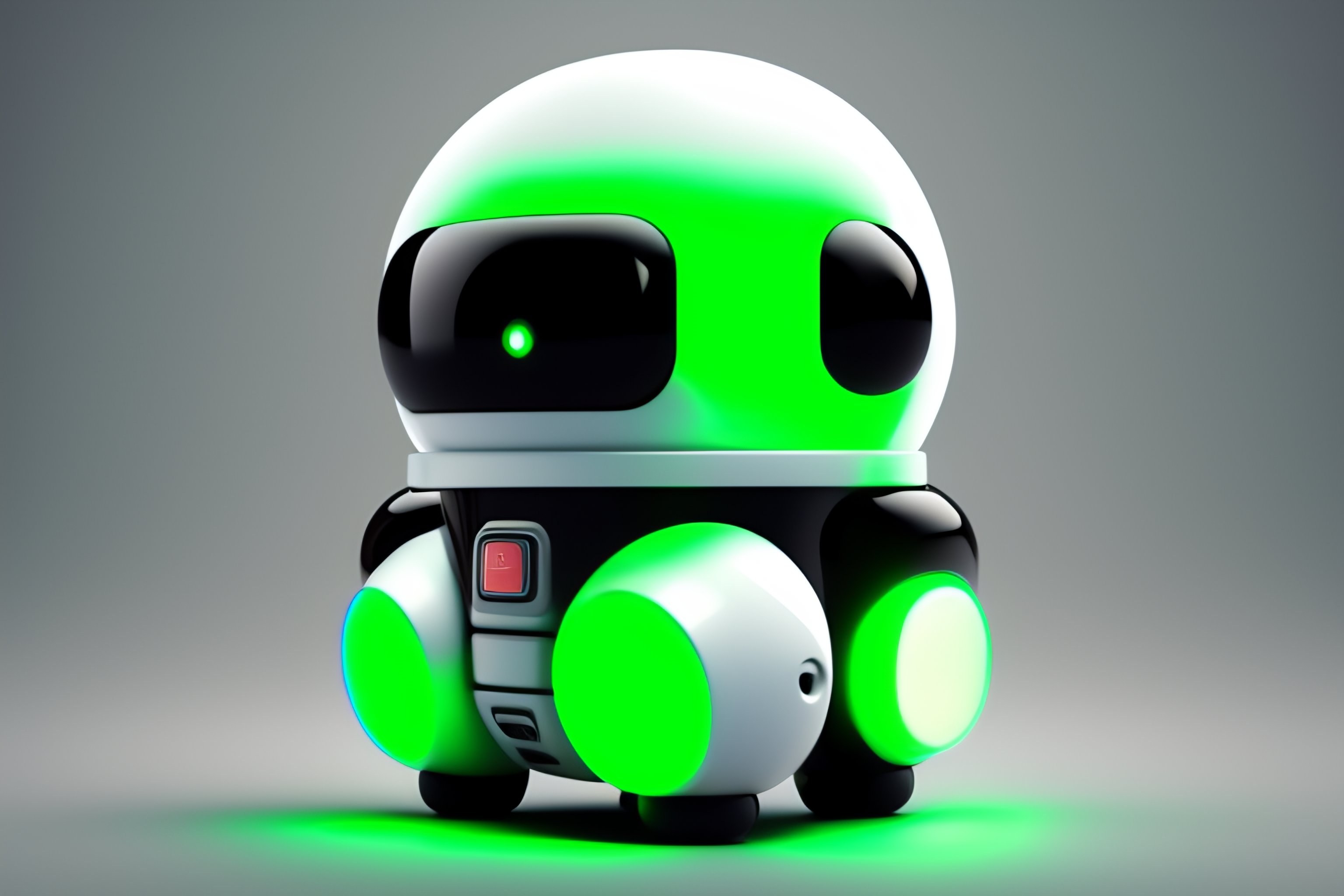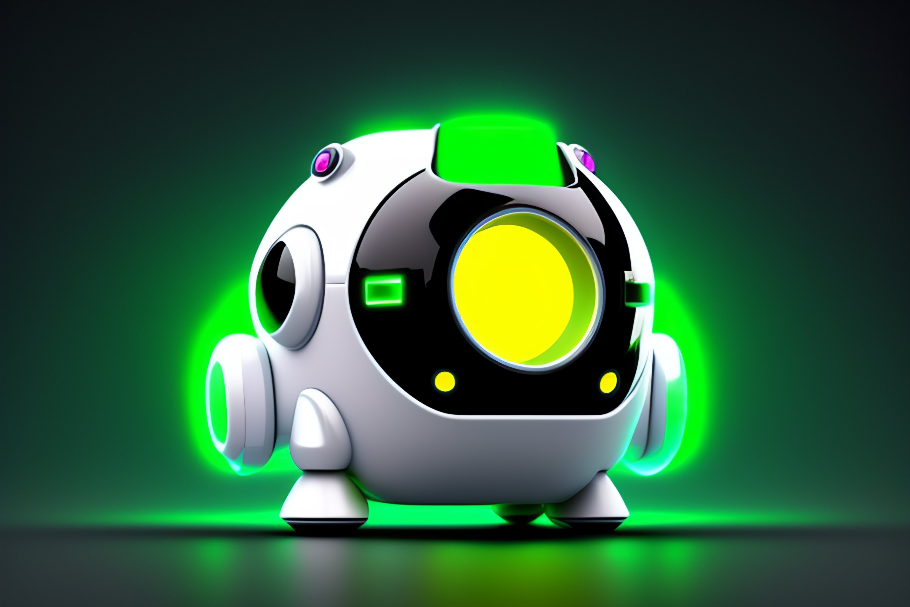 White black metallic futuristic biotech cute little space invader robot character design shapes and a green led display for his expressions