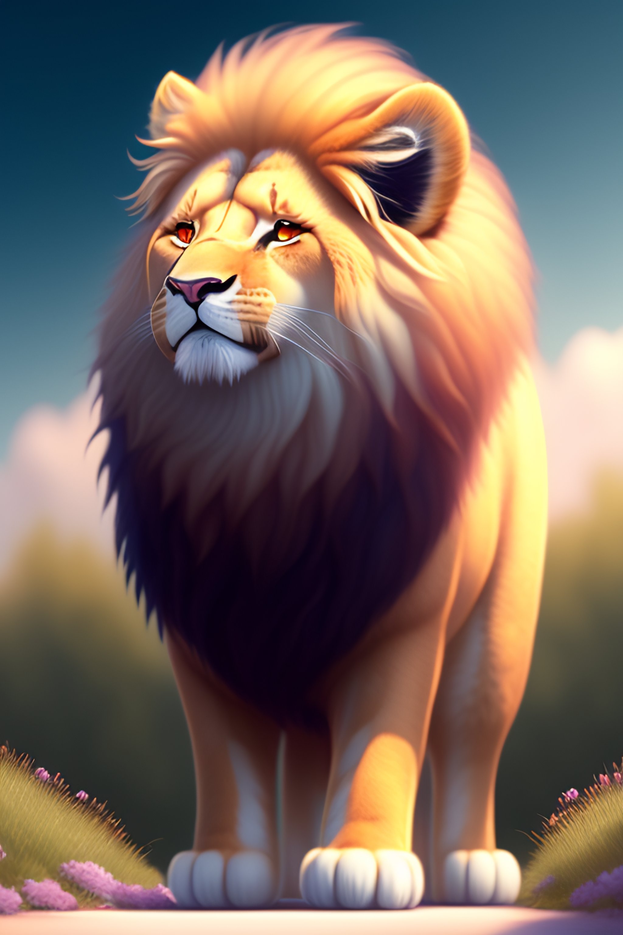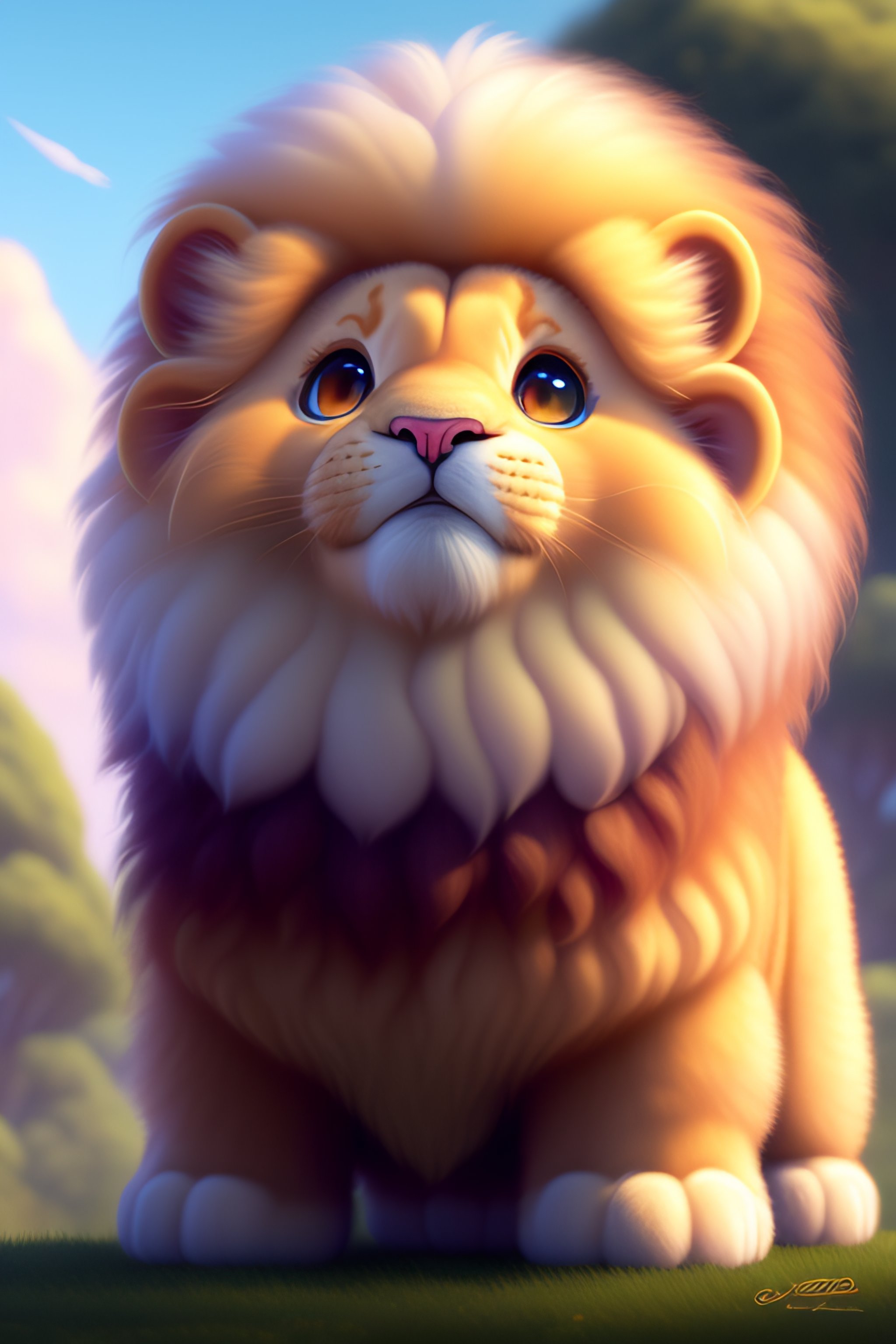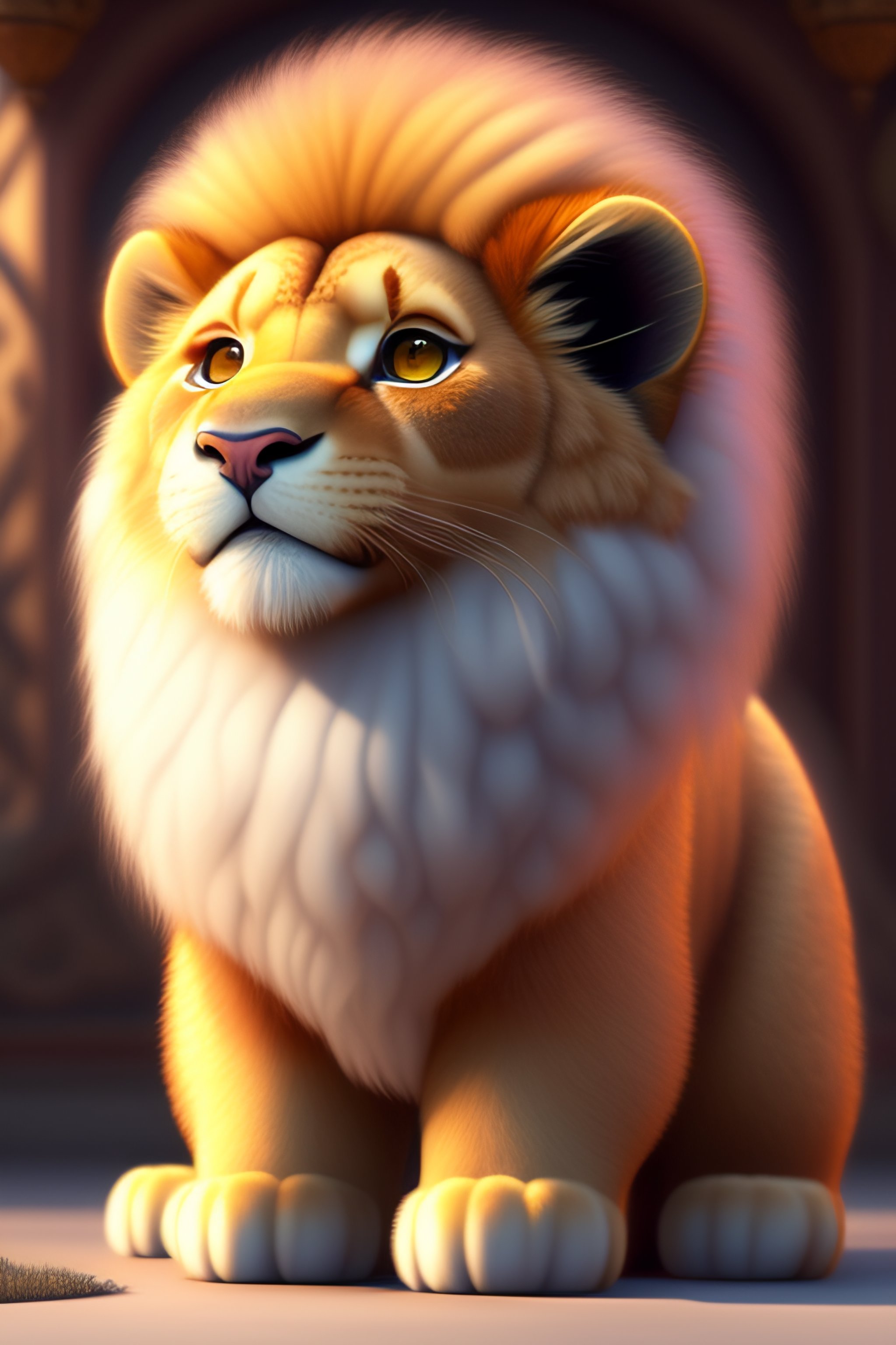 Cutie fluffy lion, digital art, 3 d, octave render, masterpiece, mega detailed, pixar, disney, vivid illustration, cartoon, fantasy, by george stubbs, artgerm, in the style of ghibli kazuo oga, pastel fur
