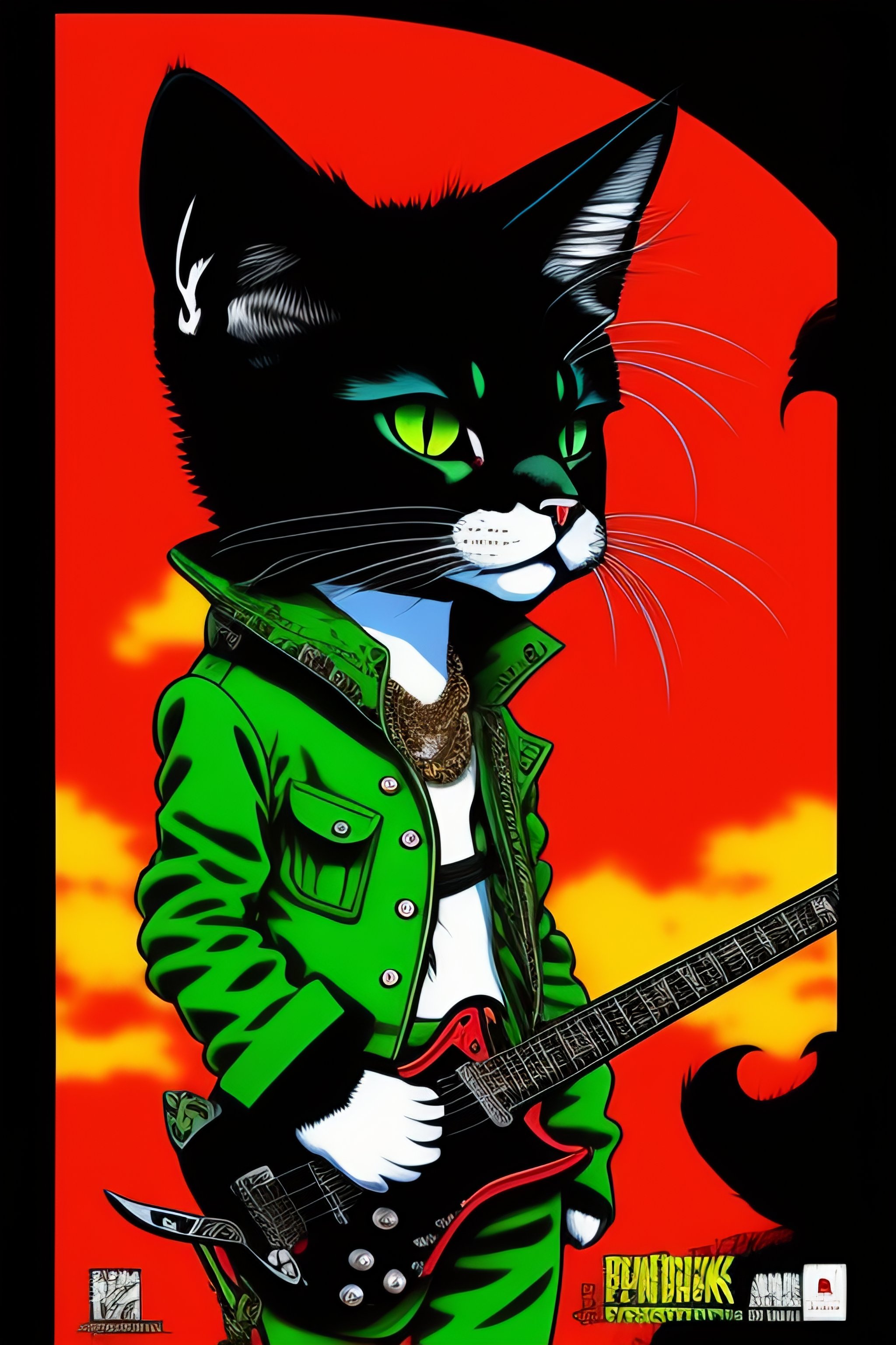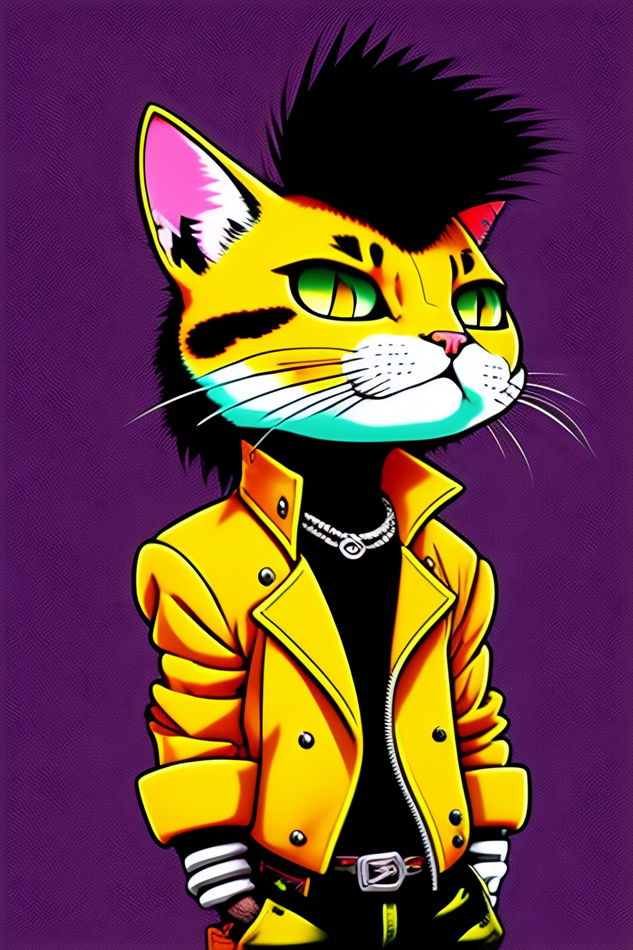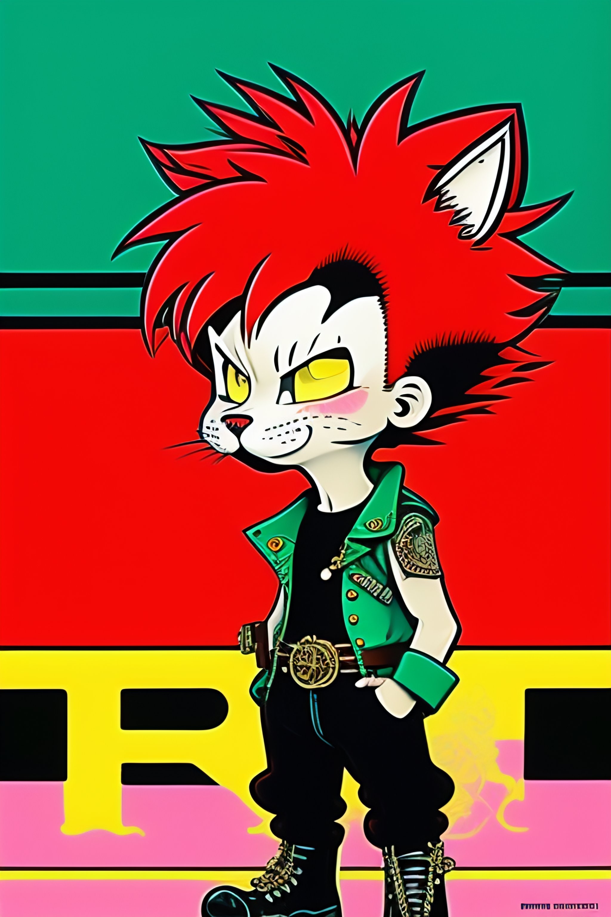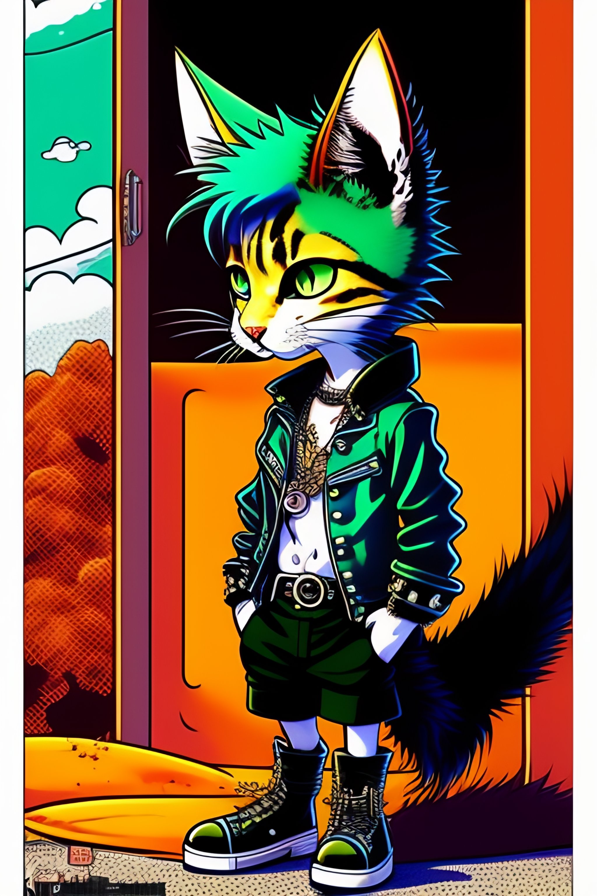 A punk cat character, bad attitude, illustrated by hergé, style of comics, pen and ink. vintage 90's anime style;