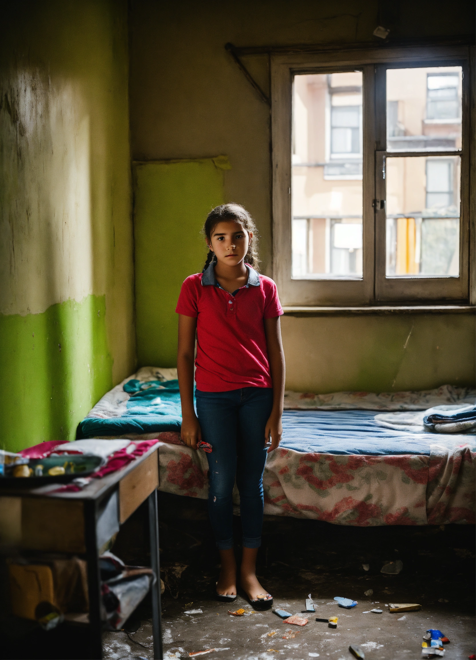 13 year old girl in a dismal appartment