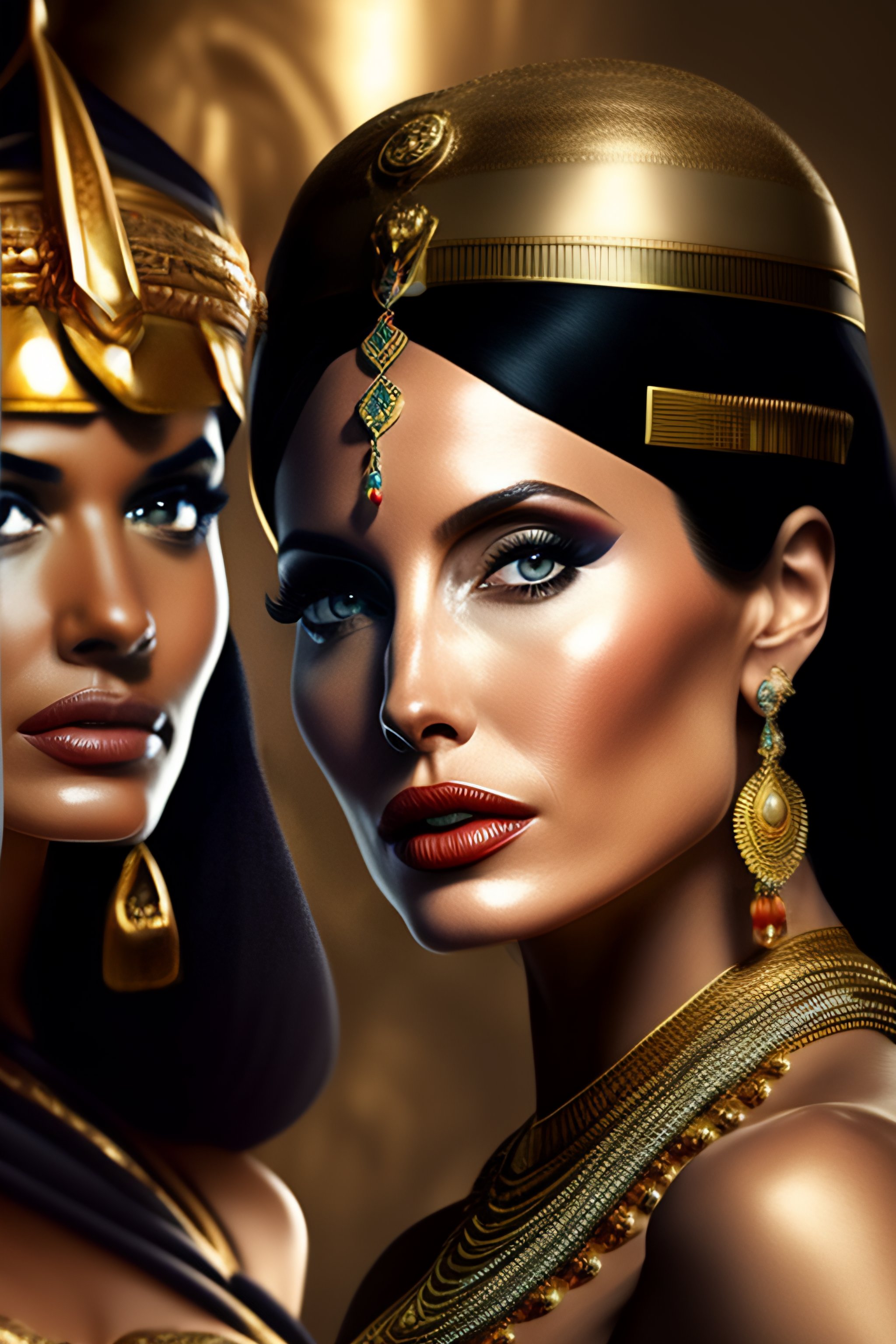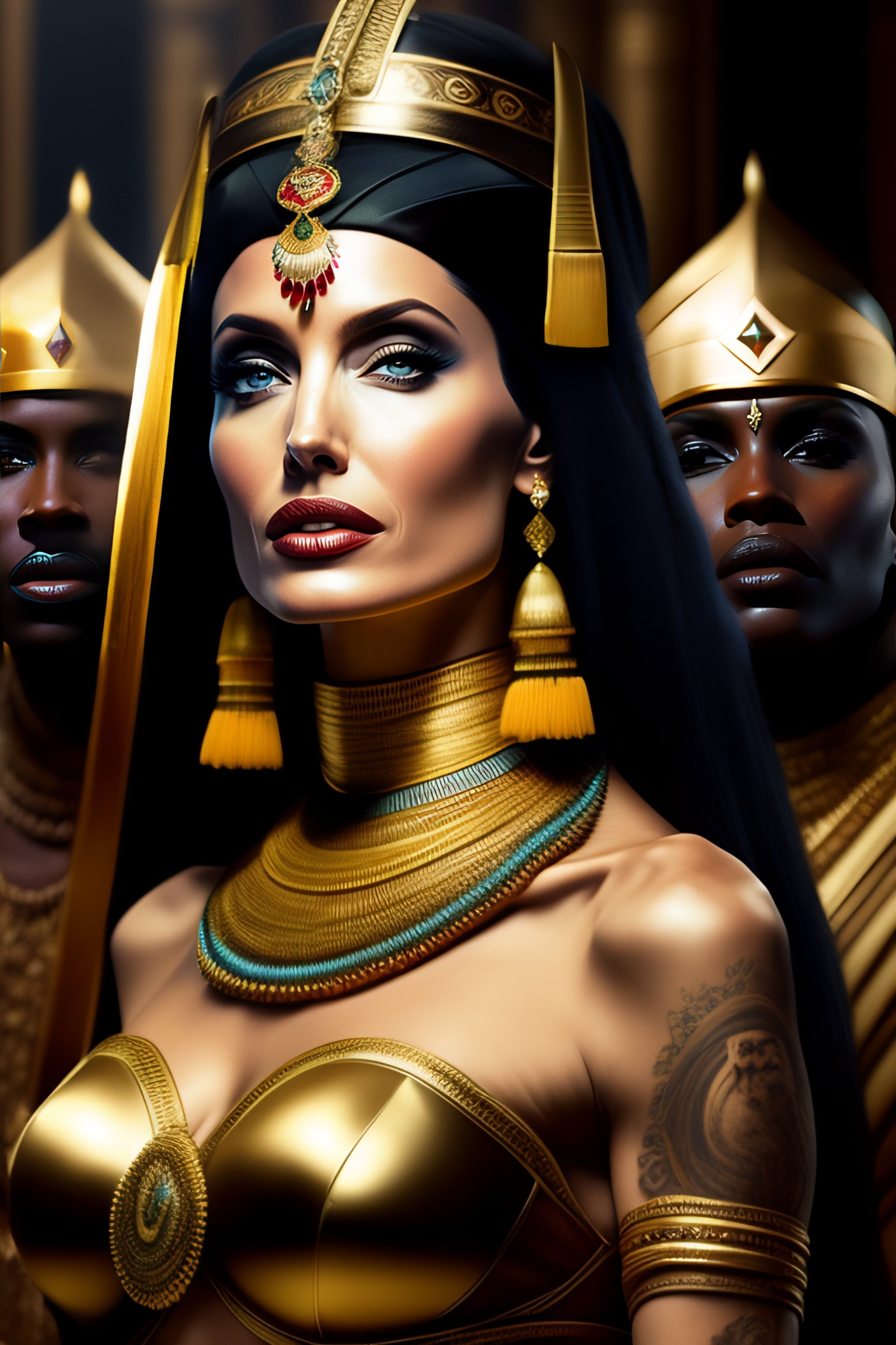 High resolution of angelina jolie as cleopatra next to her slaves