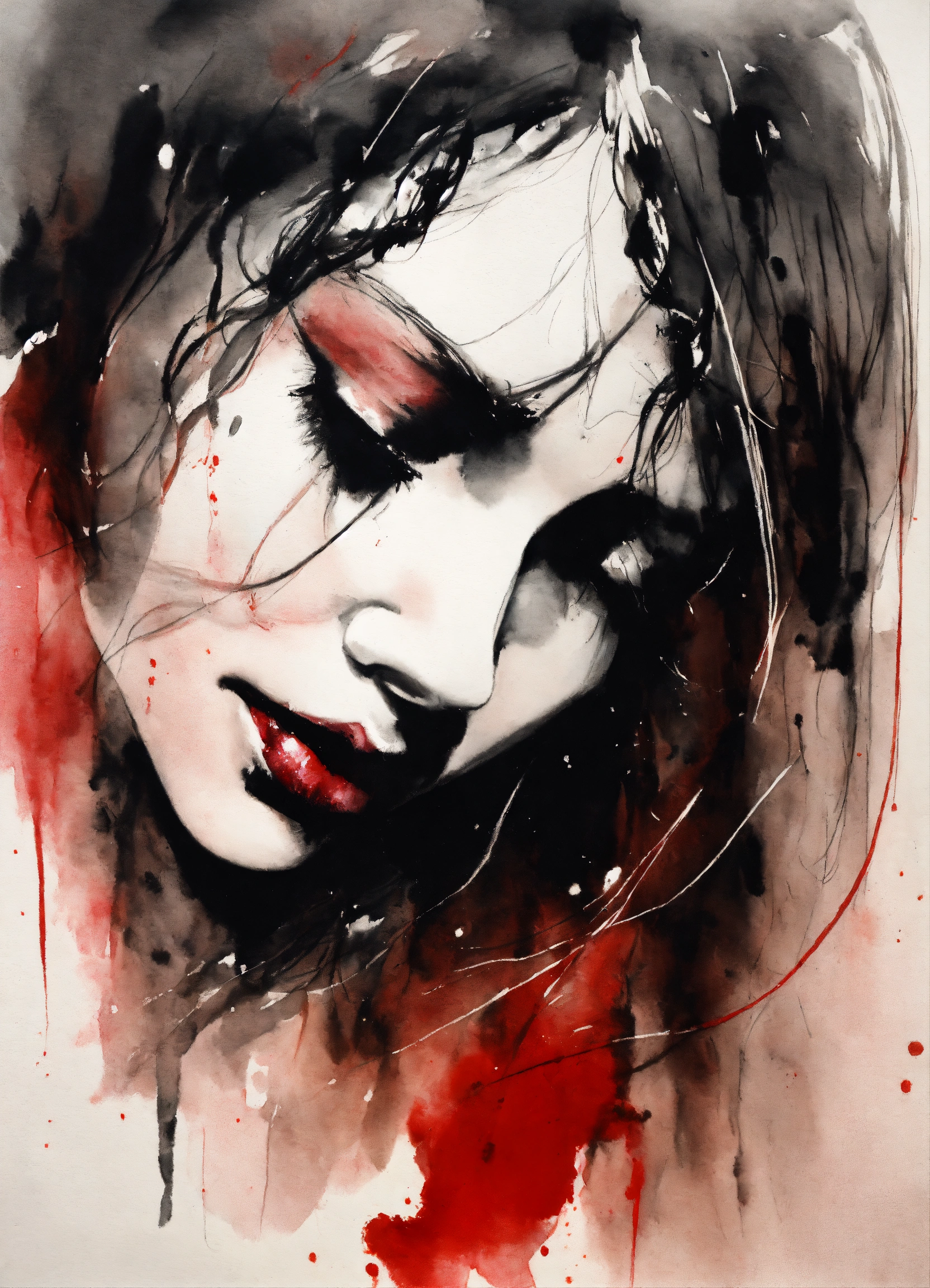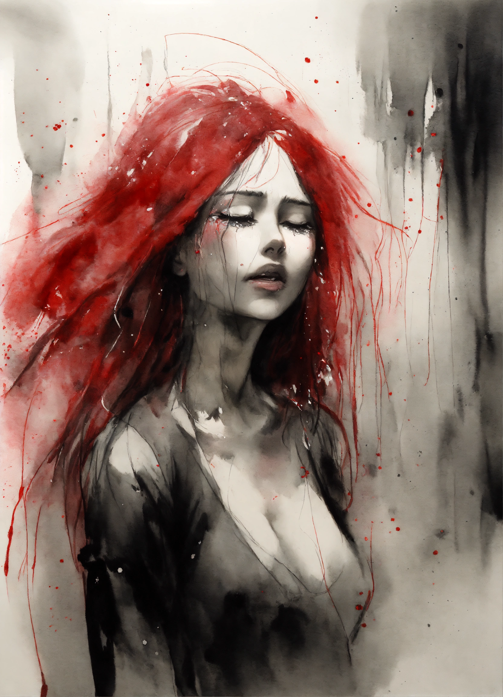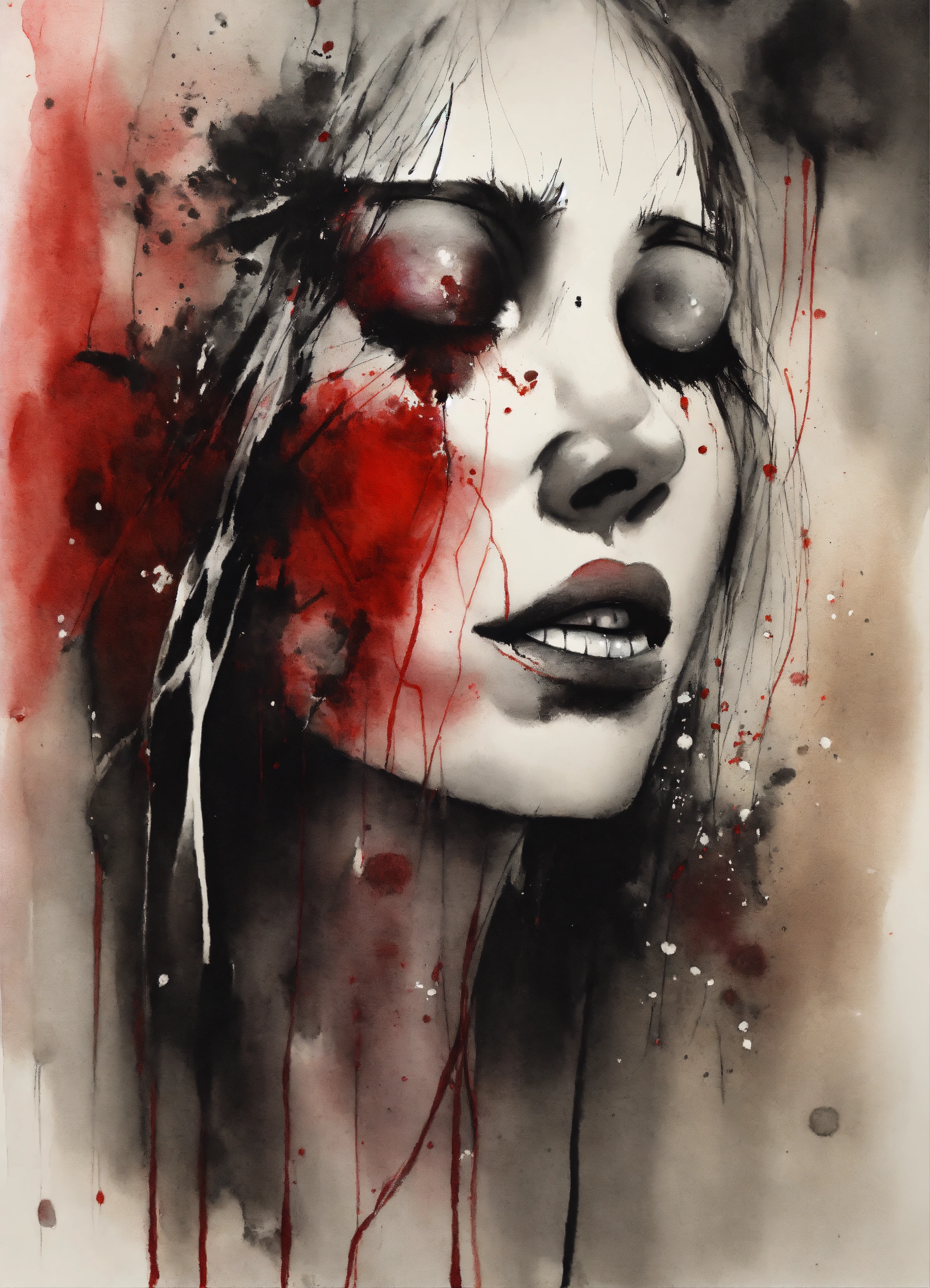 Stephen gammell style, dessin, aquarelle, aquarelles, noir et blanc et rouge, de marais, de sombres créatures, dégoulinant, representation of face book watsap social networks woman crying, big tears running down her cheeks