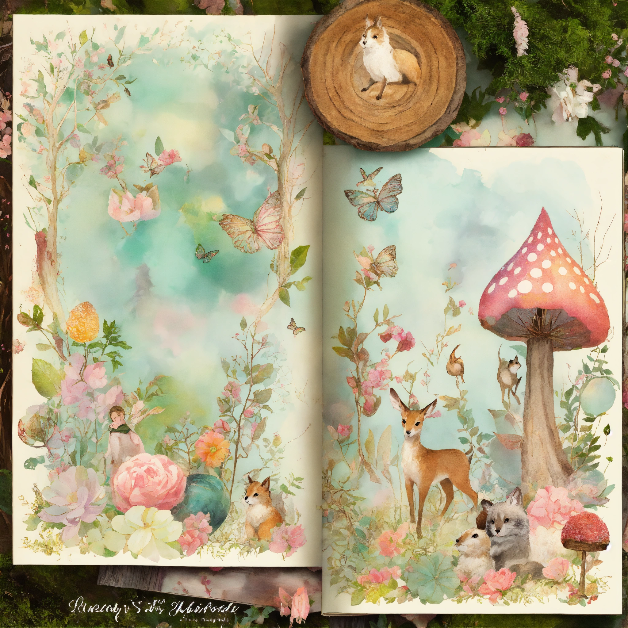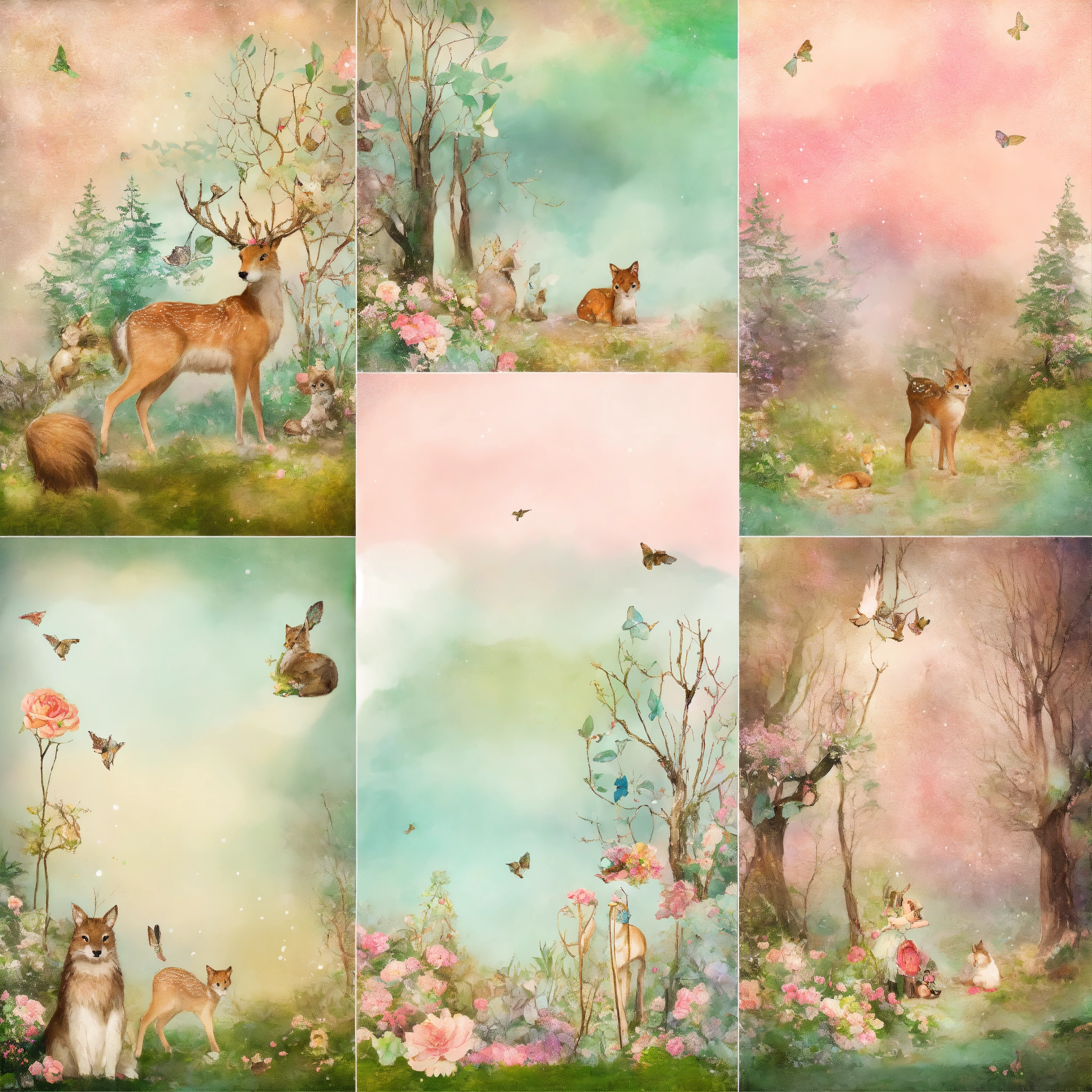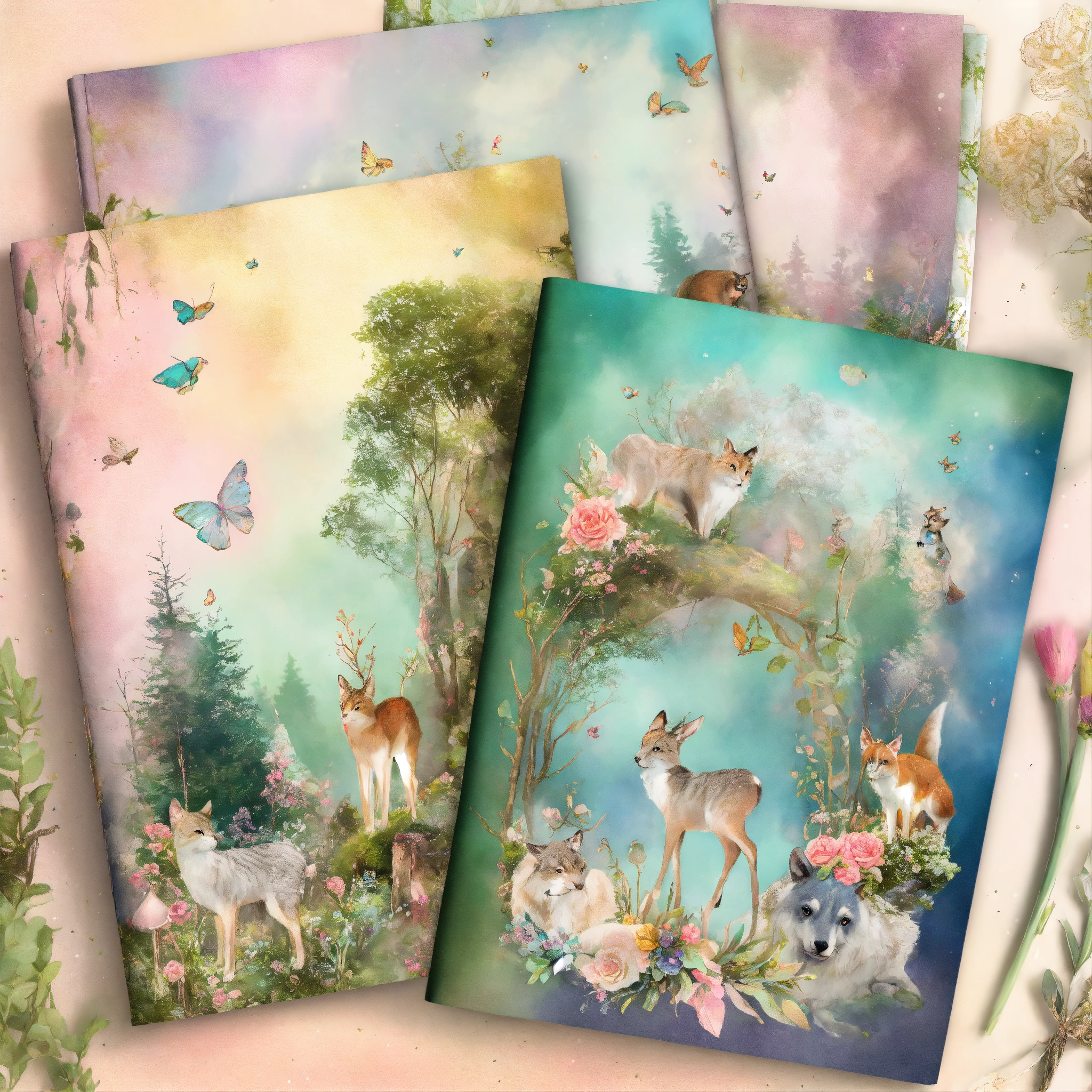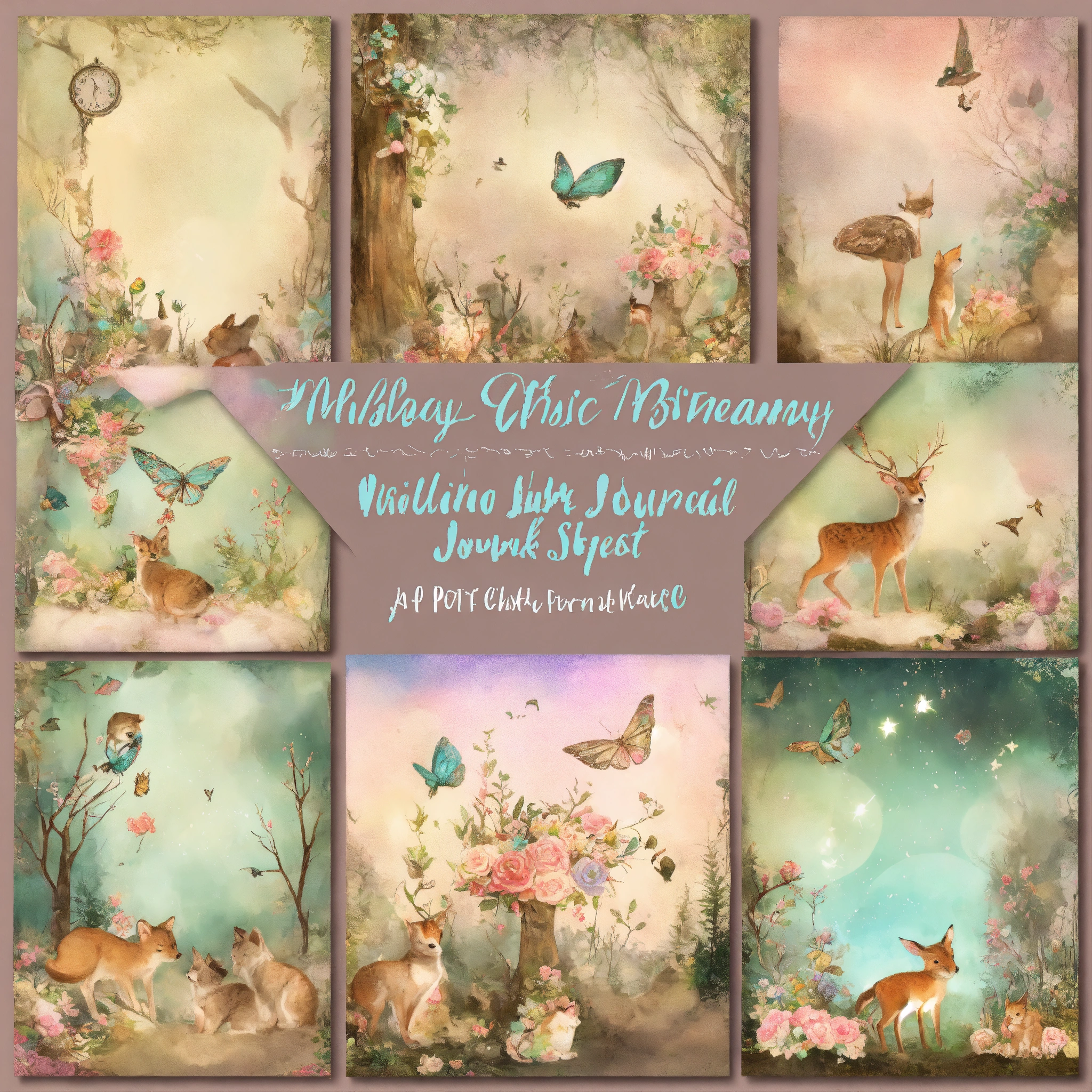 Shabby chic dreamy mist pastel junk journals whimsical forest junk journal digital kit, woodland animals journal pages, boy/ girl/child/ kid printable collage sheets, swirling magical fairytale abstract art style
