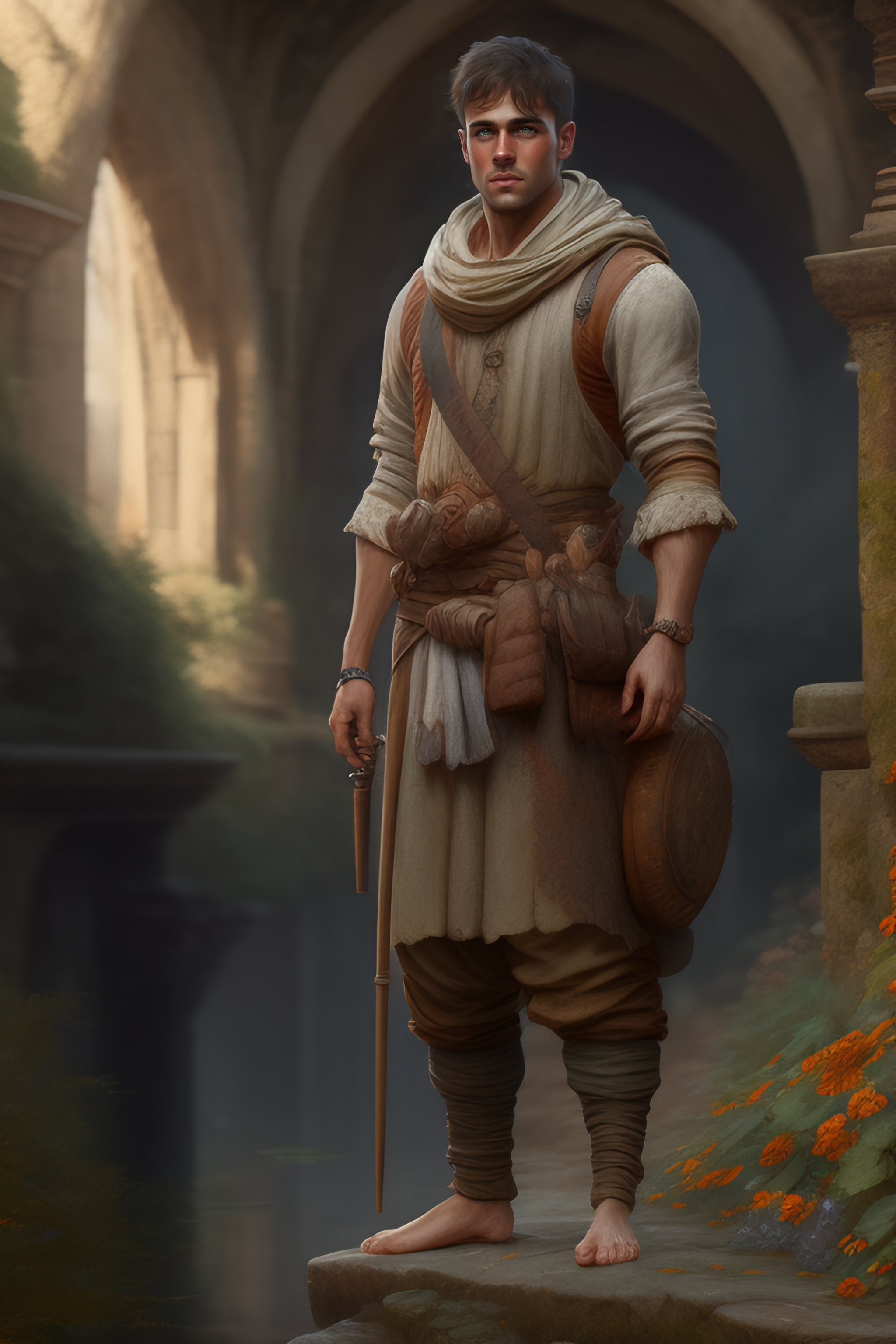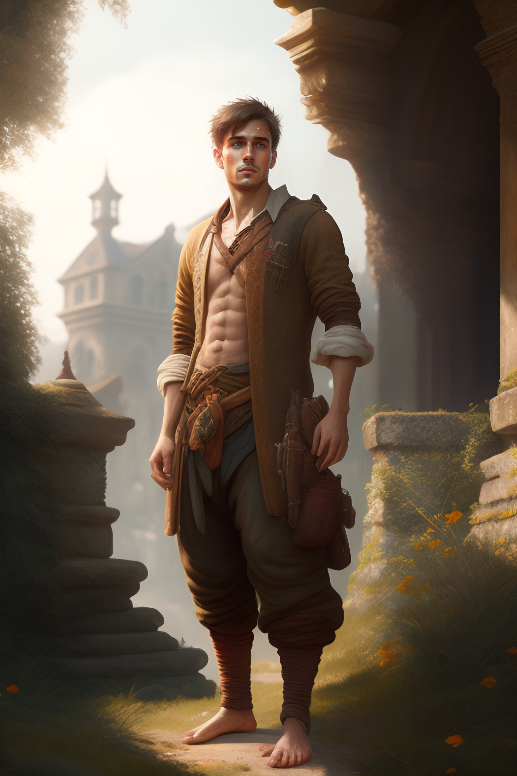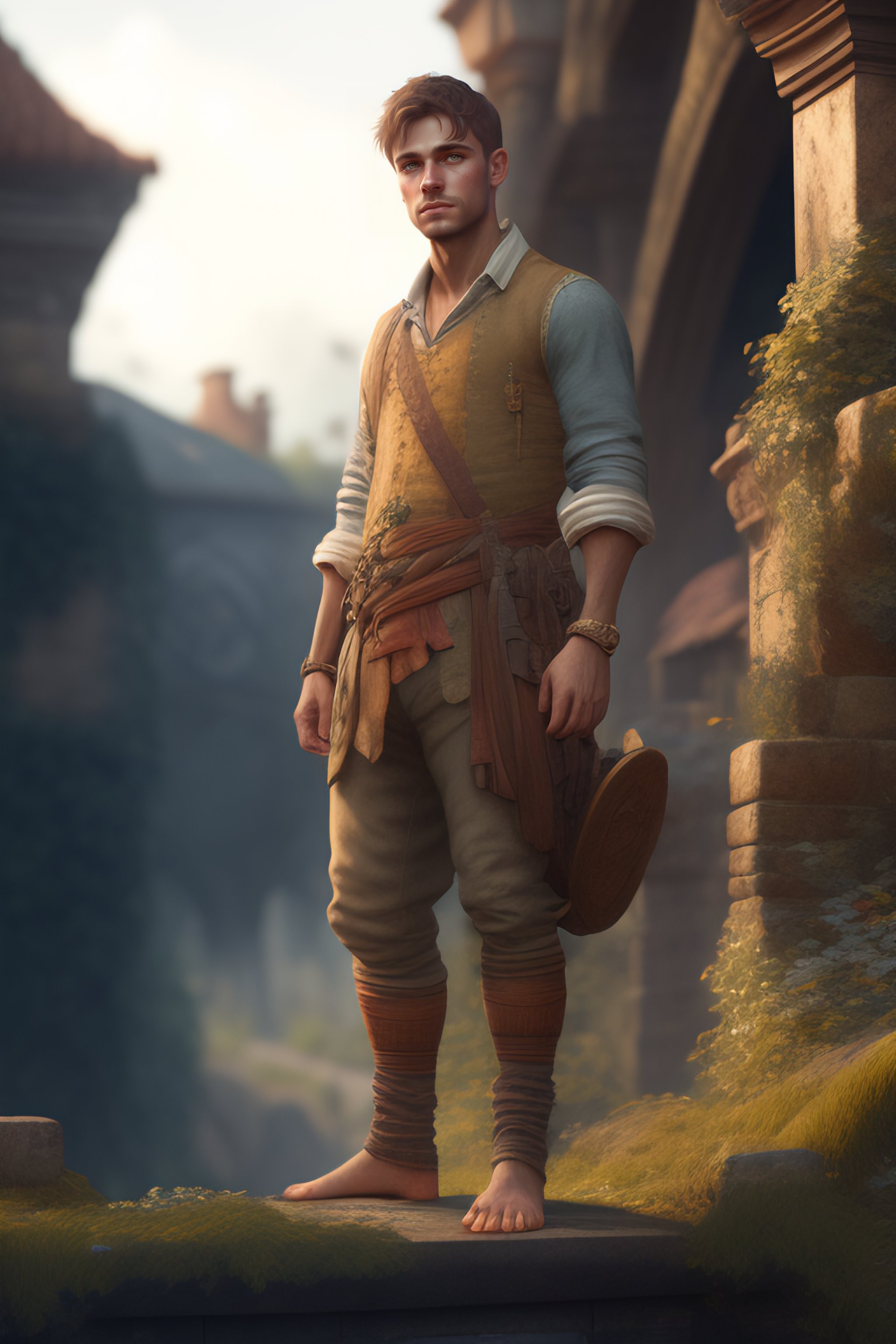 Brunette man standing, dwarfism, full body, medieval rags, barefoot, feet, intricate details, hyper detailed, ultrarealism, sophie anderson, jordan grimmer, greg rutkowski, 8 k, octane render, artgerm, artstation