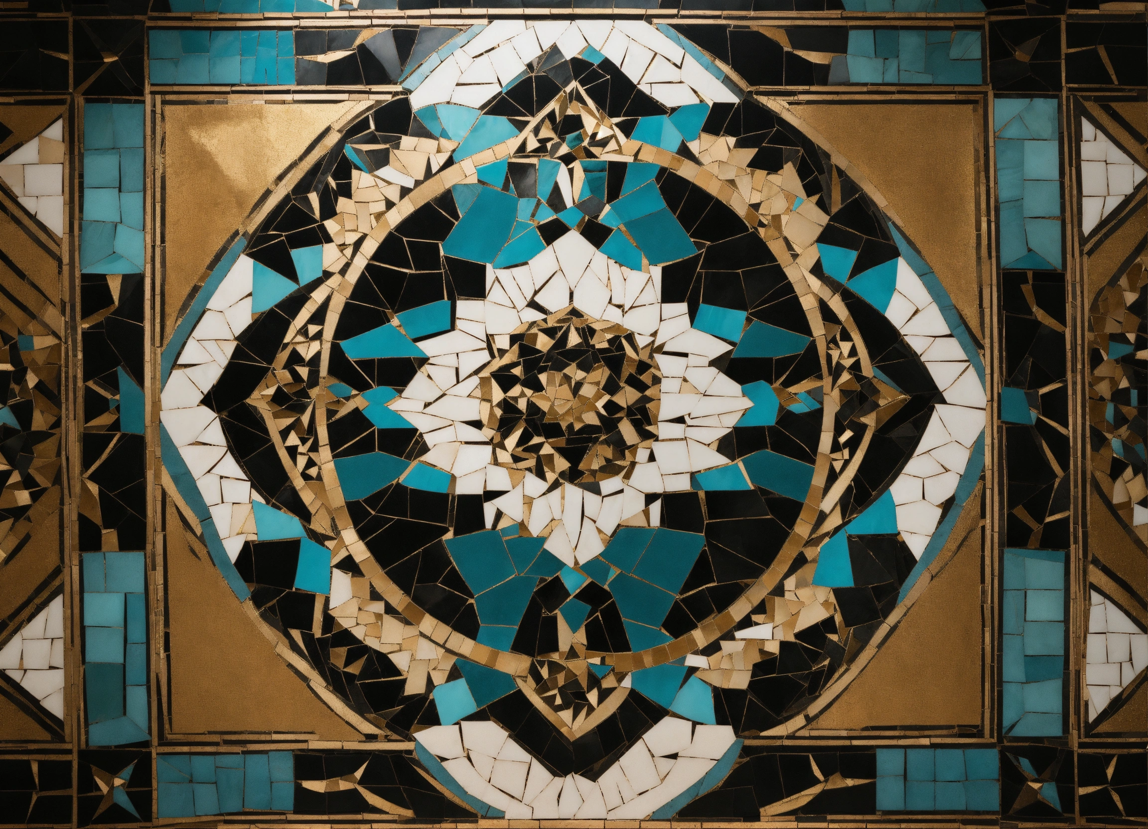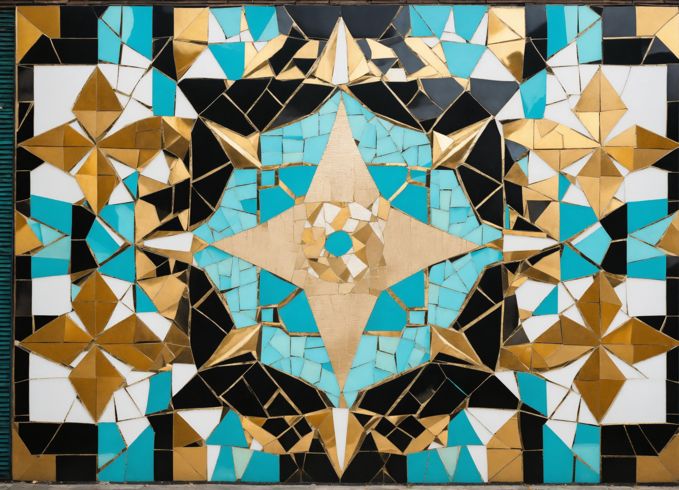 A symmetrical mosaic mural in black