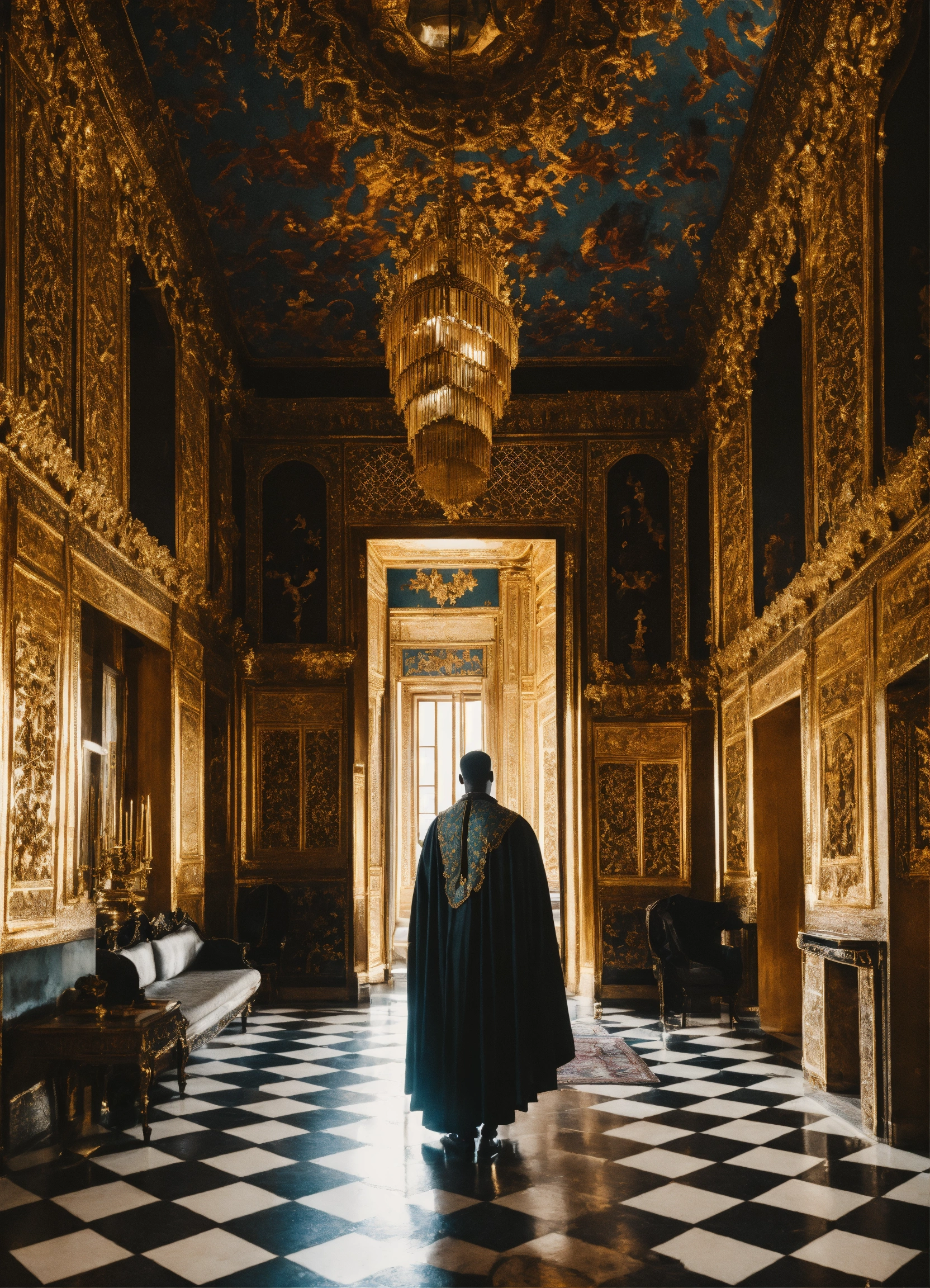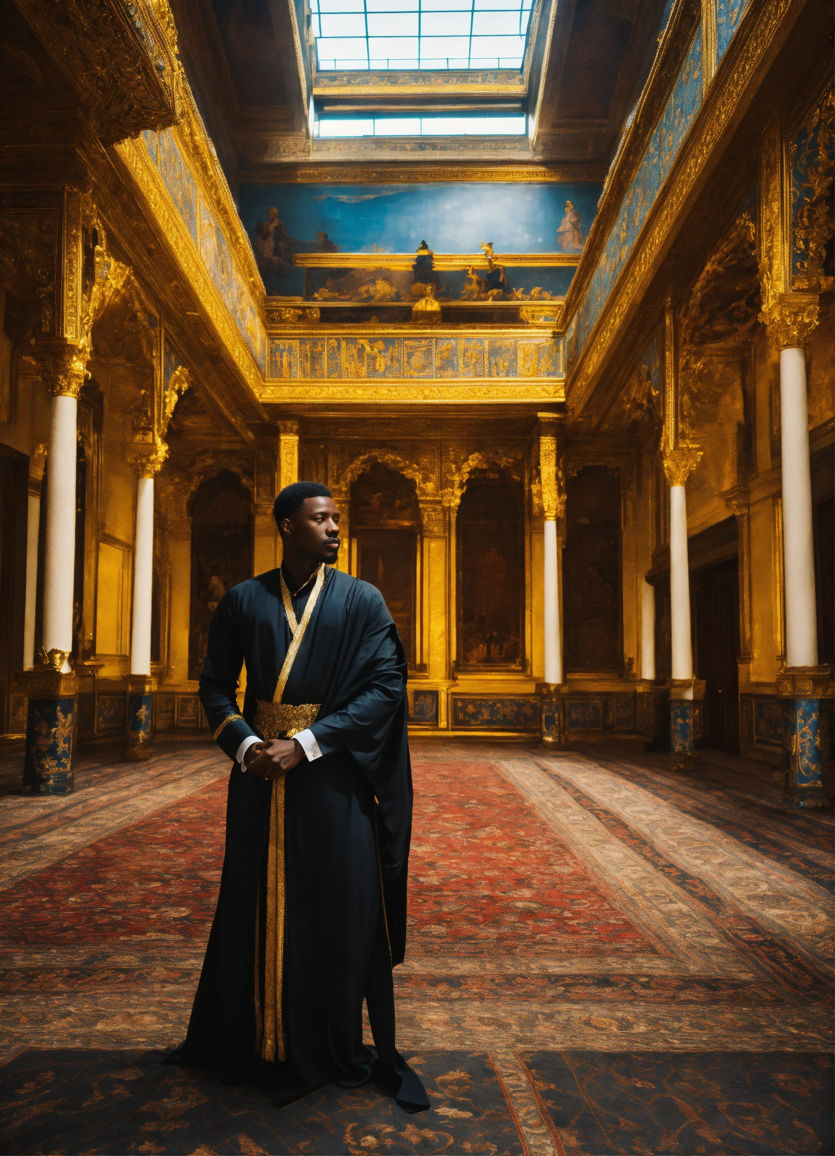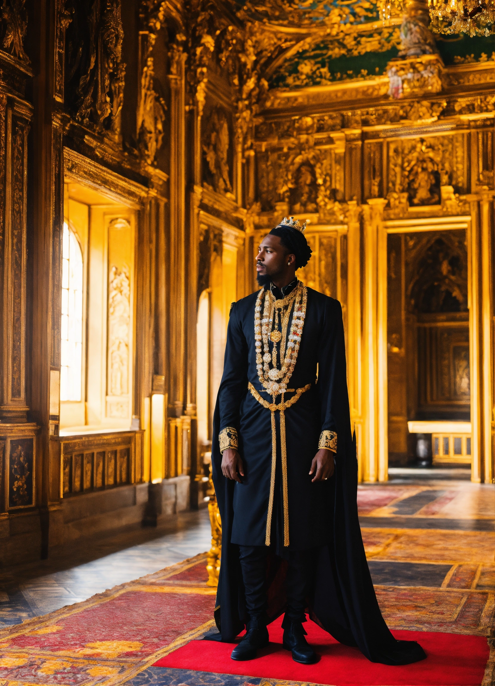 Black king in a beautiful palace