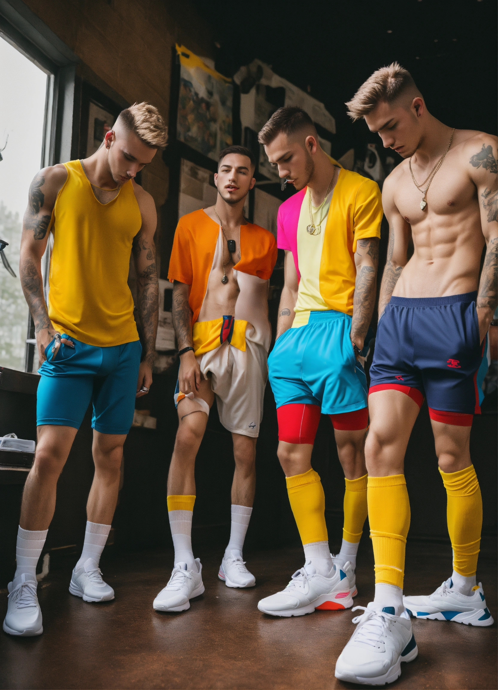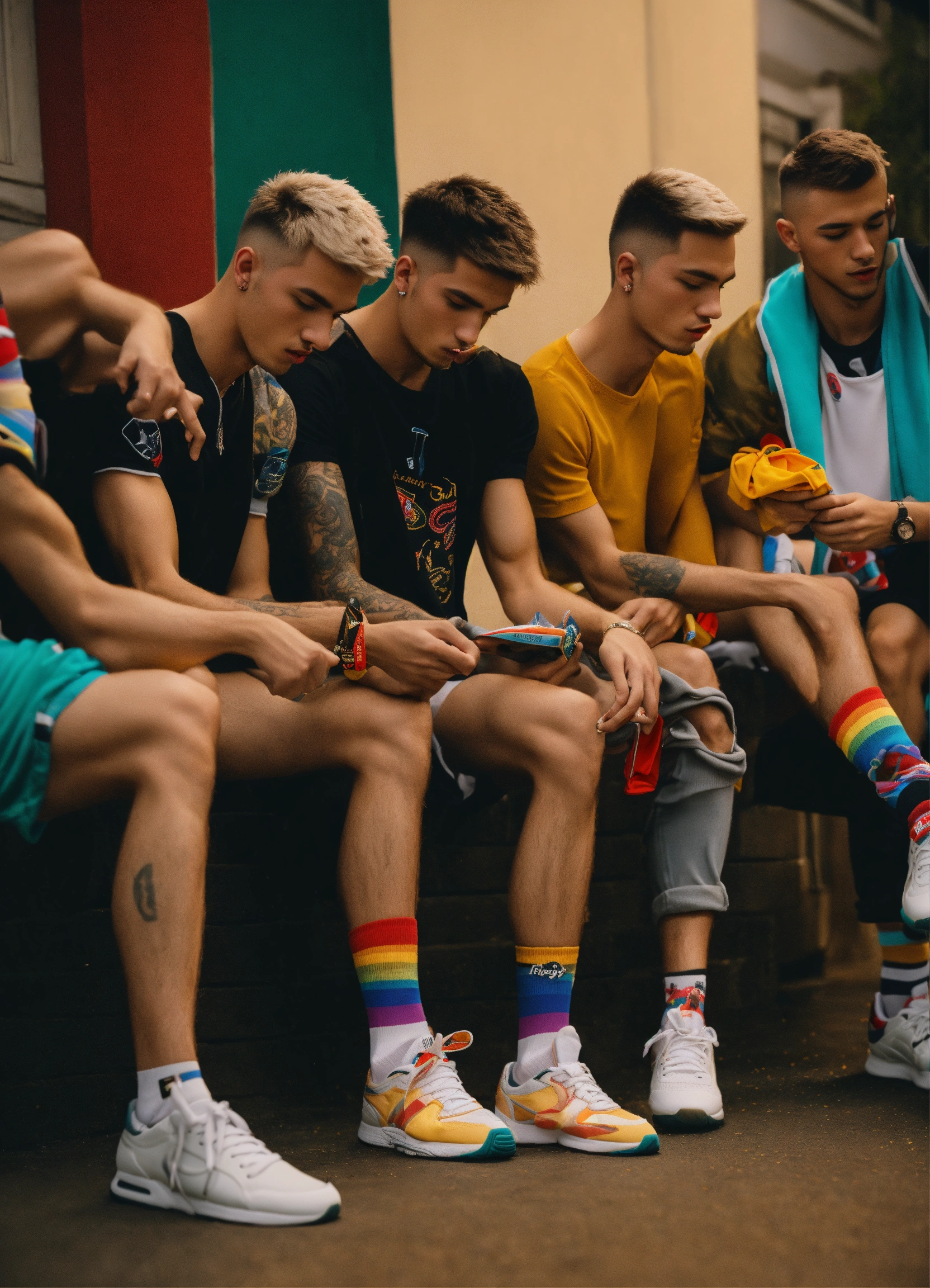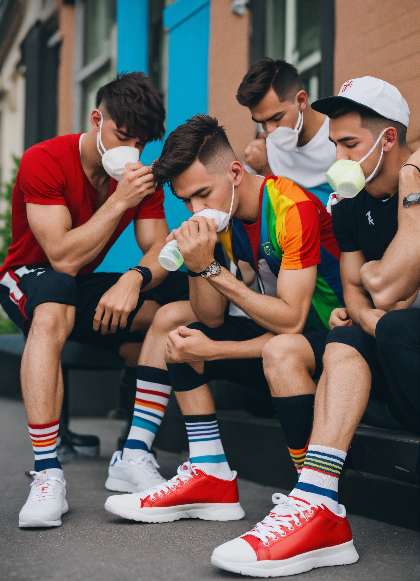 Group of skinny guys smelling sneakers tik tok jocks