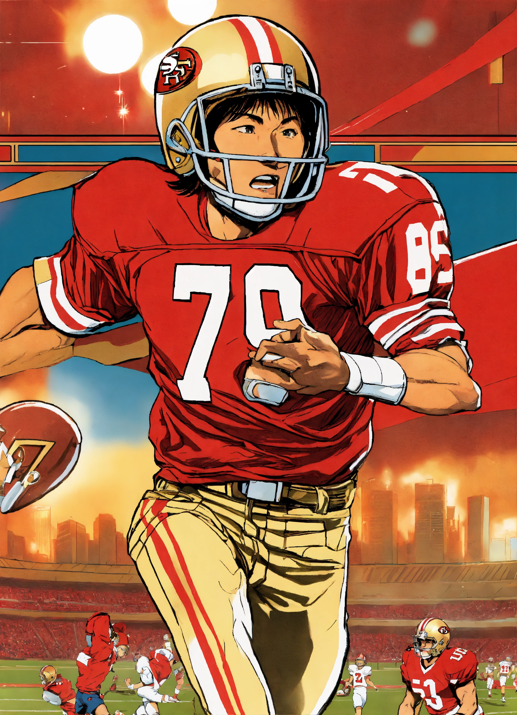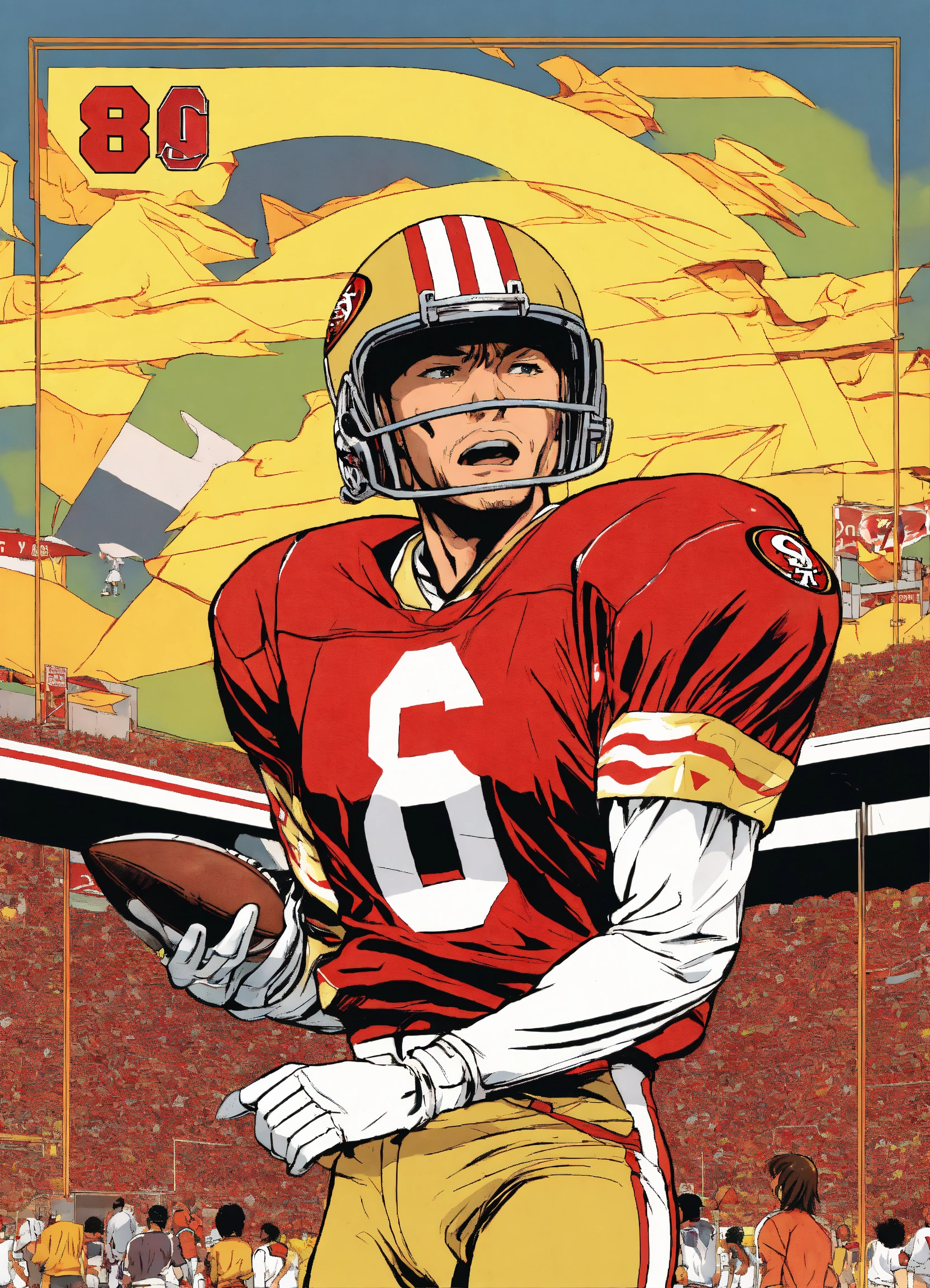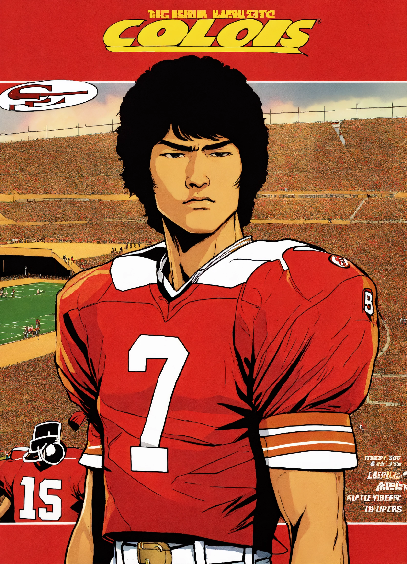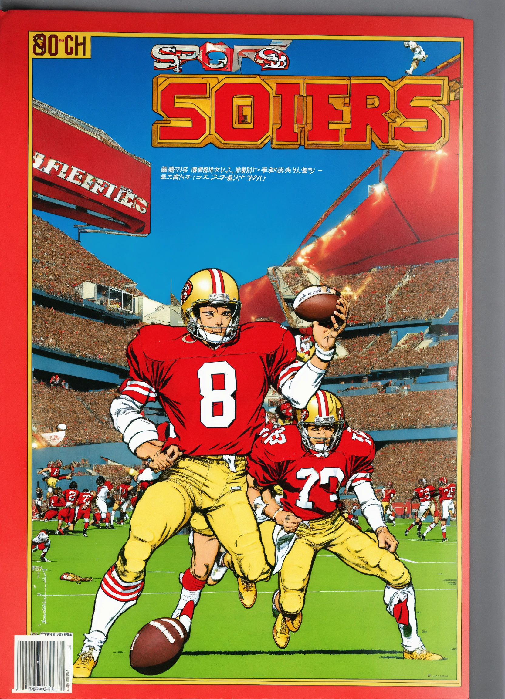 80s anime asian\ sports football comic cover 49ers colors red and gold