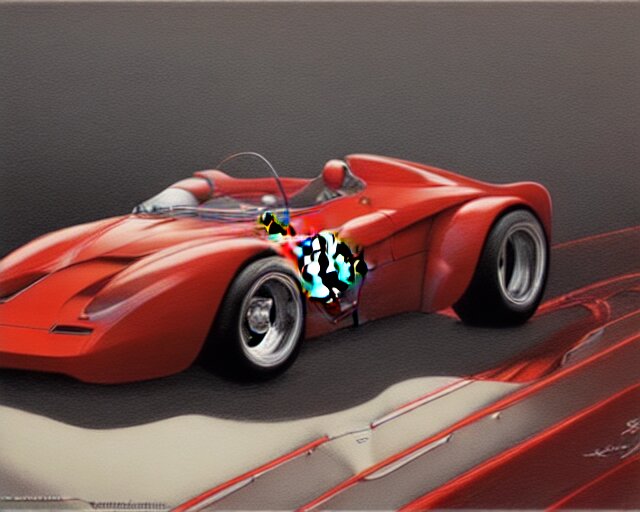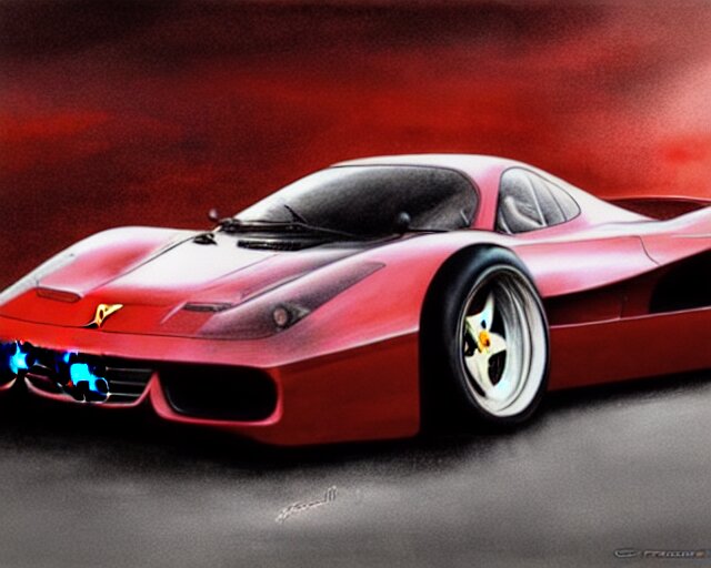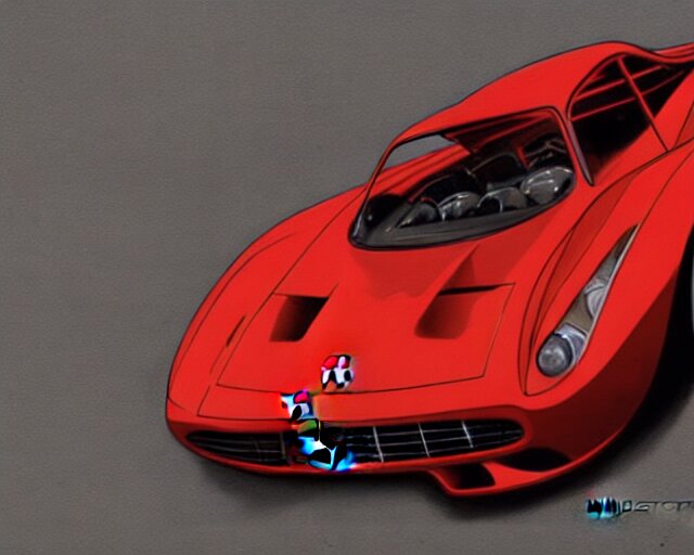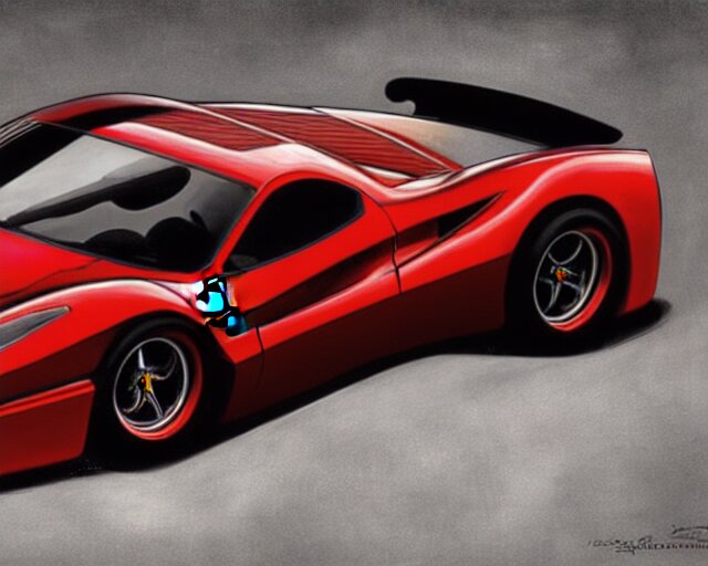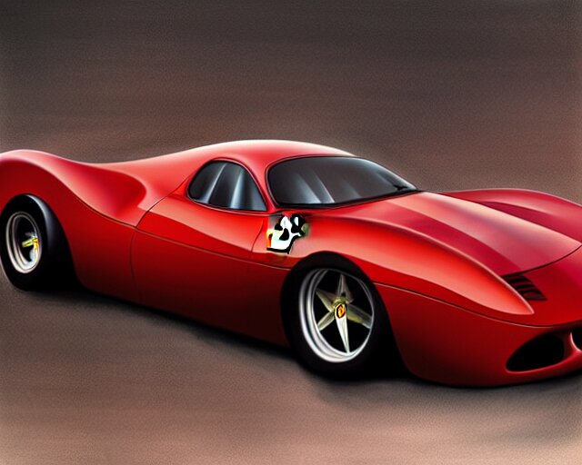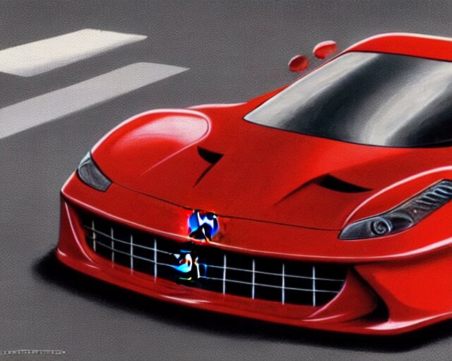 Ferrari hotrod car with an exposed v12 engine, highly detailed, sharp focus, art by greg rutkowski and wlop