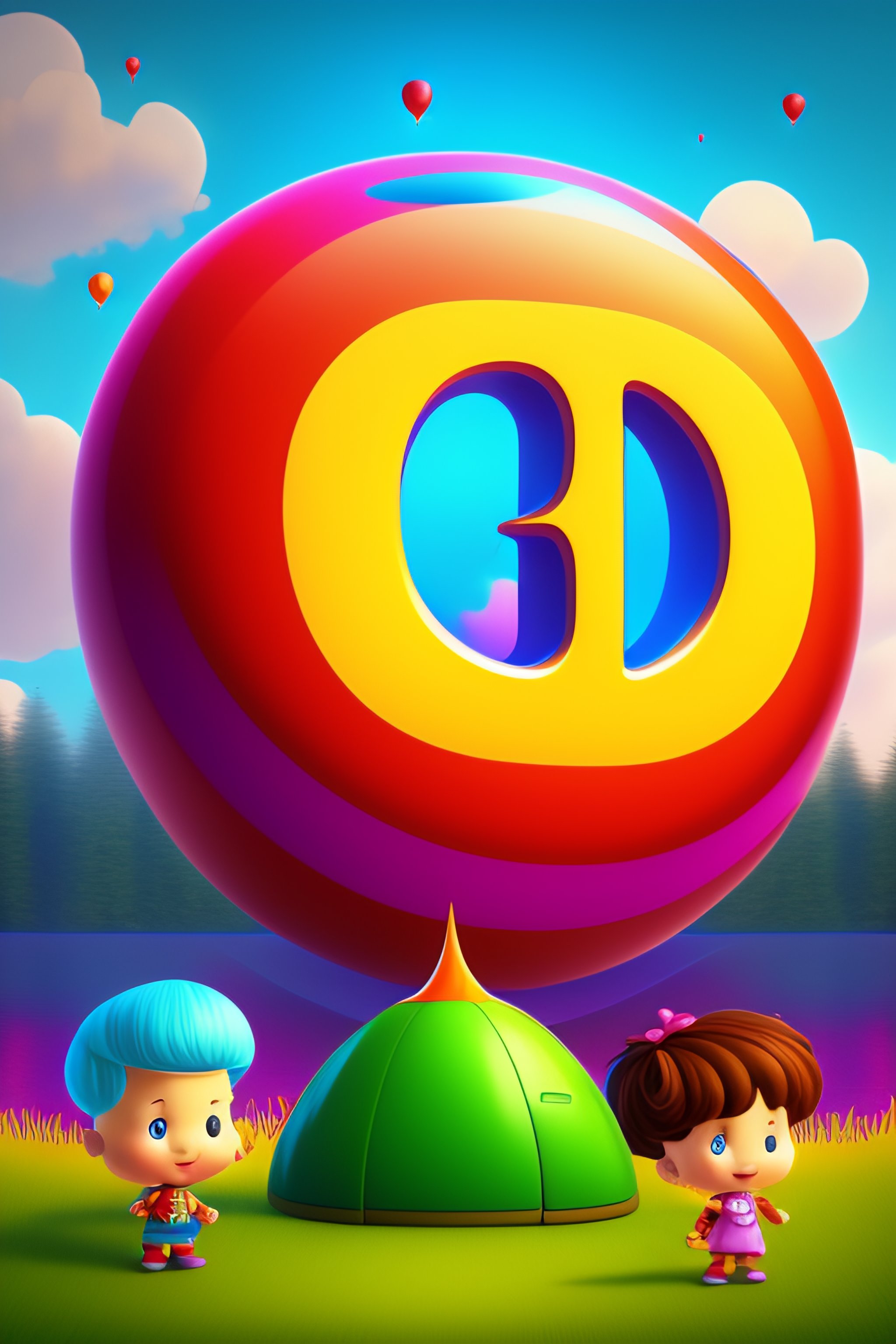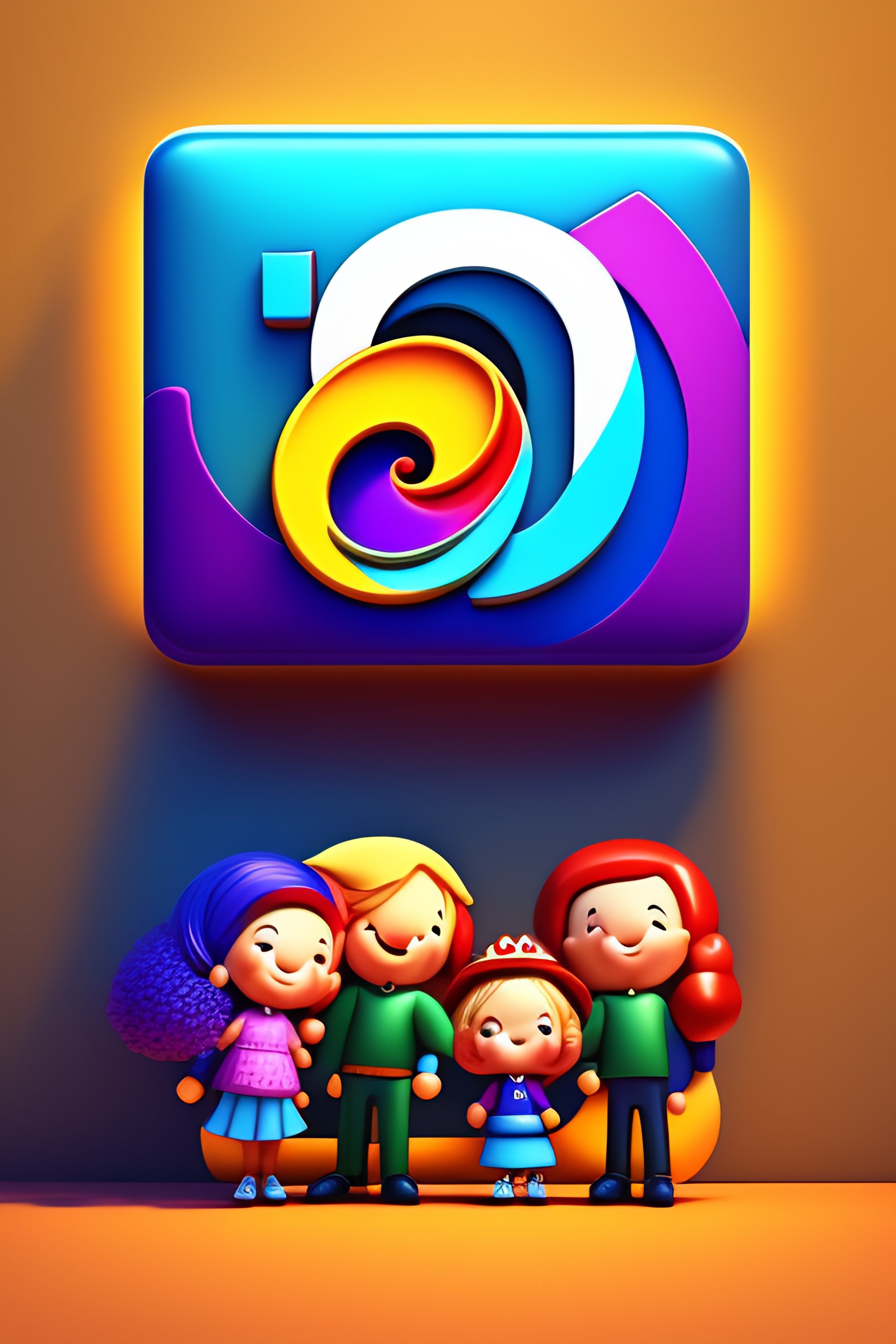 Logo of ai realistic happy cartoon kids imagination app called storio, io freedom with happy family focusing on dancing