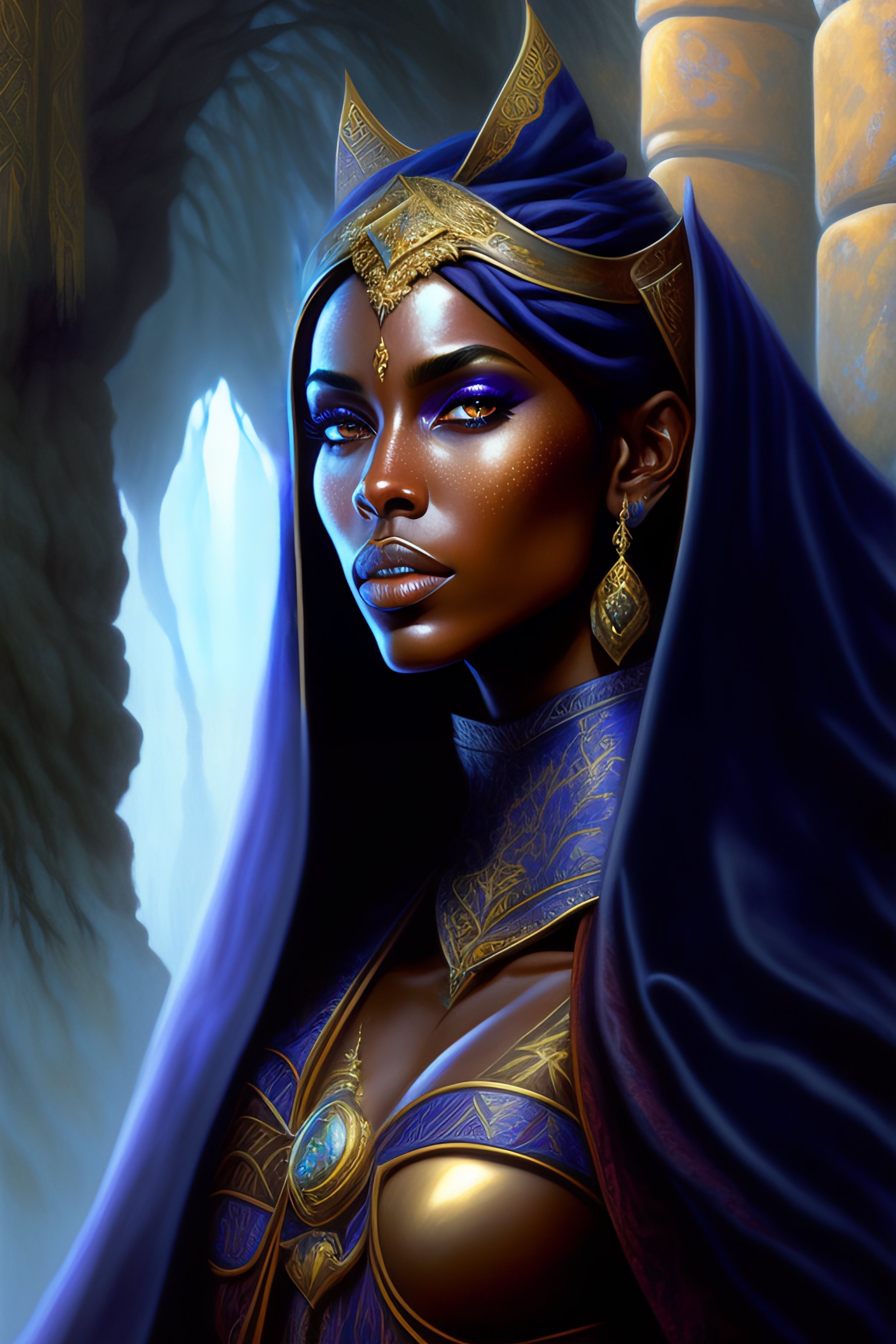 Painting, beautiful female dark elf wearing magic robes, highly detailed, fantasy art, 90s style, by adrian smith, by kentaro miura