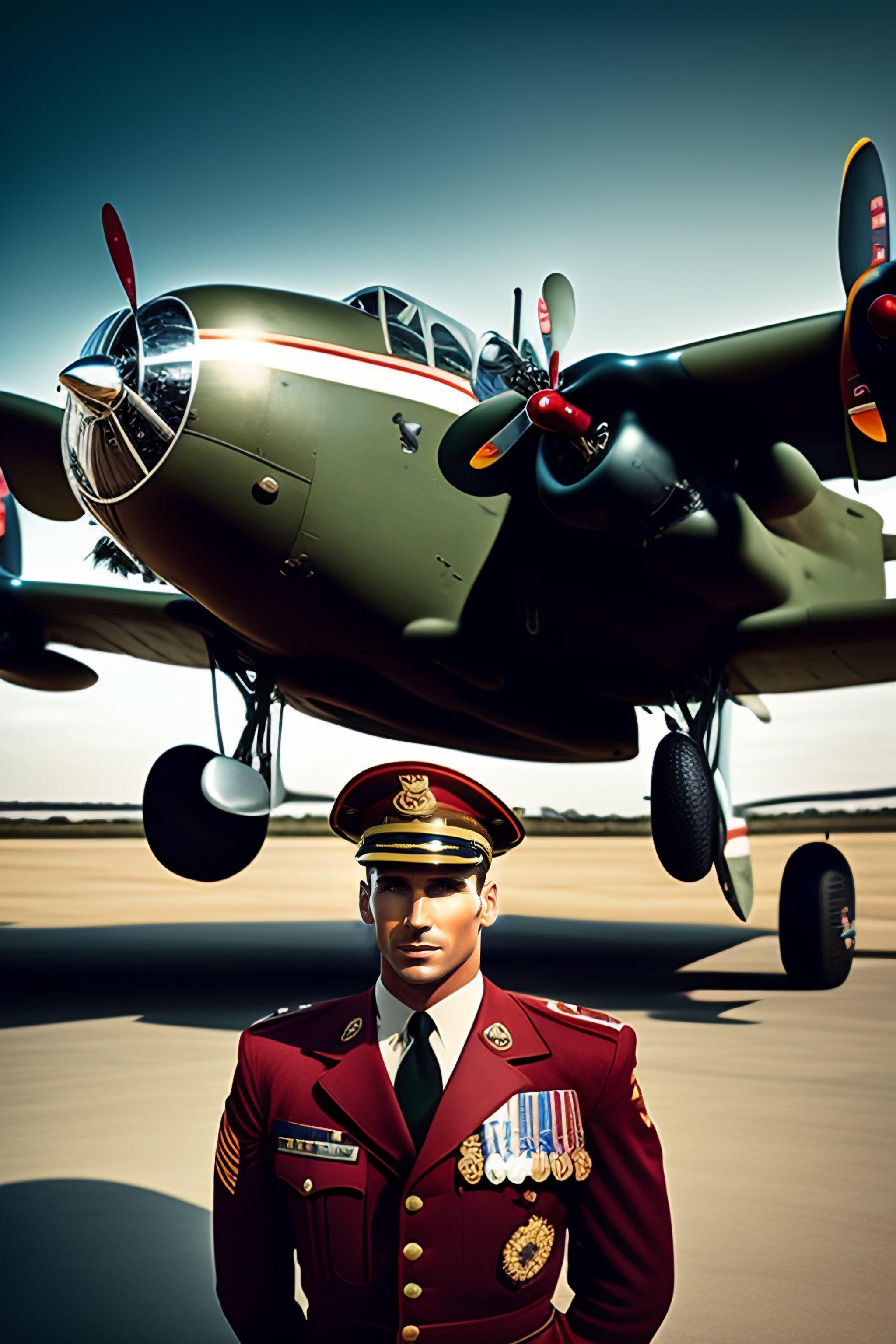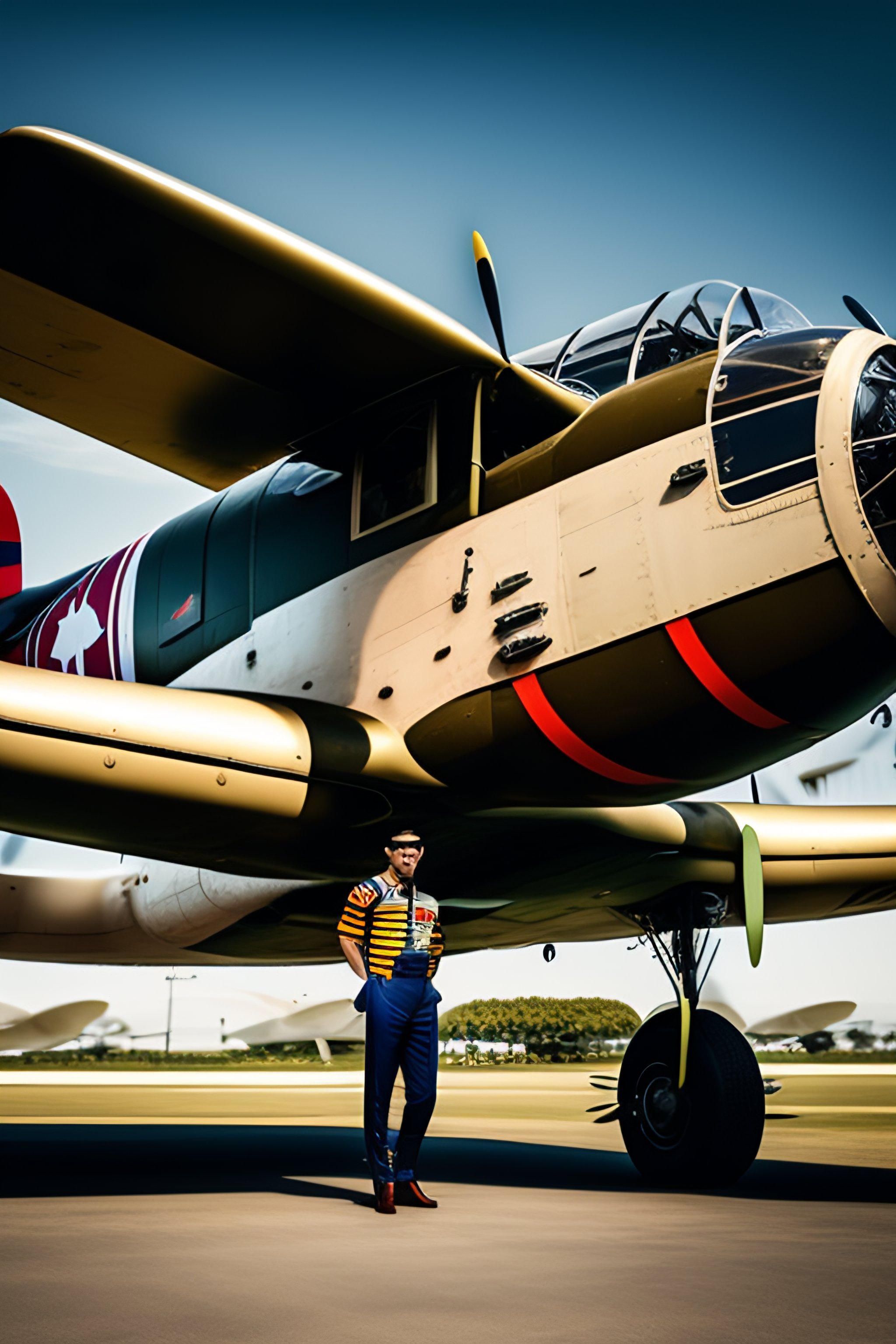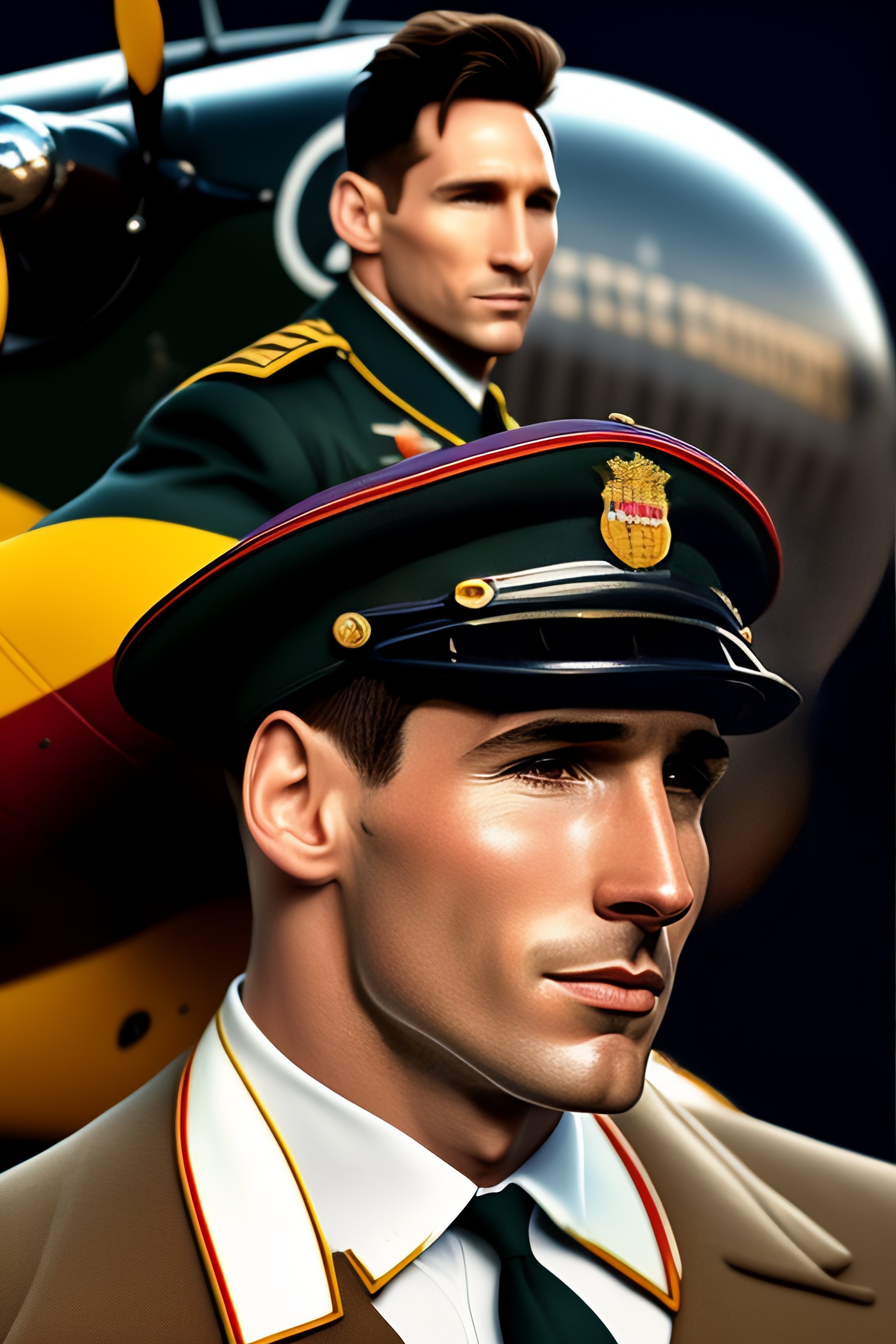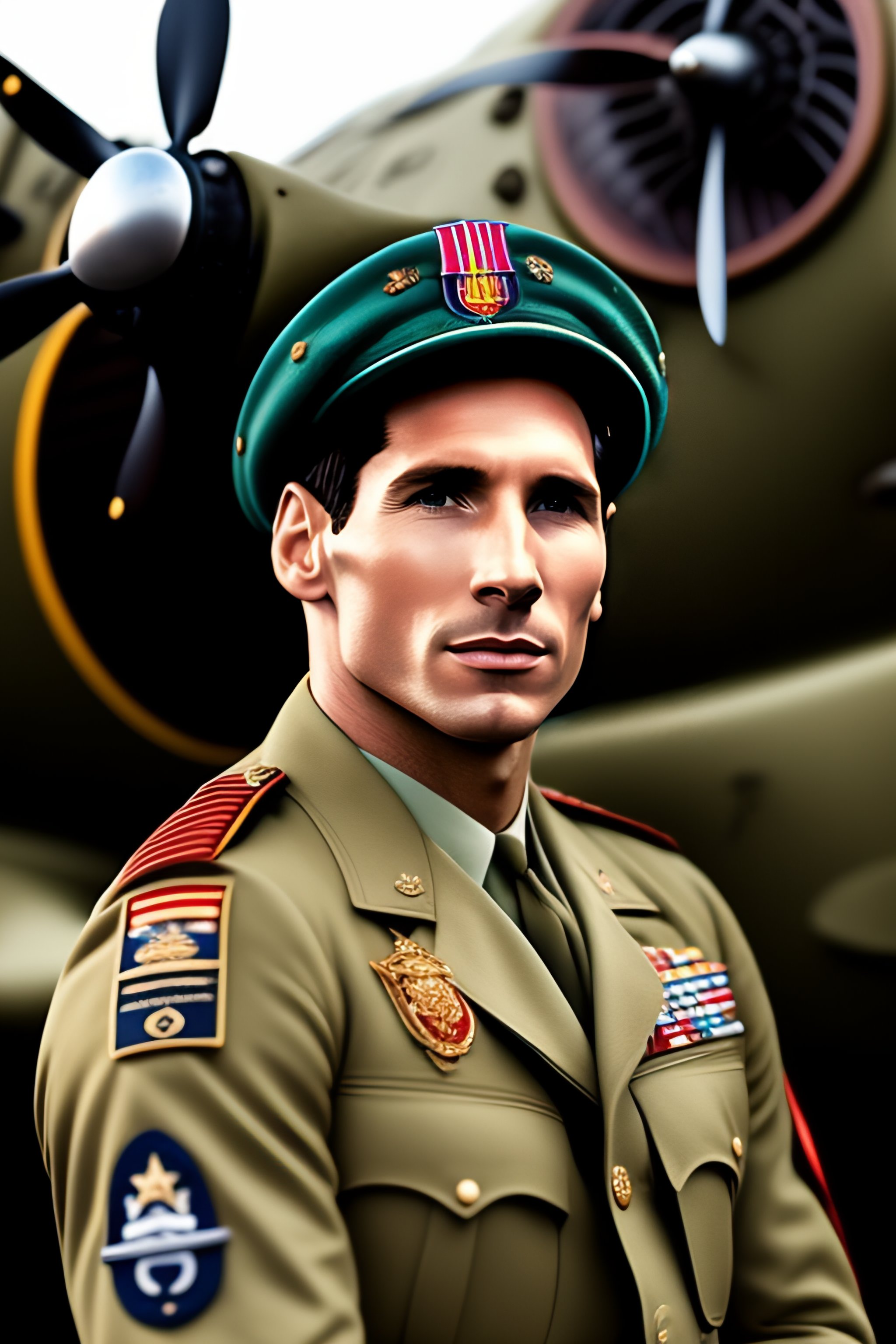 Lionel messi dressed as a 1940s pilot in a 1940's vintage ww2 jaffee martin b-26 marauder airplane, highly detailed, 8k
