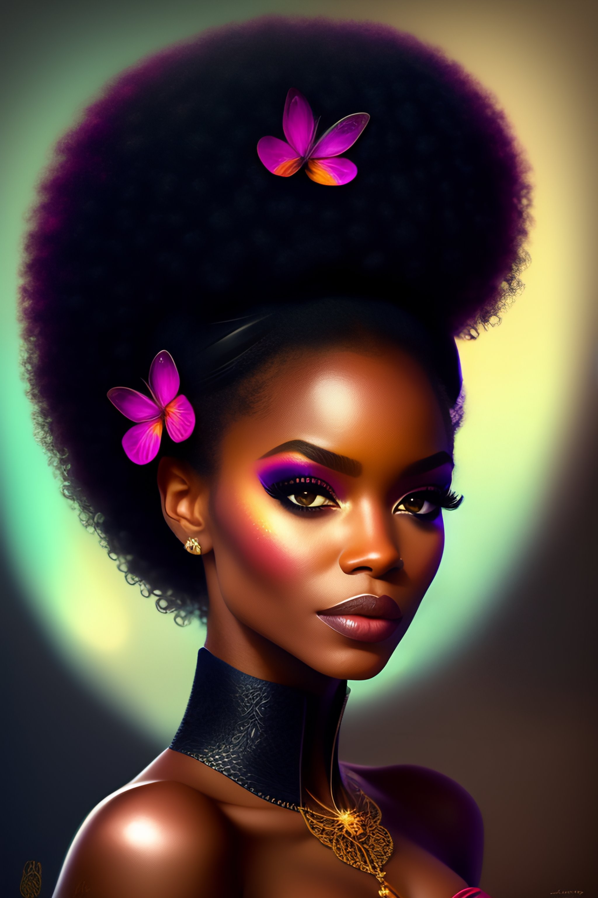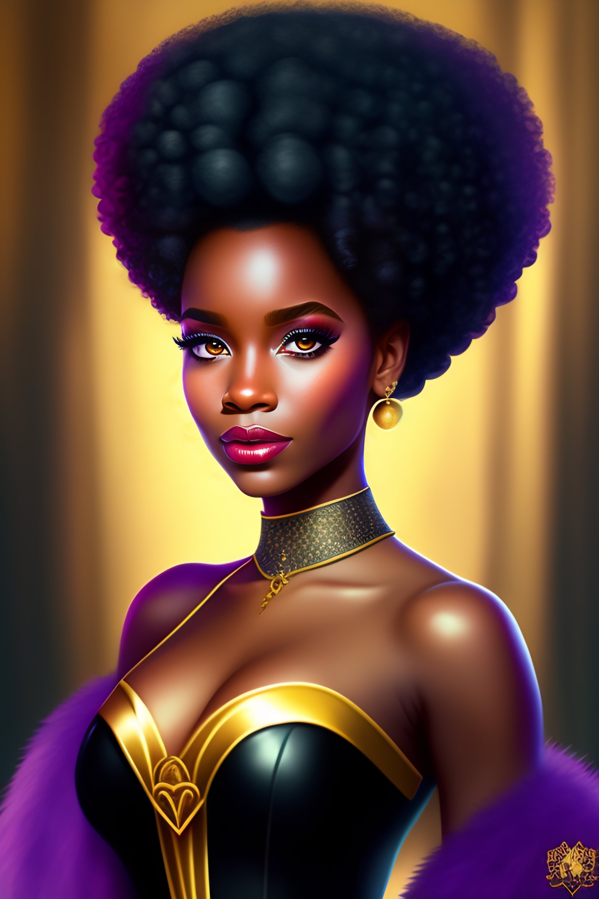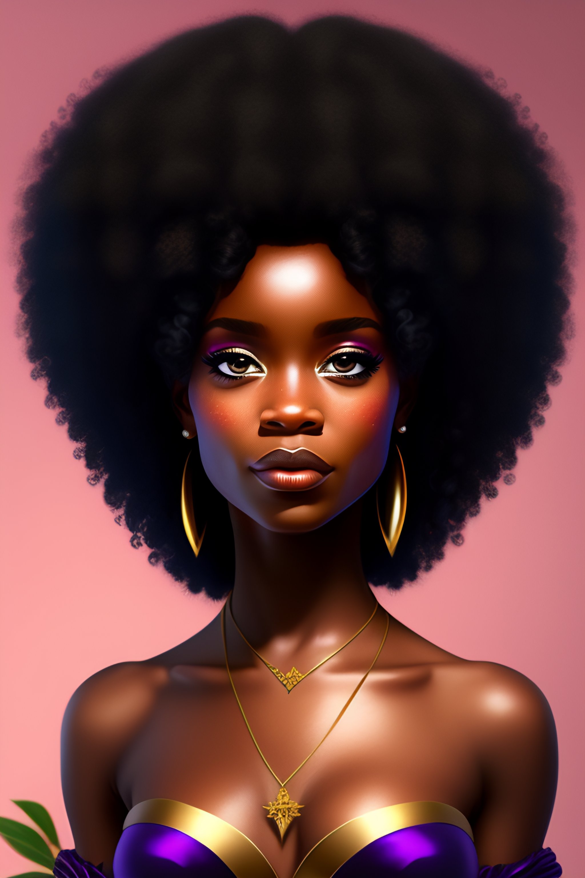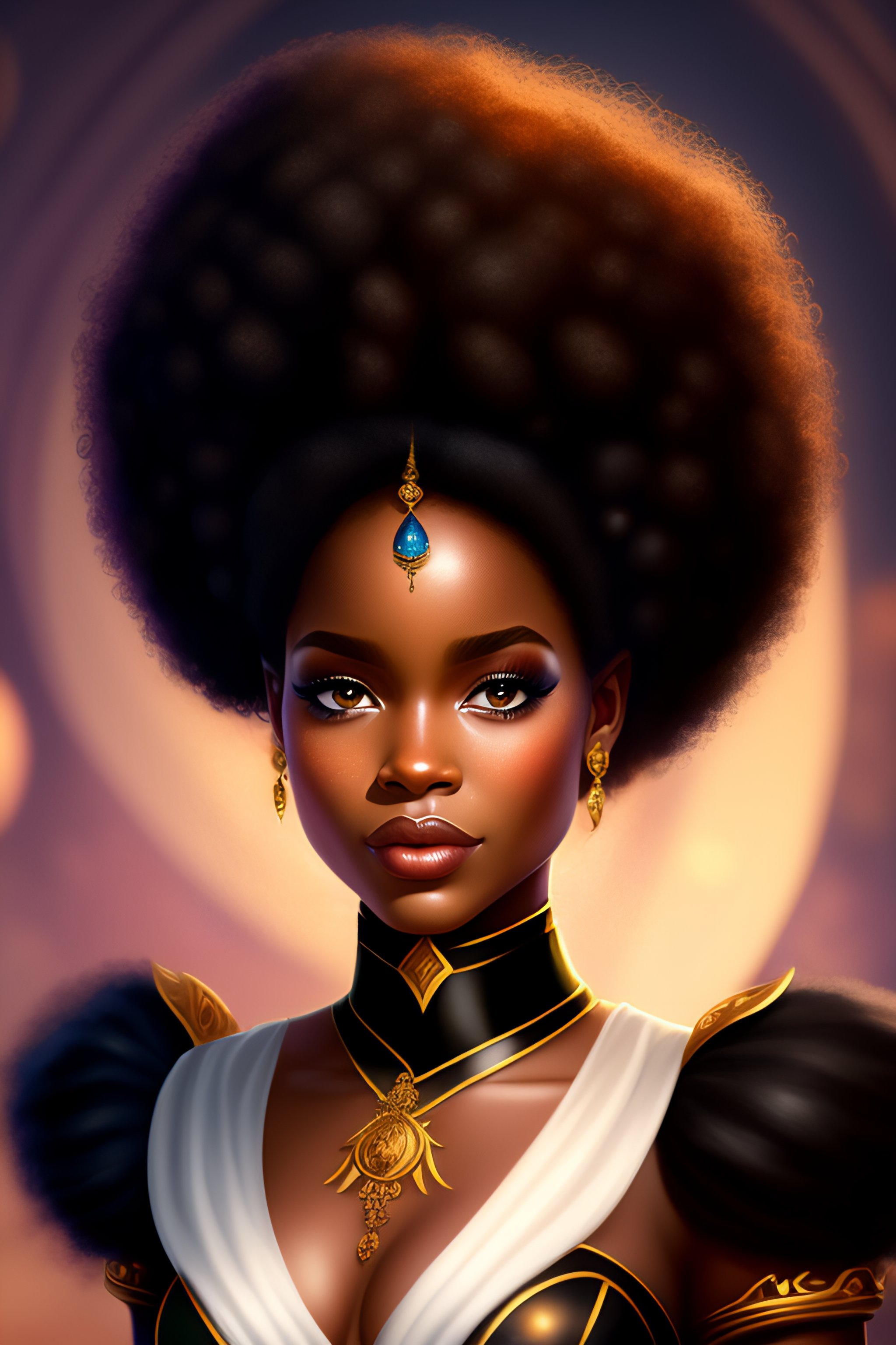 Black fairy queen with afro done in disney style