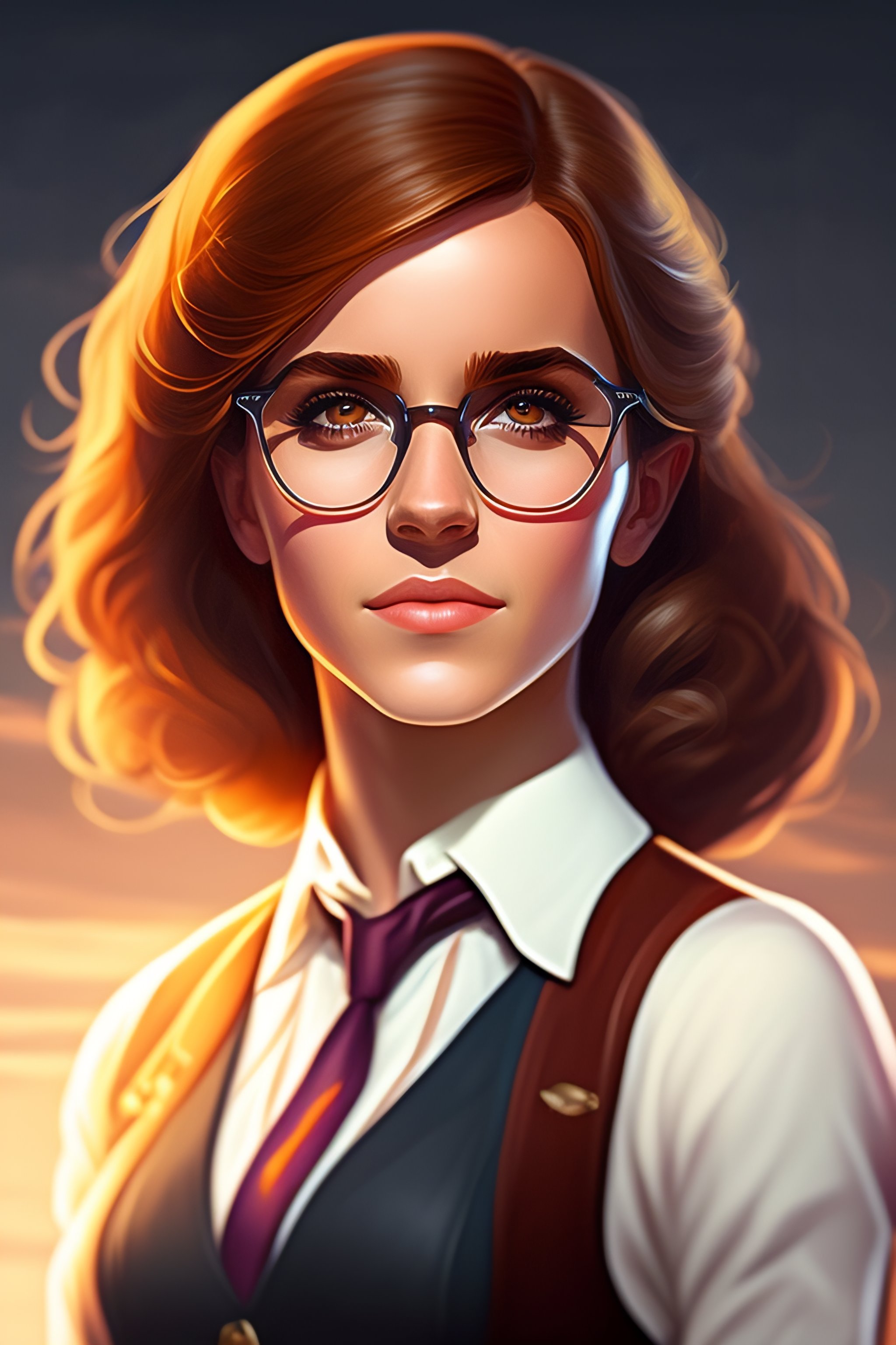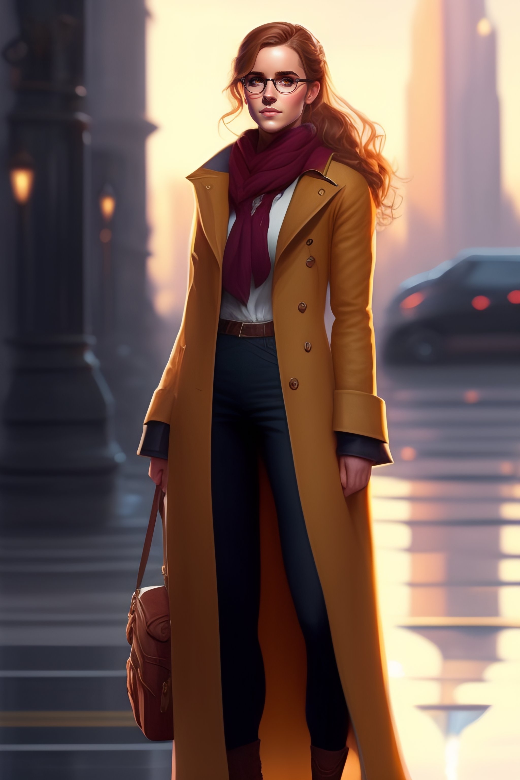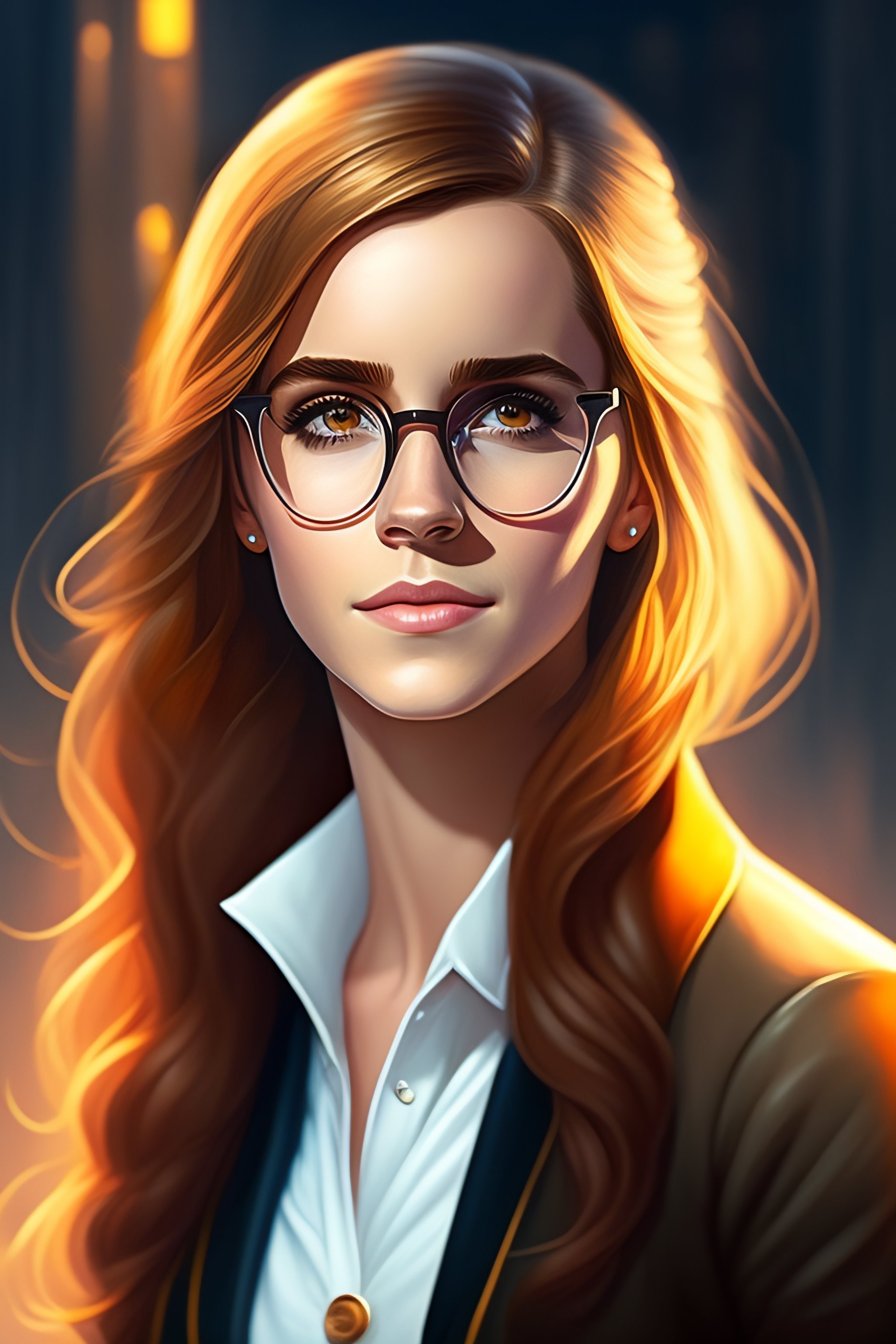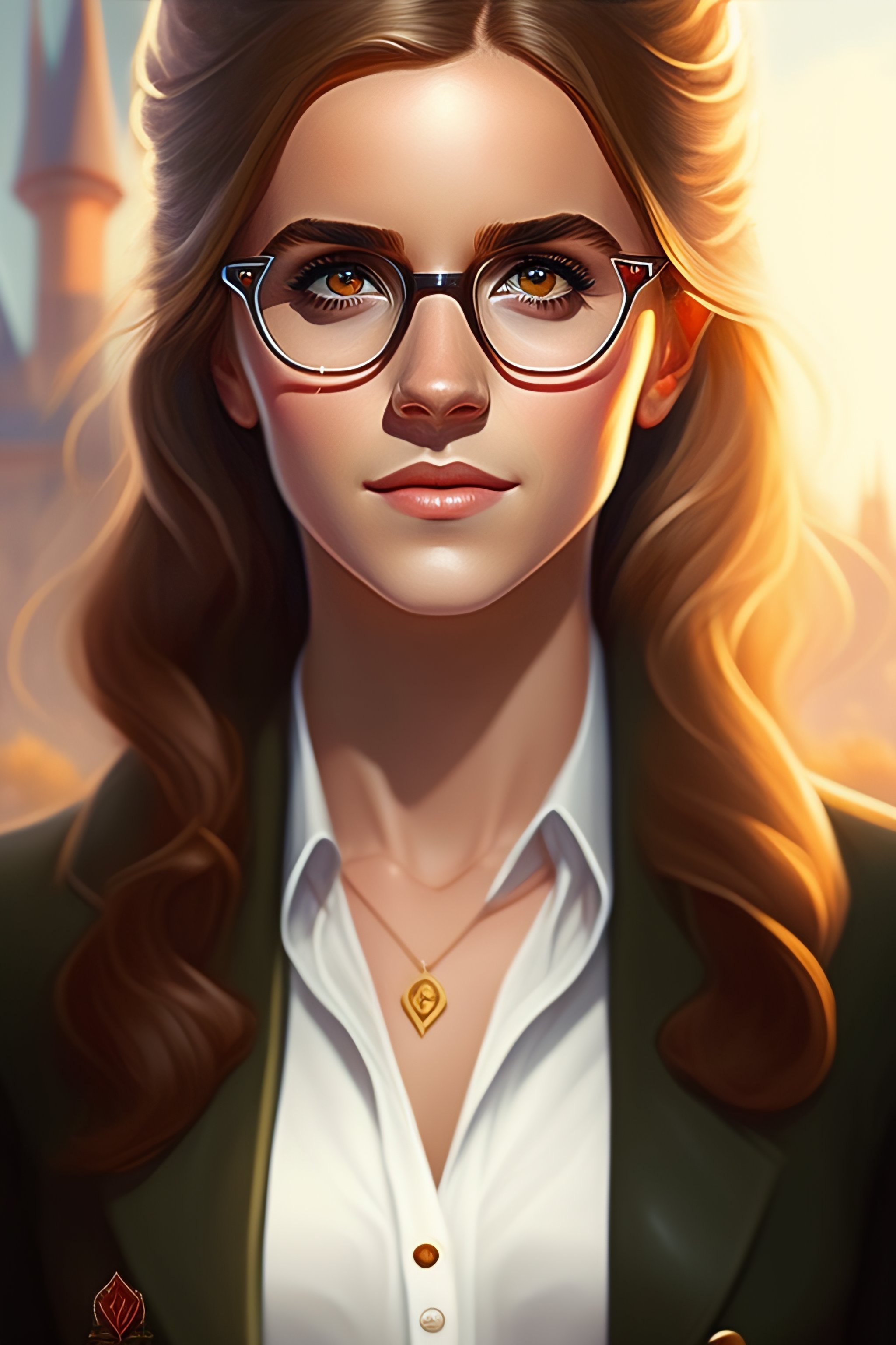 Beautiful female emma watson hermione granger from move harry potter, glasses symmetrical face eyes full length, full symmetric body portrait, 2d game art gta5 cover, official fanart behance hd artstation by jesper ejsing, by rhads, makoto shinkai and lois van baarle