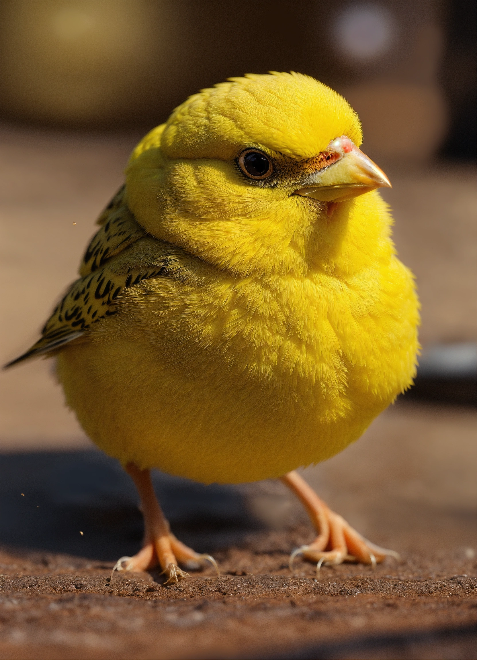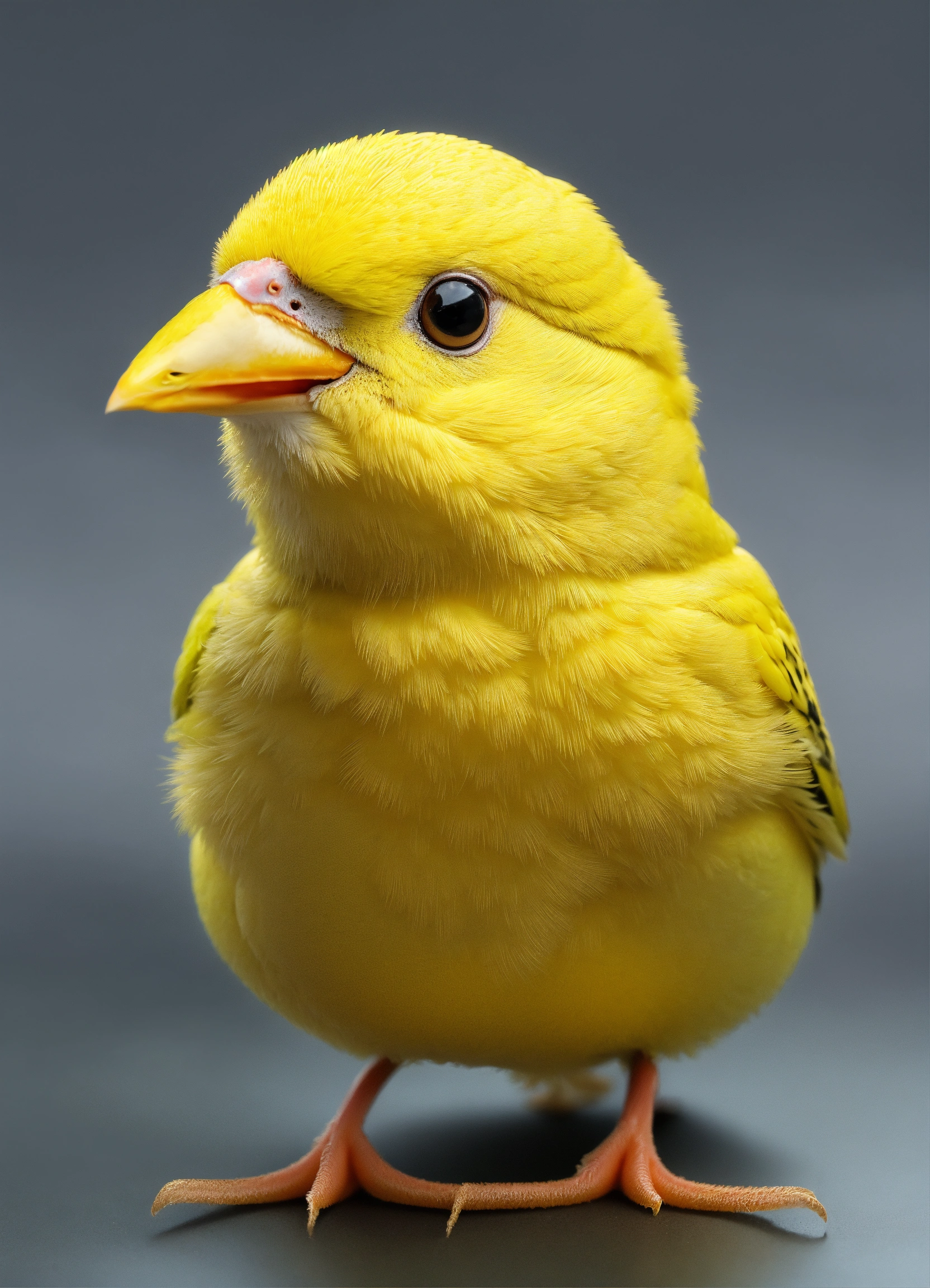 Cute yellow canary bird head with a tennis ball, wow detailed hyper-realistic, ultra-fine detailed, sid view