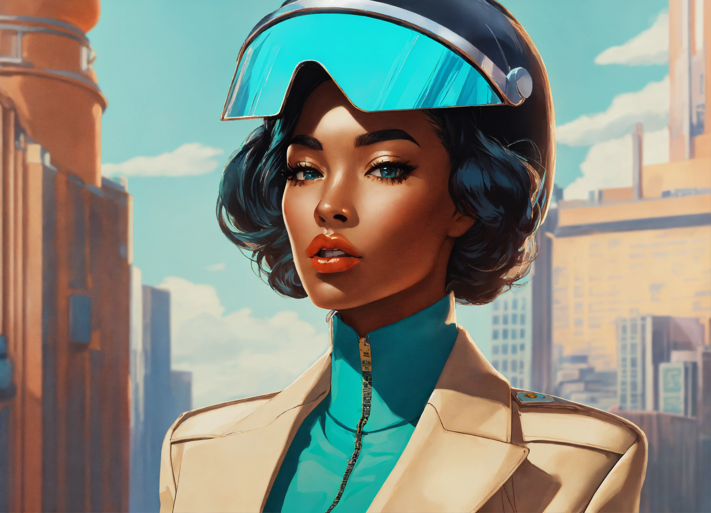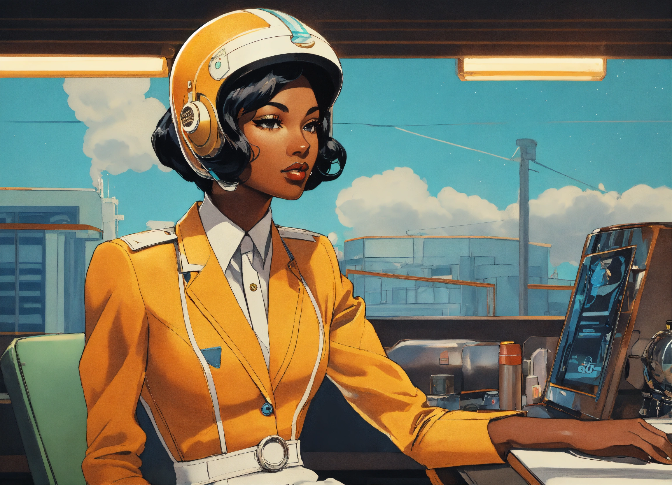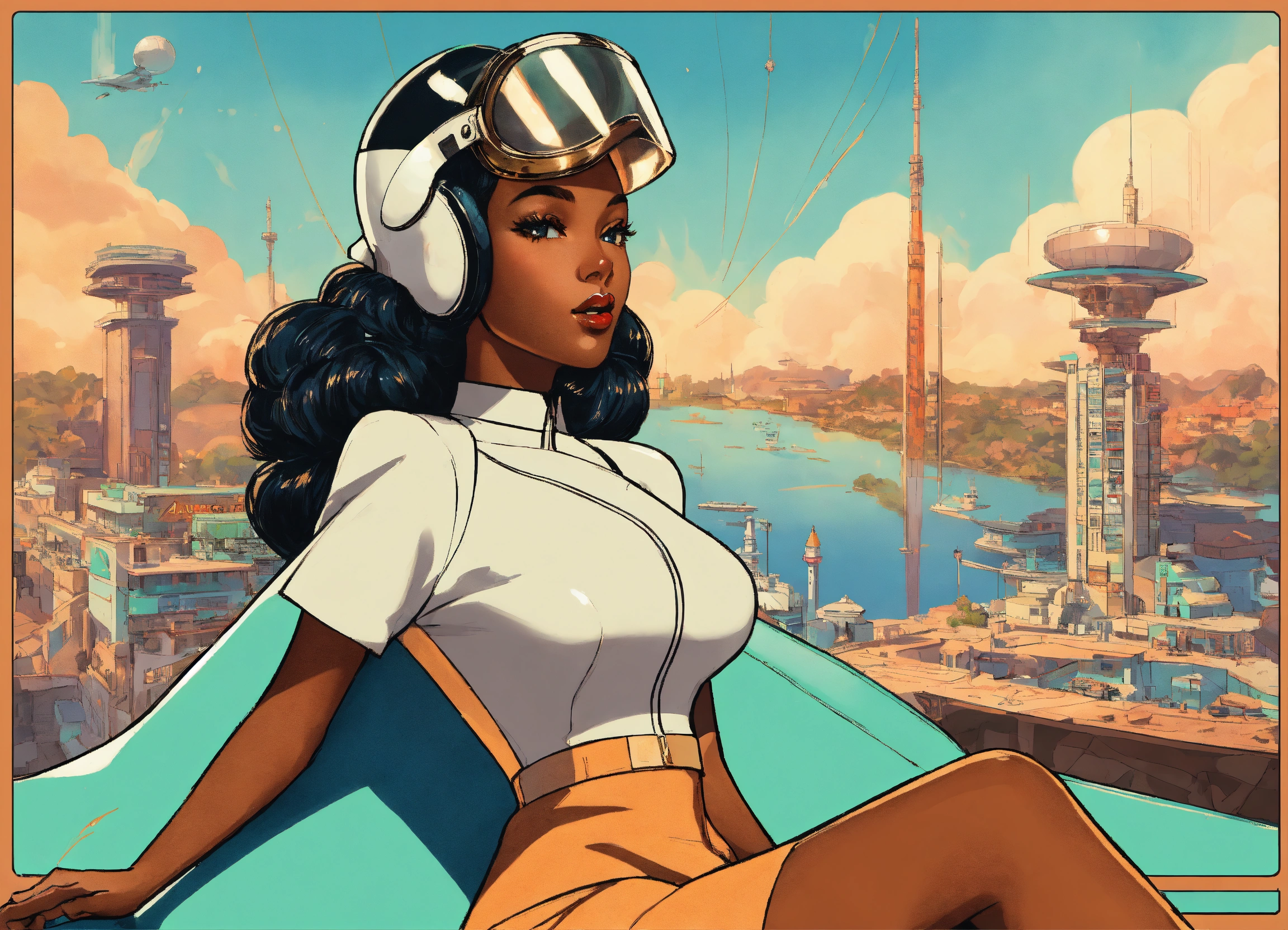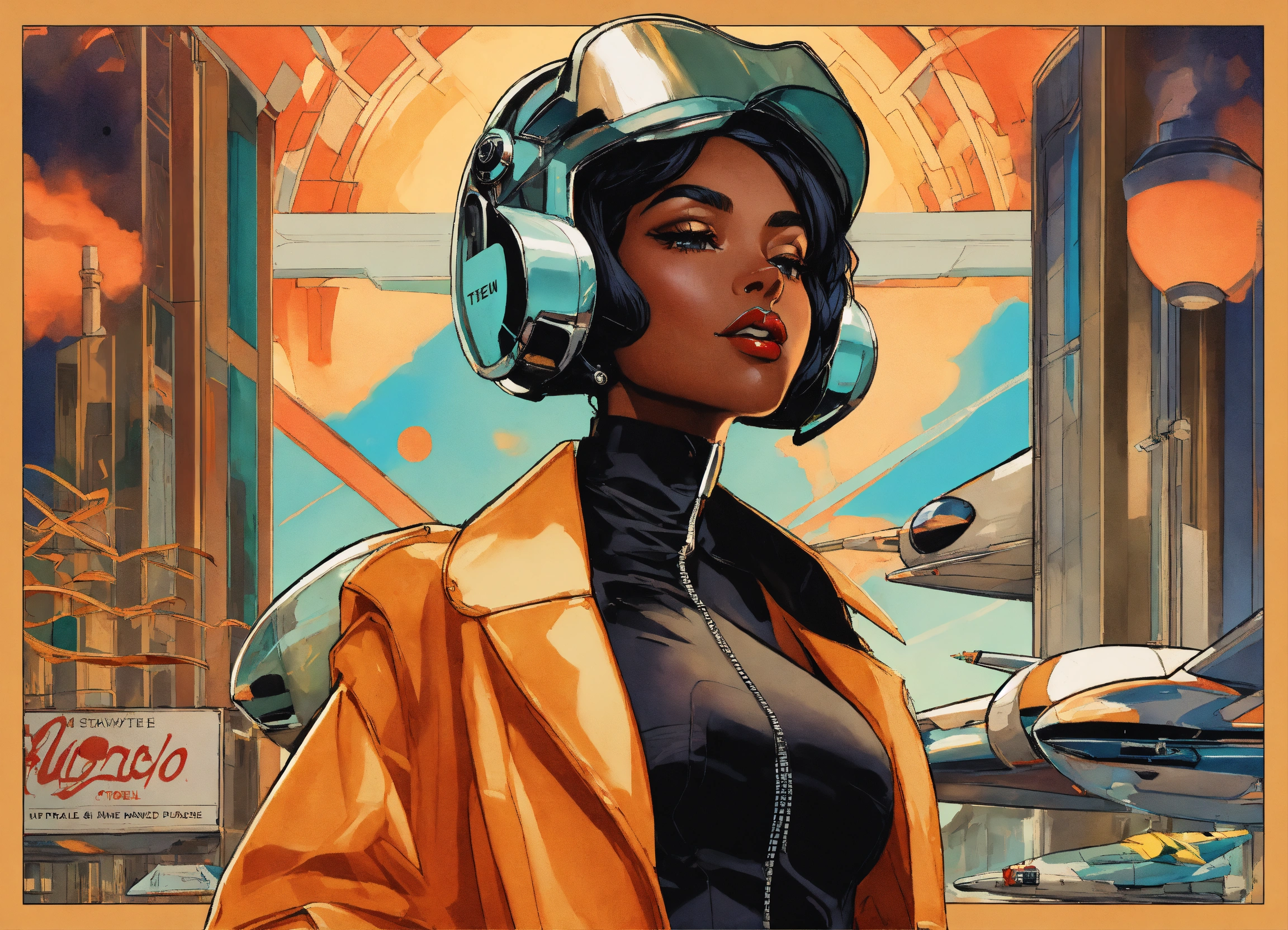 Multiple anime, black jetsons, cartoon smoke, joint company anthropomorphic female branding, "traybien", modern ethiopian 👩🏾25 years_old, vintage aesthetic, icons, business cards, pinup, bauhaus, kwakiutl, blue and mint, golden ratio, formfitting stewardess flightsuit, [futuristic transparent helmet], creative layflat, "traybien" hand lettering, cigarette packaging, art deco architekture|graffiti, perfect composition, face metallic-jewelry approaching perfection, balanced amalgamation, many retro vintage black and japanese stickers, by edward hopper and norman rockwell and zaha hadid, playboy cover, long flowing modern hair