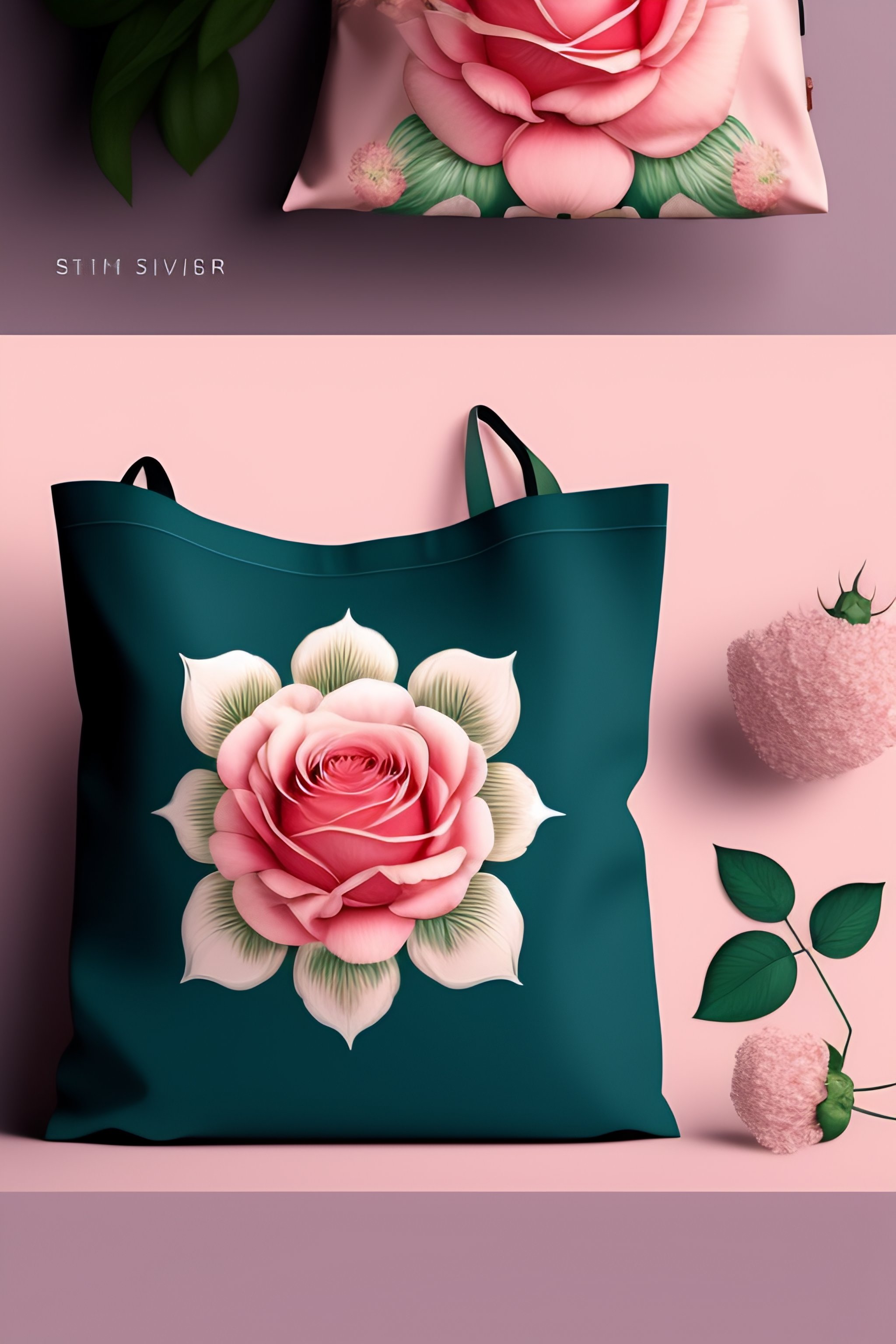 Create a feminine, floral design using a soft color palette and a vintage aesthetic. use an ai tool to generate the design, referencing a sample image that includes pink roses and a white lace pattern. apply the design to a mockup of a tote bag using a mockup generator tool. make sure the design fits well on the mockup and that the overall composition is cohesive. save the final design as a high-resolution jpeg file