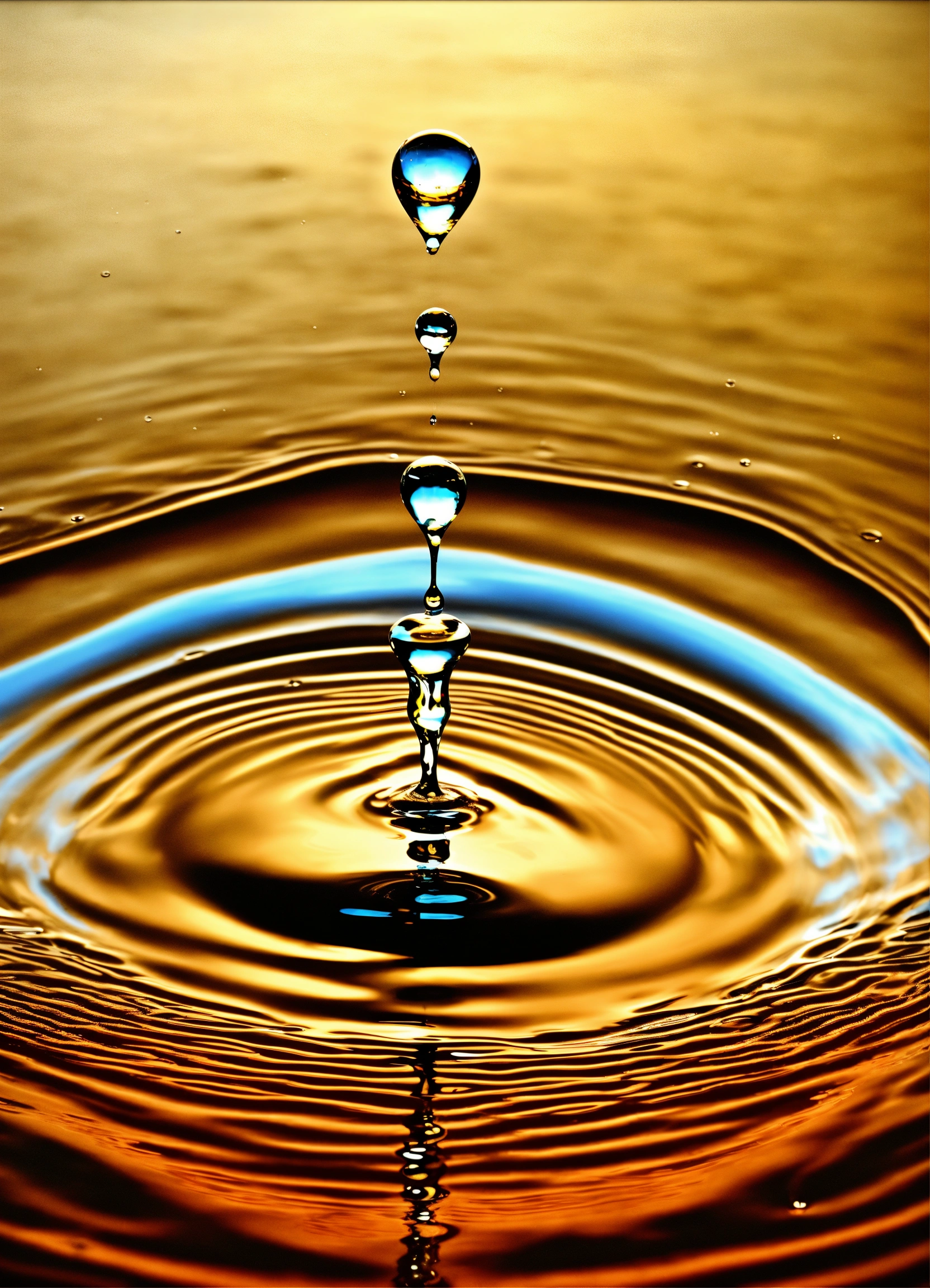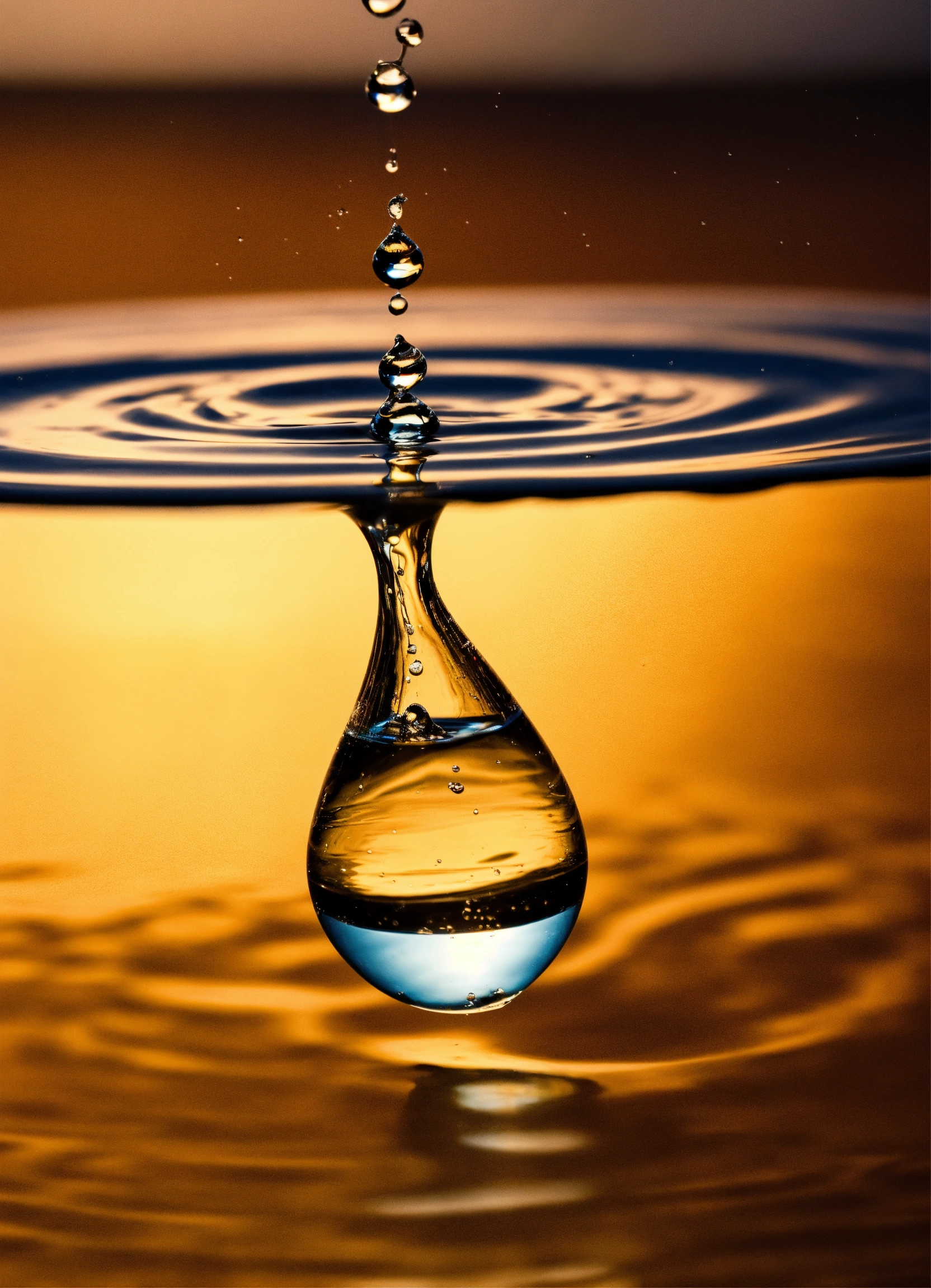 A drop of water falling on a liquid surface, causing a ripple. the drop transforms into various shapes as it bounces on and off the surface.